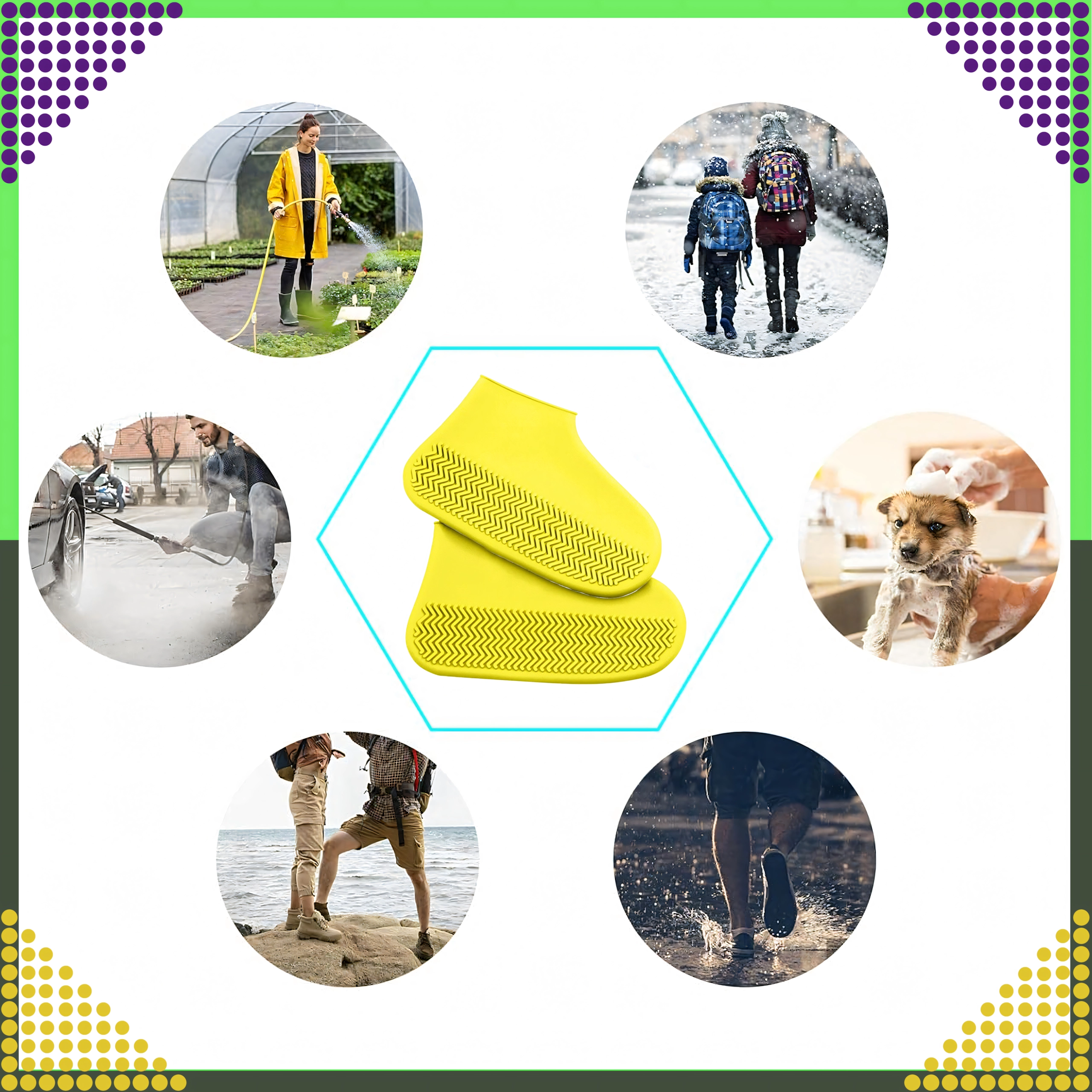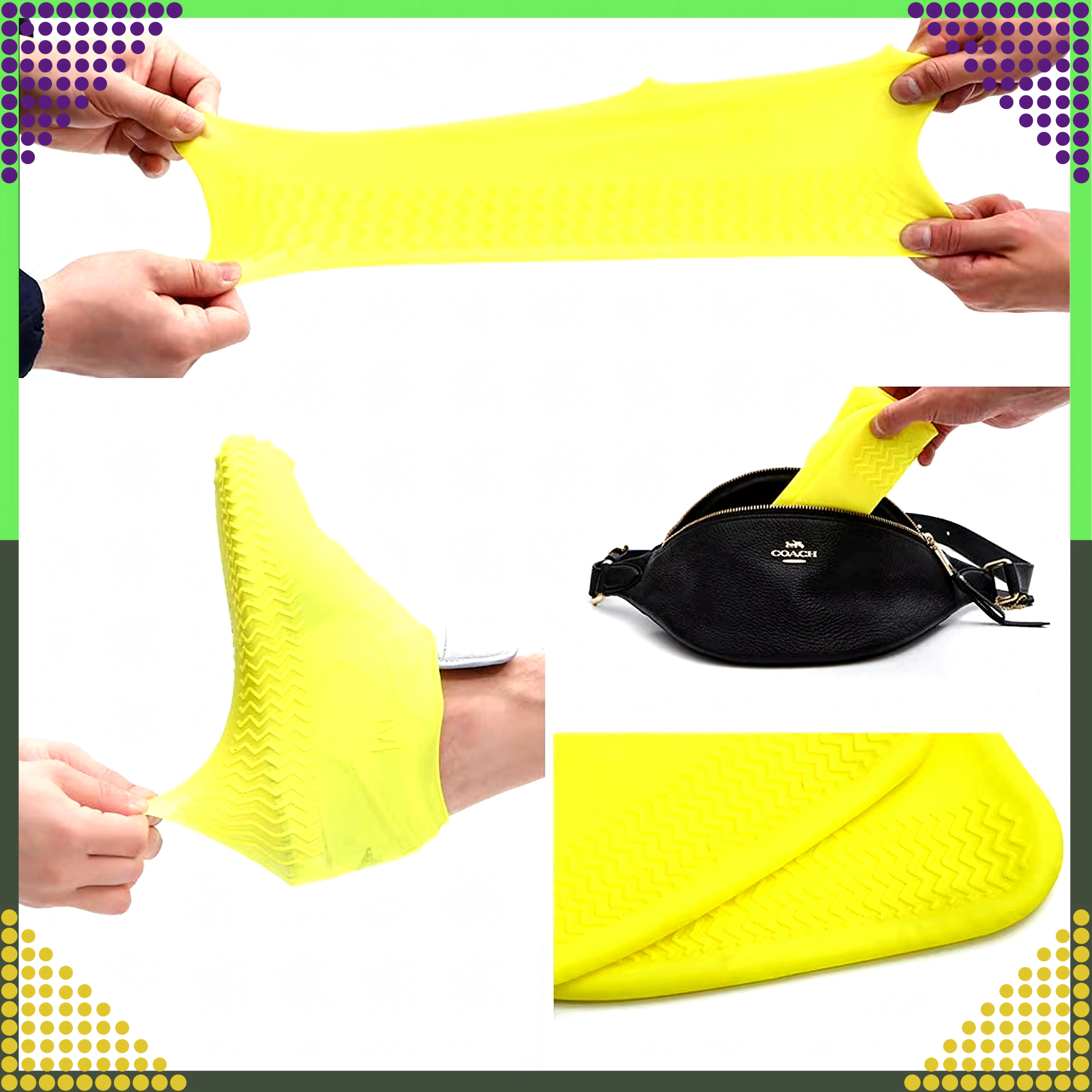 Gardez vos chaussures propres et sèches par tous les temps. Les surbottes en silicone jaunes sont fabriquées en matériau élastique de haute qualité, qui adhère parfaitement aux chaussures tout en résistant à l’eau, à la boue et à la neige. La structure antidérapante de la semelle renforce la sécurité de la marche sur surface mouillée.