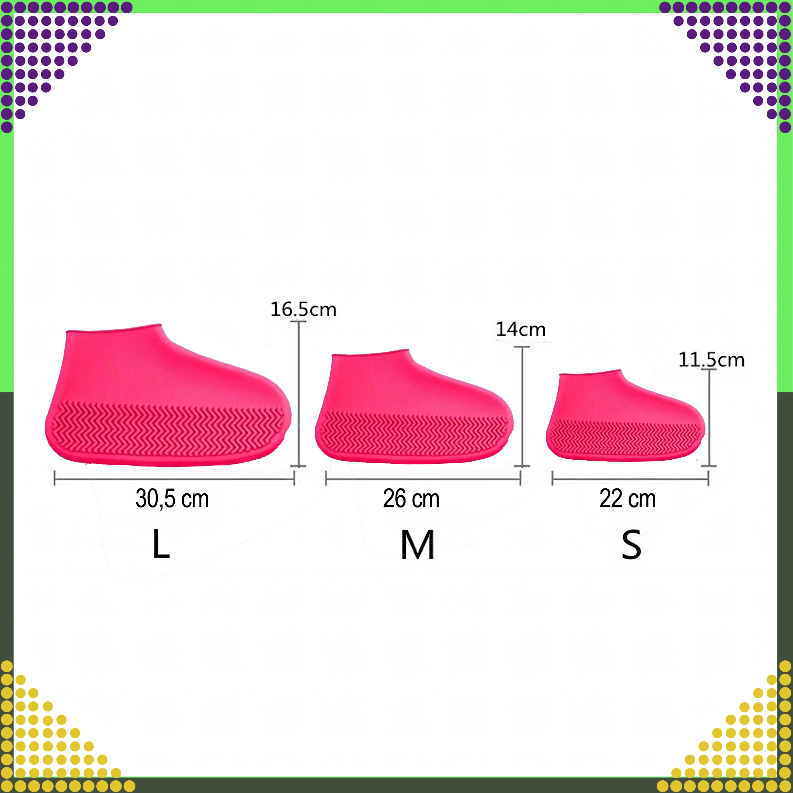Pratiques couvre-chaussures en silicone taille M qui protègent vos chaussures de la pluie, de la boue et de la neige. Fabriqués en matériau extensible et imperméable avec une semelle antidérapante épaisse pour une marche sûre. Faciles à enfiler, légers, réutilisables et faciles à nettoyer – idéals en ville, pour les promenades et les sorties en pleine nature.