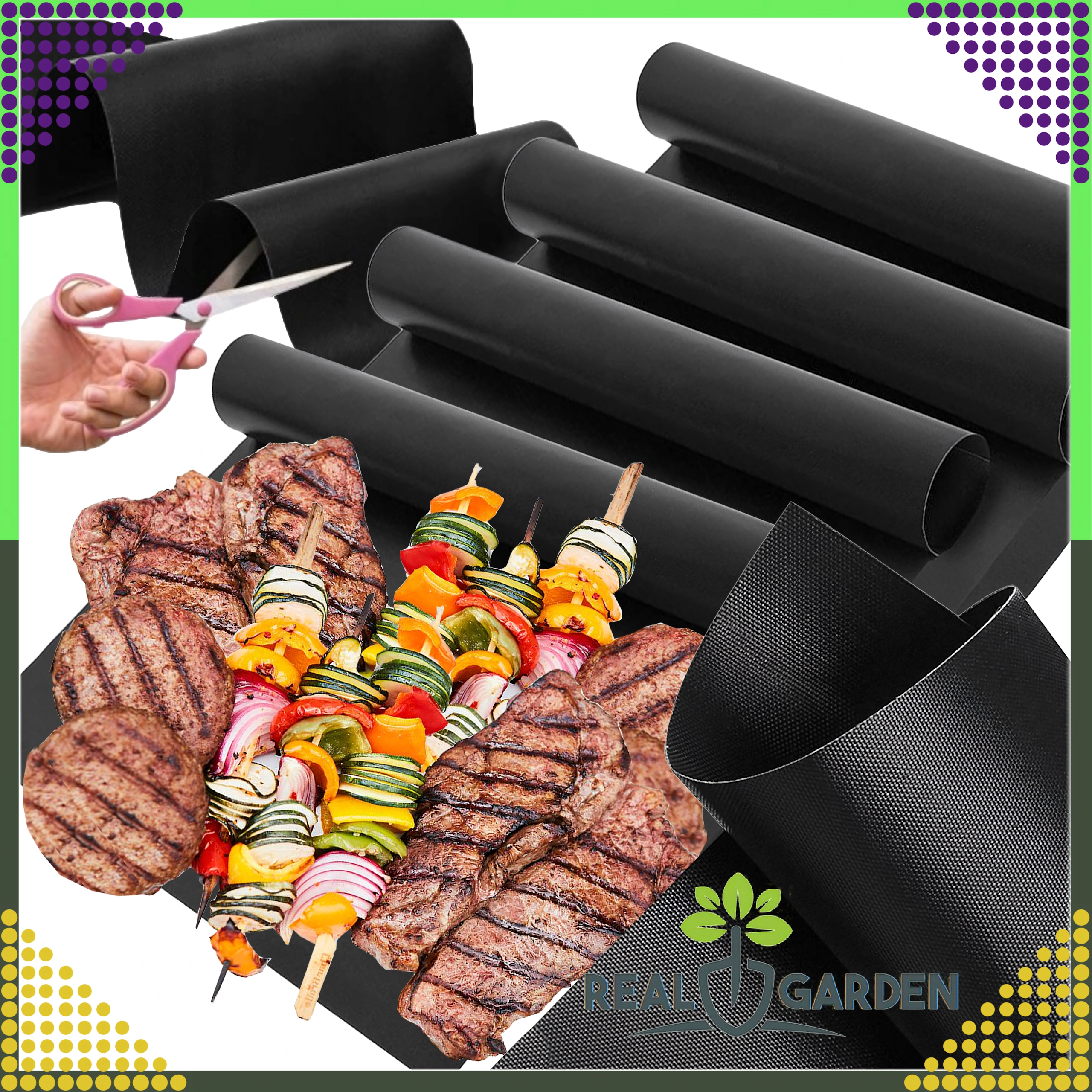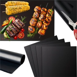 Pratique tapis de cuisson en téflon pour barbecue et four, en lot de 4, qui facilite la préparation des aliments sans brûler et sans graisse. Il est antiadhésif, facile à nettoyer, sans PFOA et adapté à une utilisation répétée jusqu’à 260 °C. Idéal pour viande, poisson, légumes et fruits, il garde le gril et le four propres.
