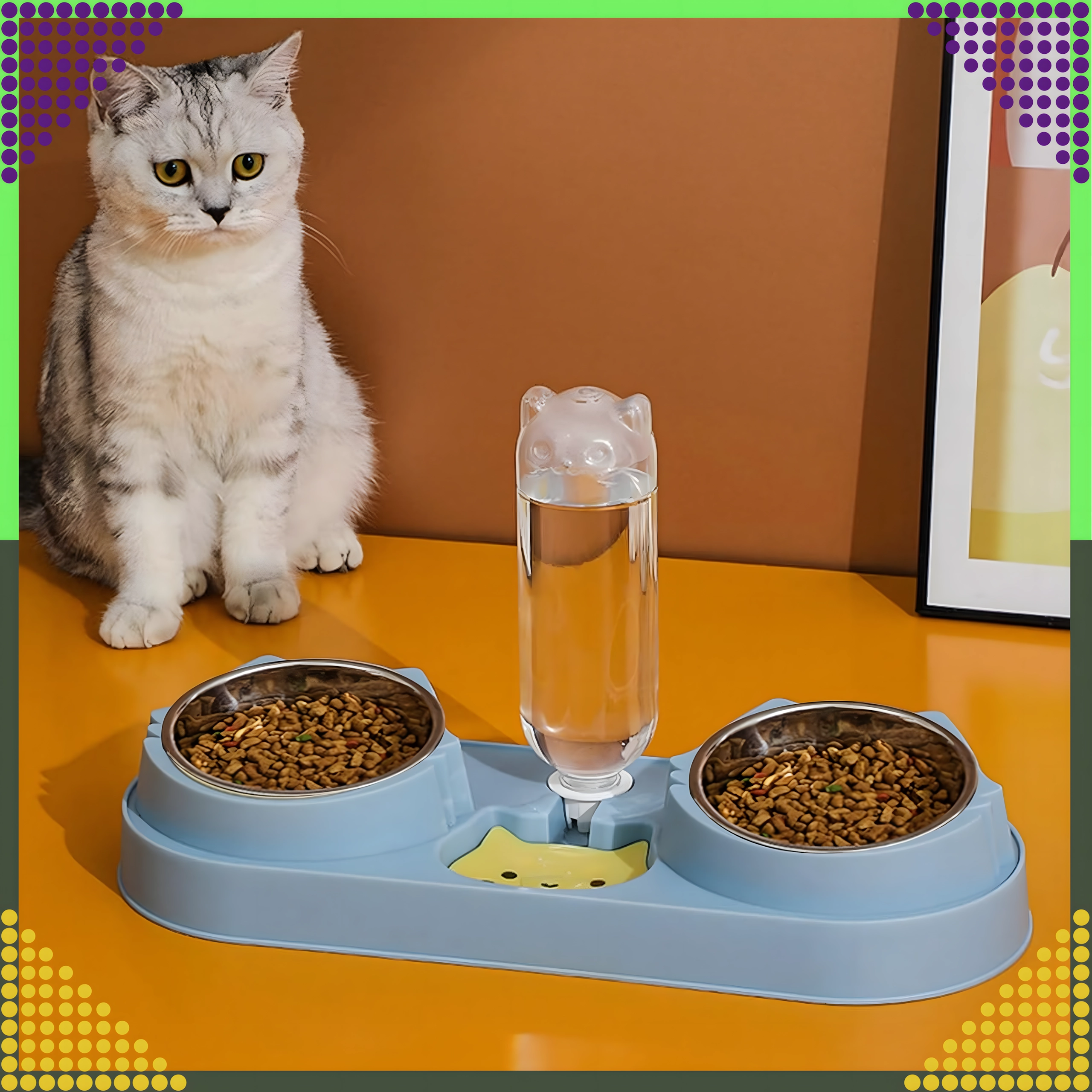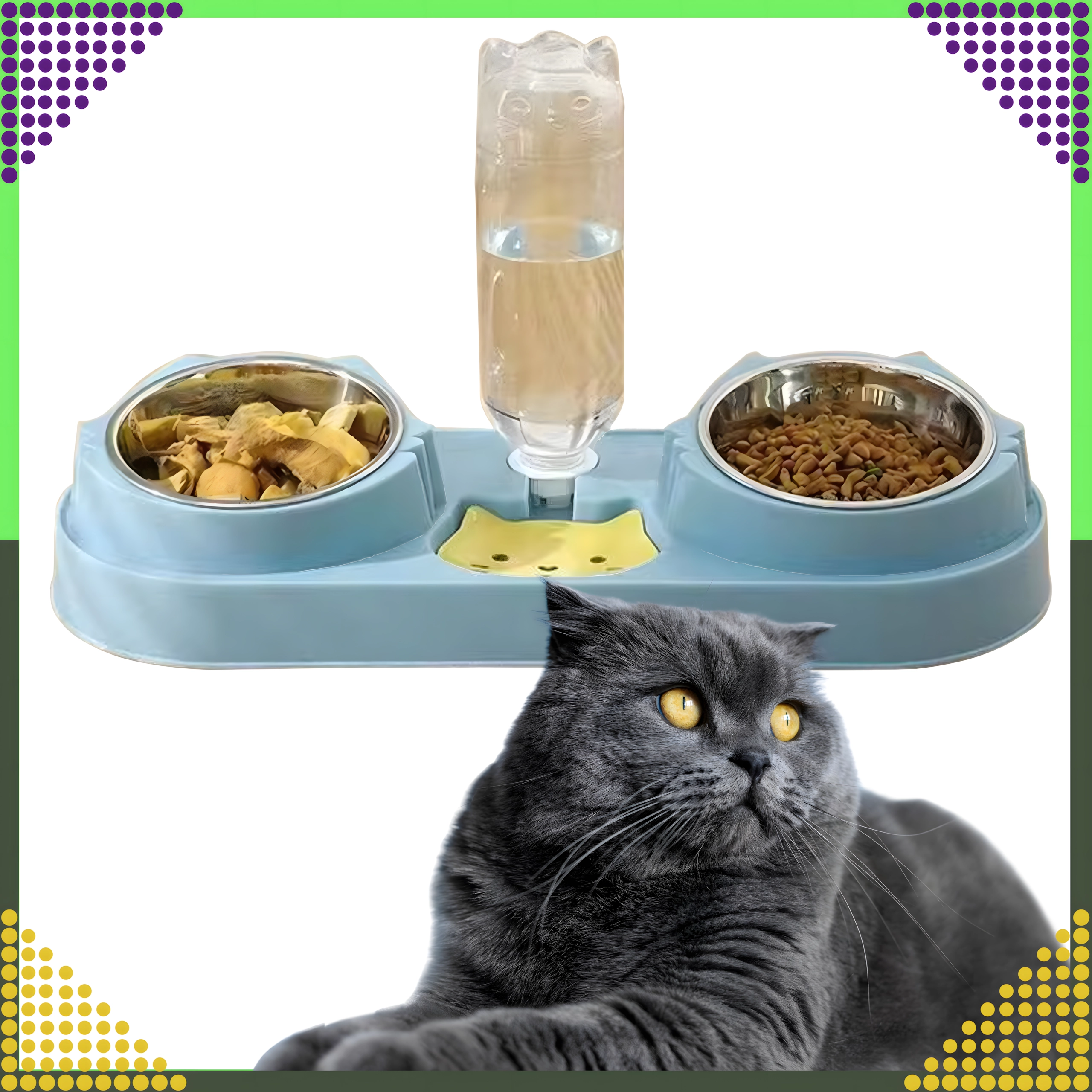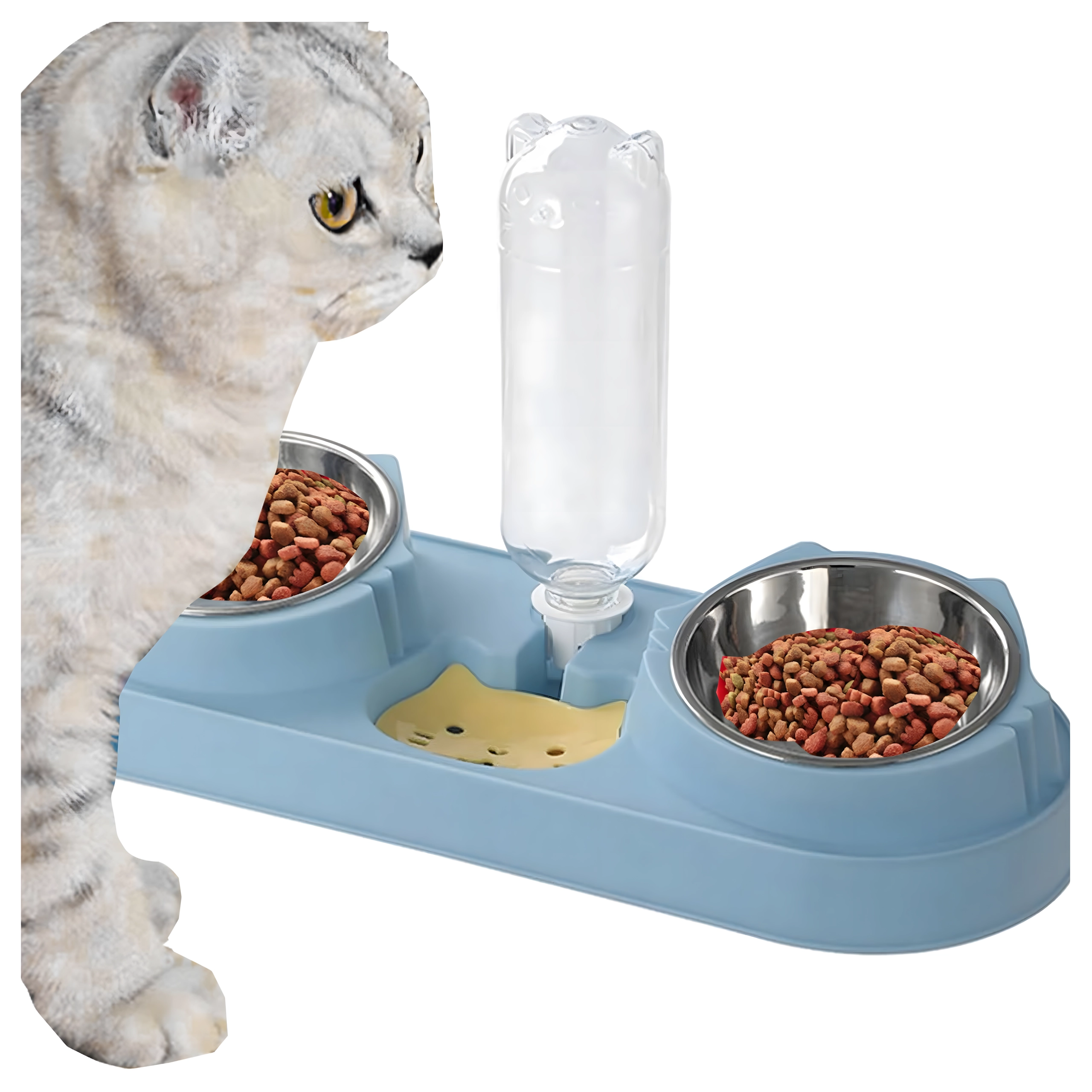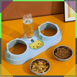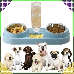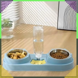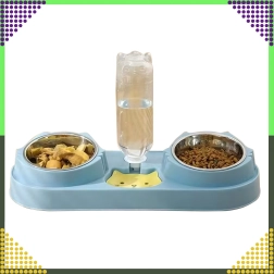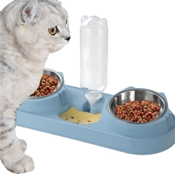 Cette gamelle double avec abreuvement automatique est idéale pour chiens et chats. Deux bols amovibles en acier inoxydable (220 ml chacun) permettent de servir séparément nourriture humide et sèche, tandis que le distributeur par gravité réapprovisionne en continu le réservoir d’eau. La base en plastique durable, d’un élégant bleu, est stable et facile à entretenir.
