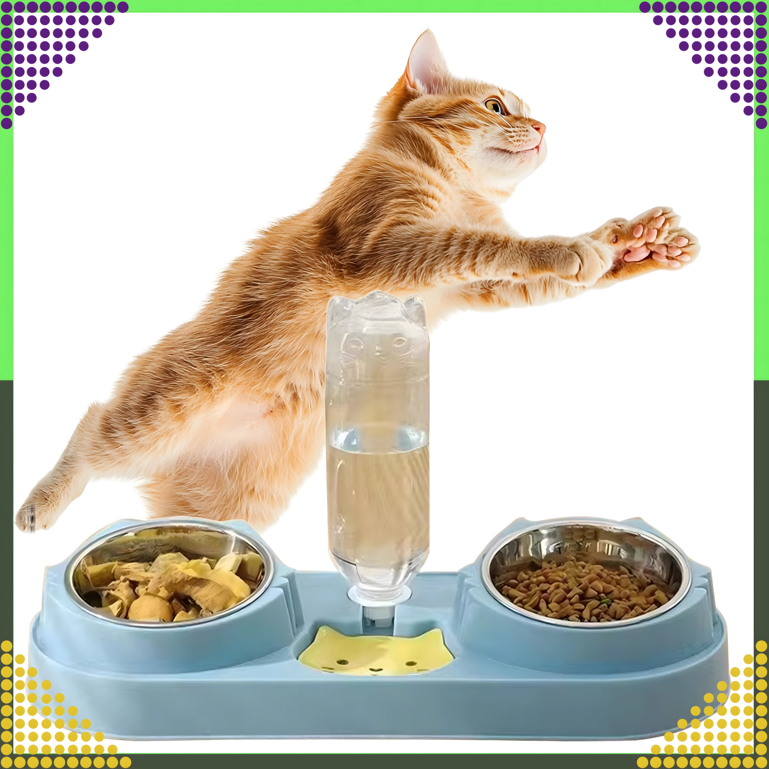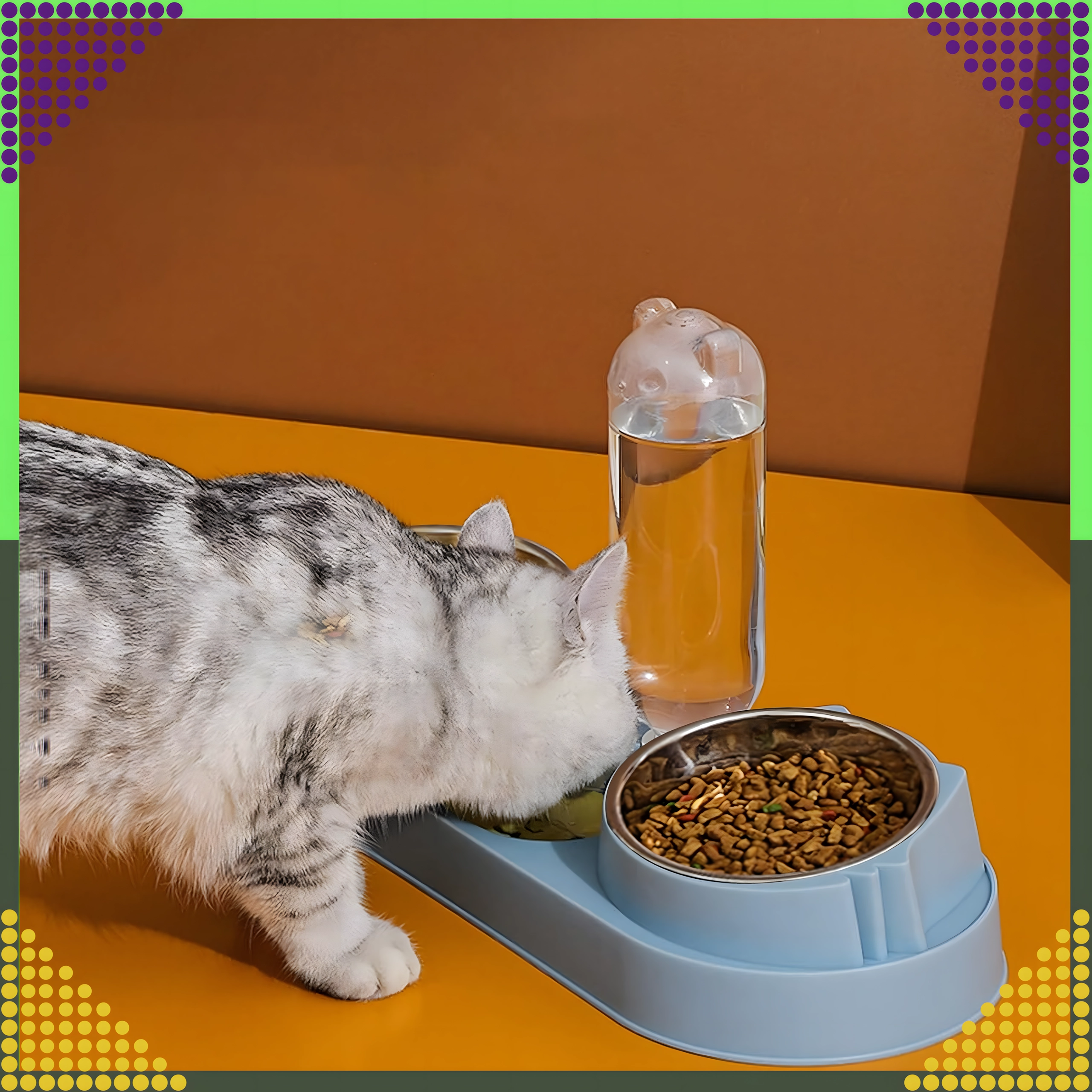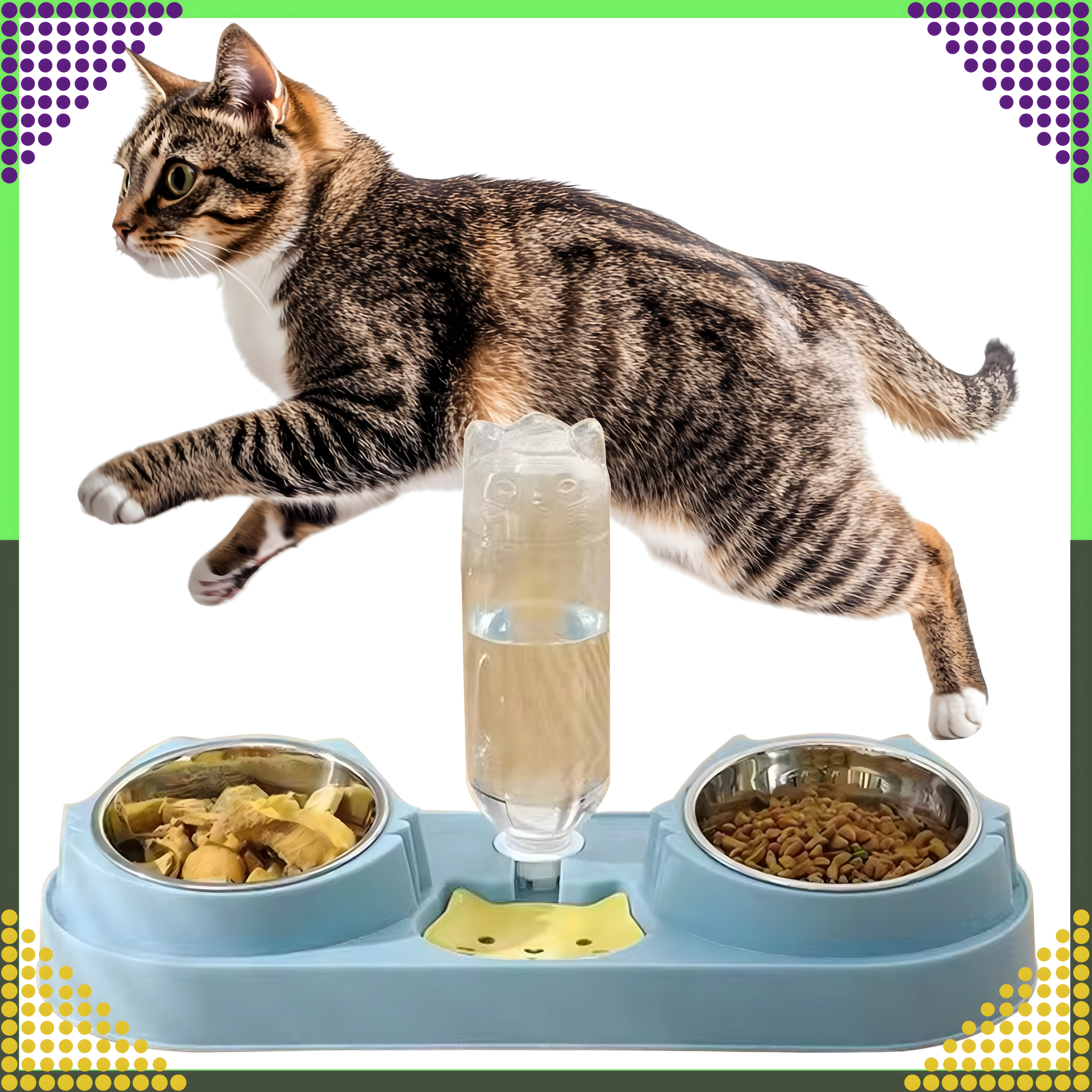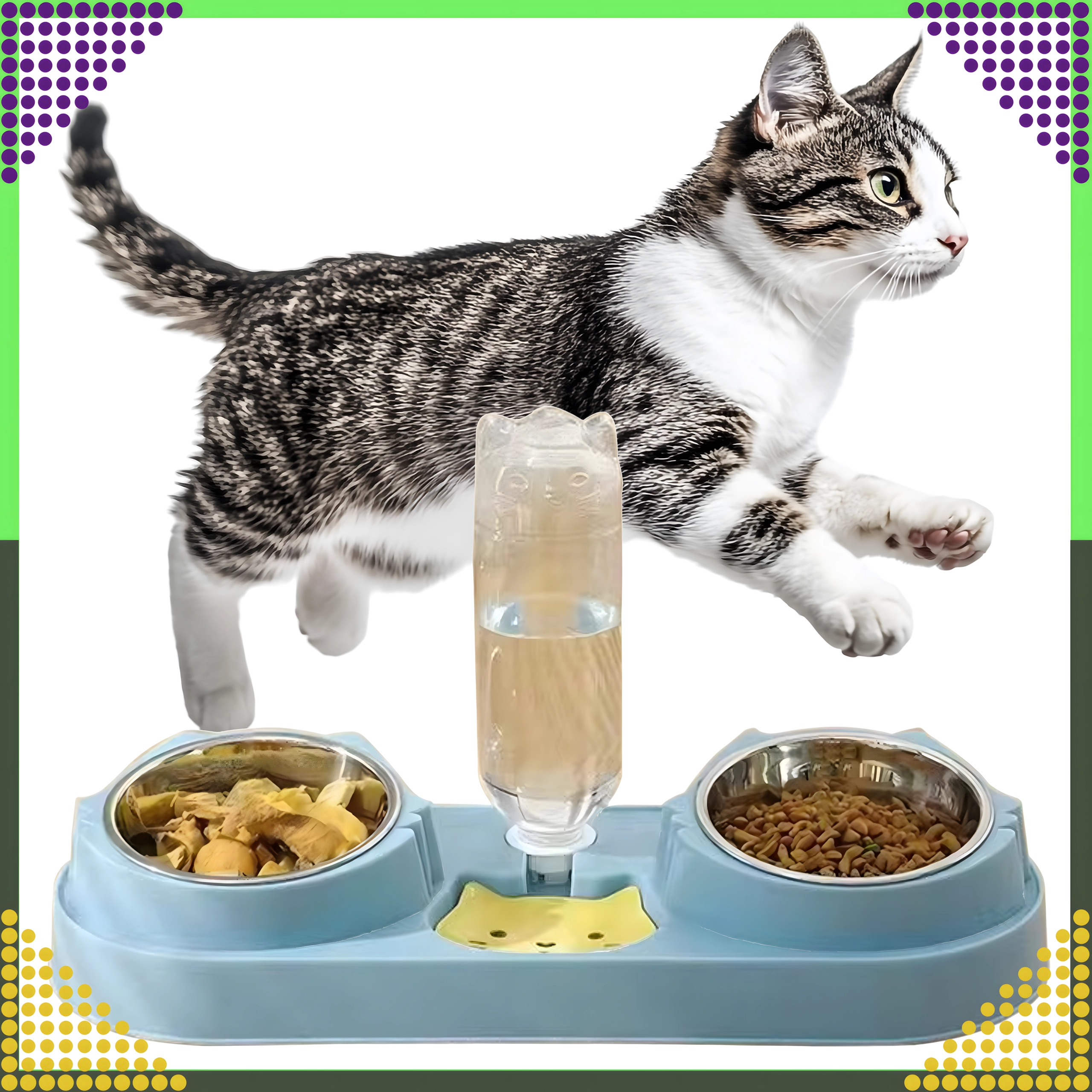 Cette gamelle double avec abreuvement automatique est idéale pour chiens et chats. Deux bols amovibles en acier inoxydable (220 ml chacun) permettent de servir séparément nourriture humide et sèche, tandis que le distributeur par gravité réapprovisionne en continu le réservoir d’eau. La base en plastique durable, d’un élégant bleu, est stable et facile à entretenir.
