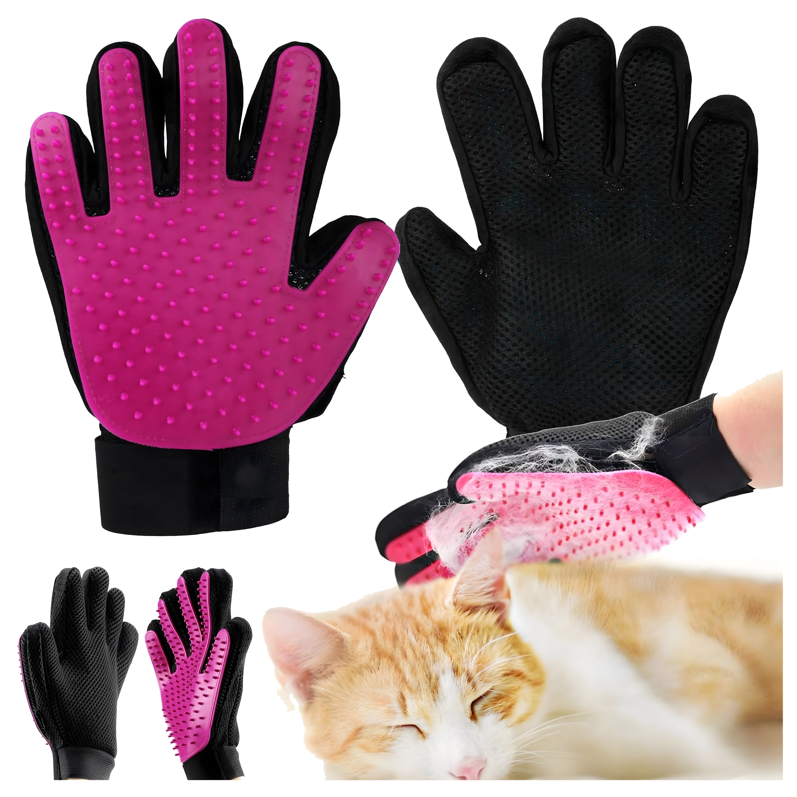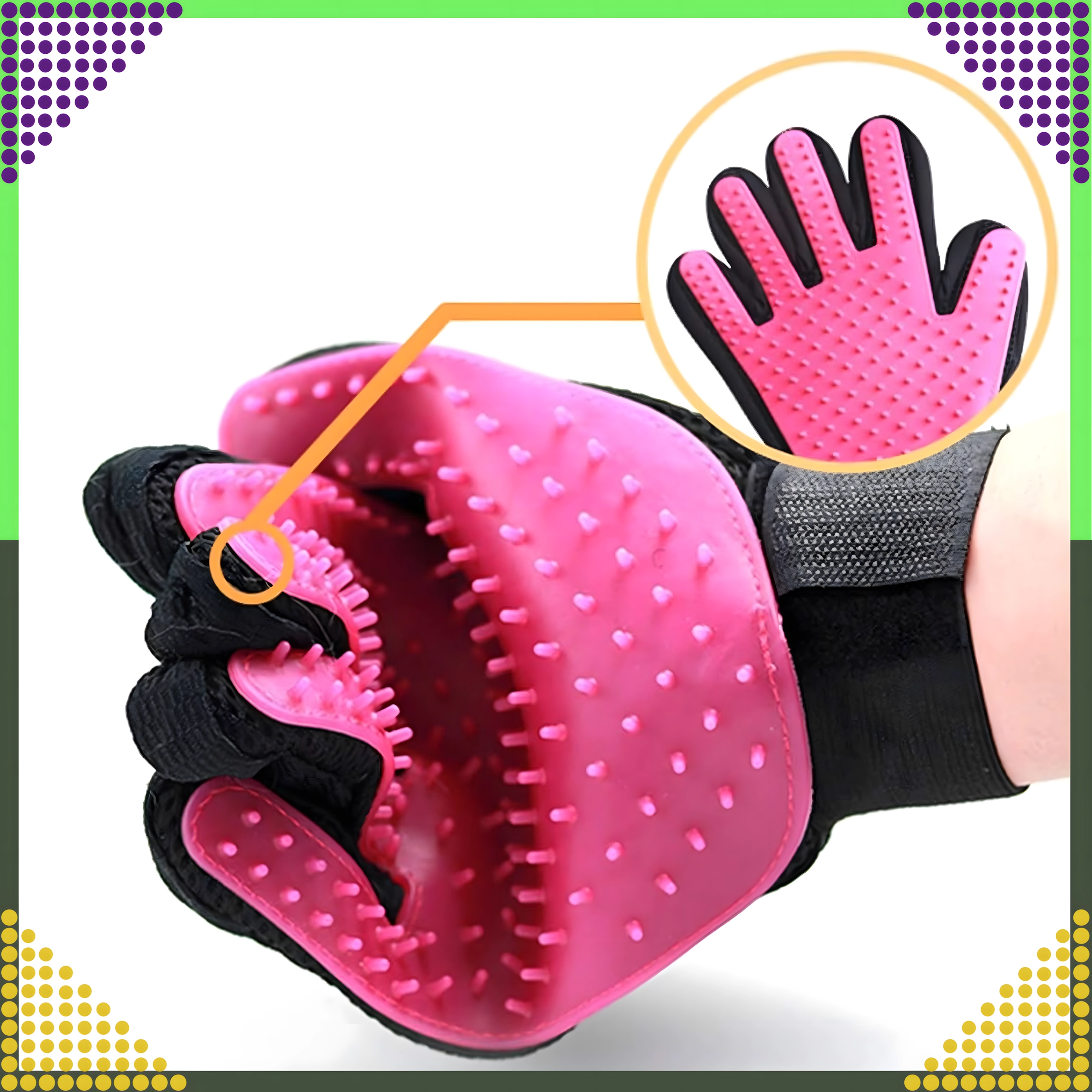 Gant de toilettage et de massage pour chiens et chats – silicone rose