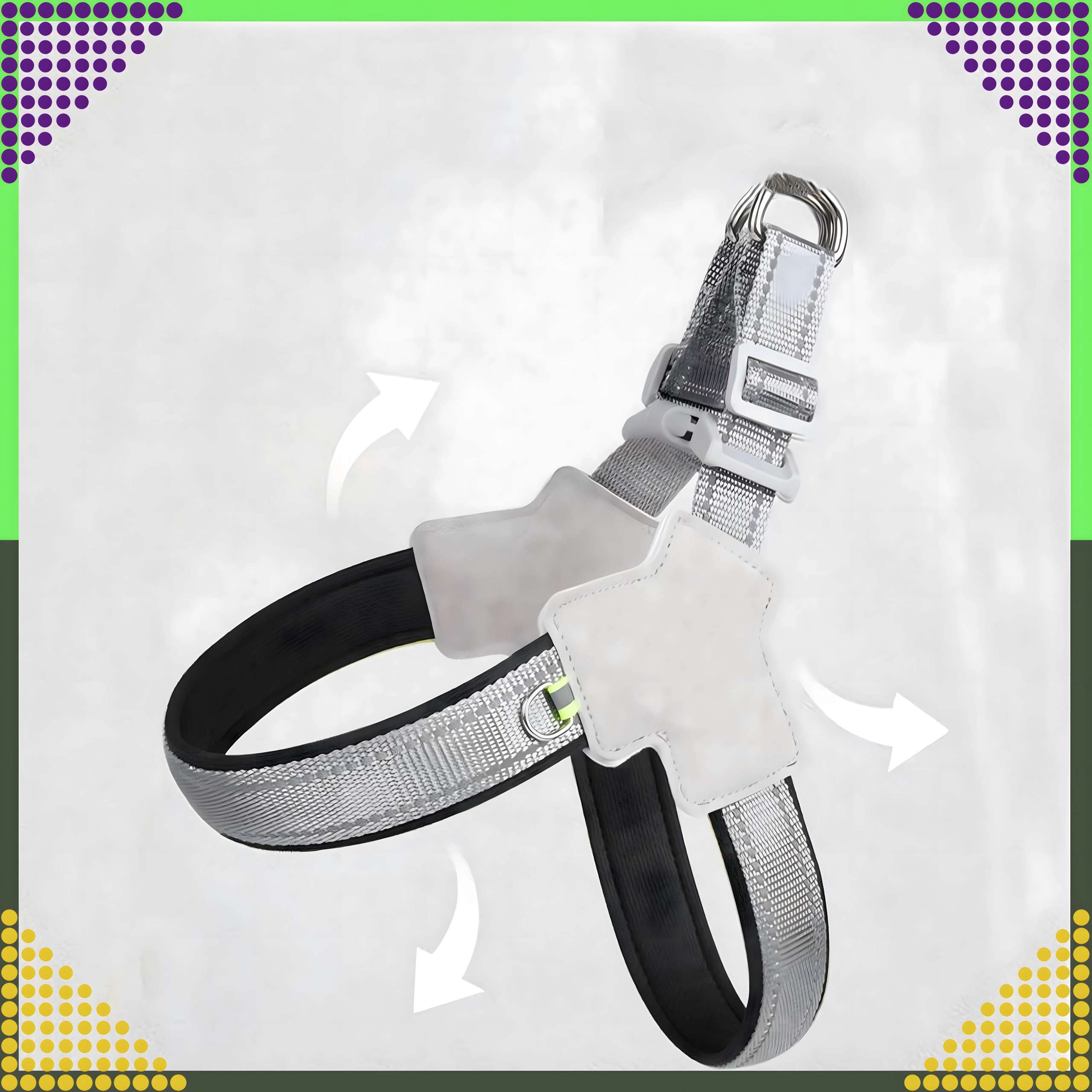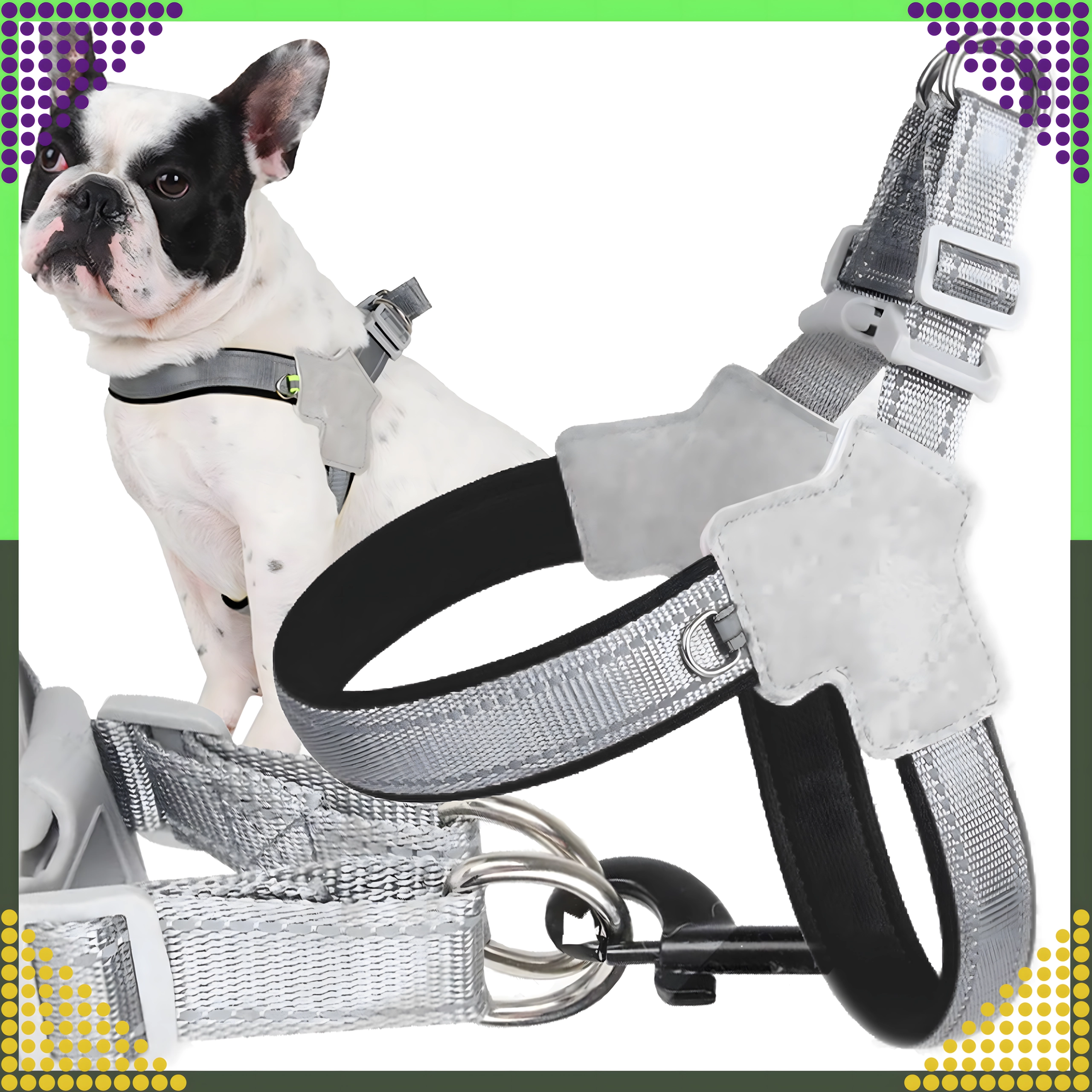• Confort et sécurité : rembourrage doux, bandes réfléchissantes, doubles anneaux en D.