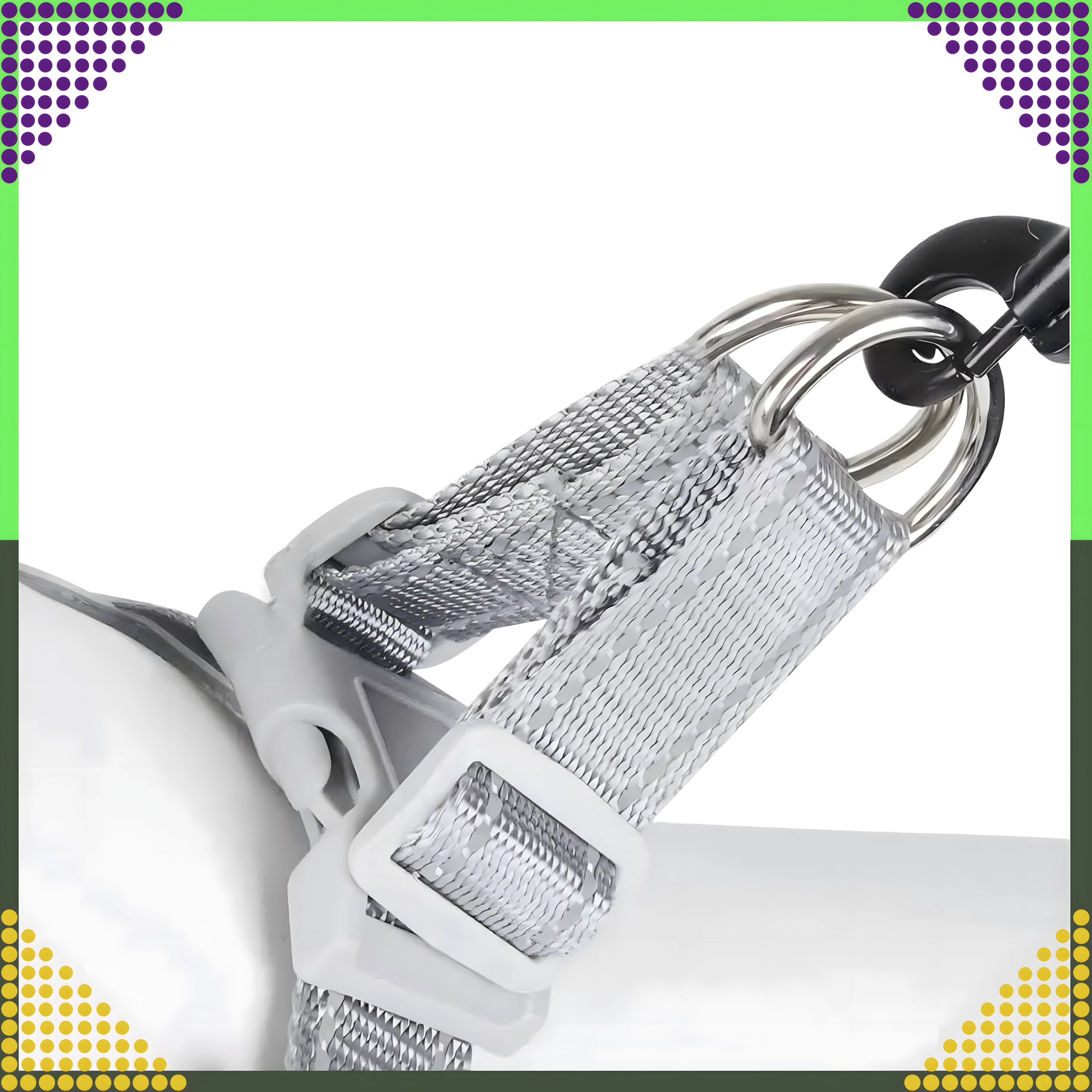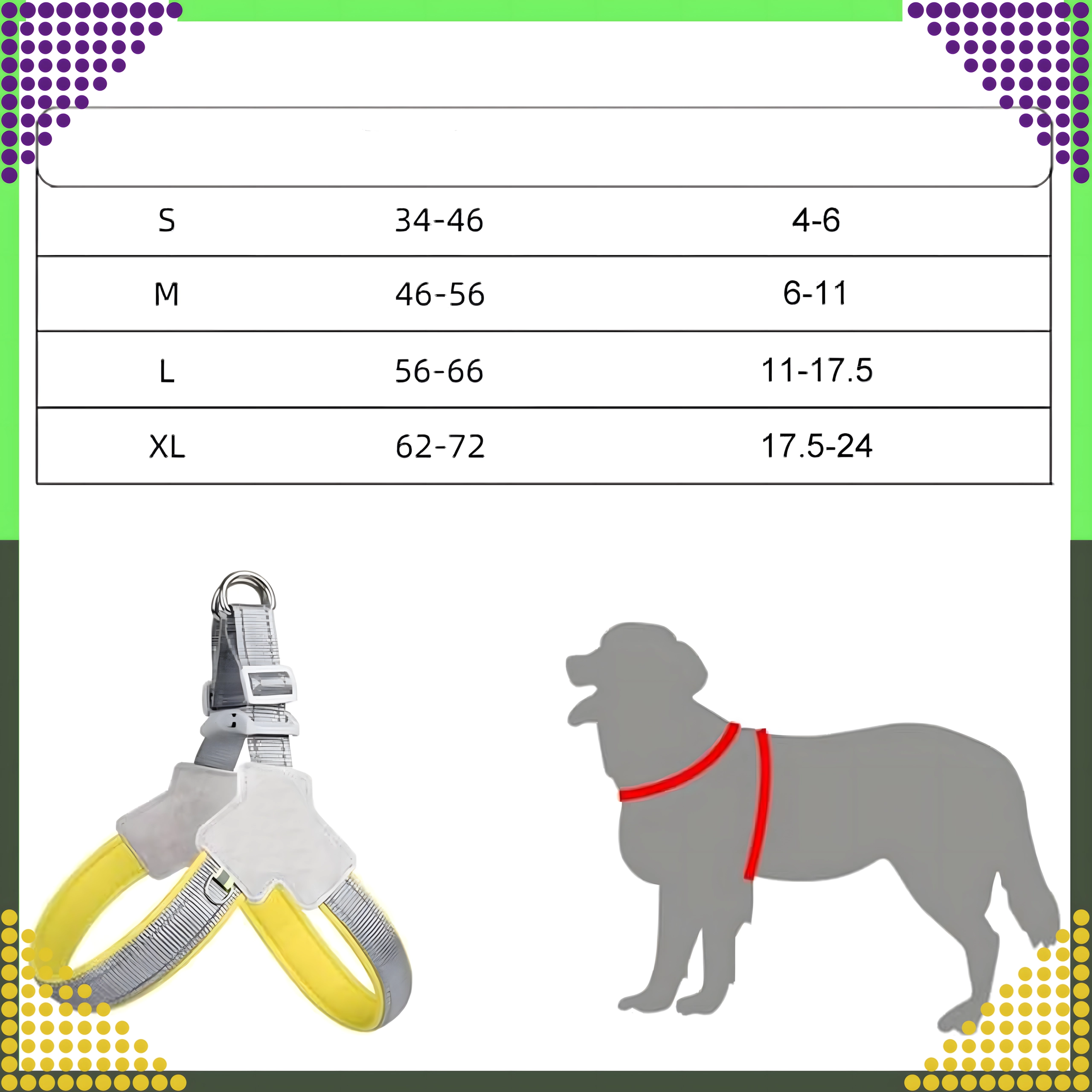 Harnais léger et confortable pour petits chiens et chats de 4 à 6 kg. Grâce à sa conception ergonomique, l’enfilage est rapide et facile, sans pression sur la poitrine ni la gorge. Matière résistante et respirante avec éléments réfléchissants pour une meilleure visibilité dans l’obscurité. Bandes réglables, double anneau en D et boucle de sécurité à double verrouillage pour une tenue sûre en laisse.