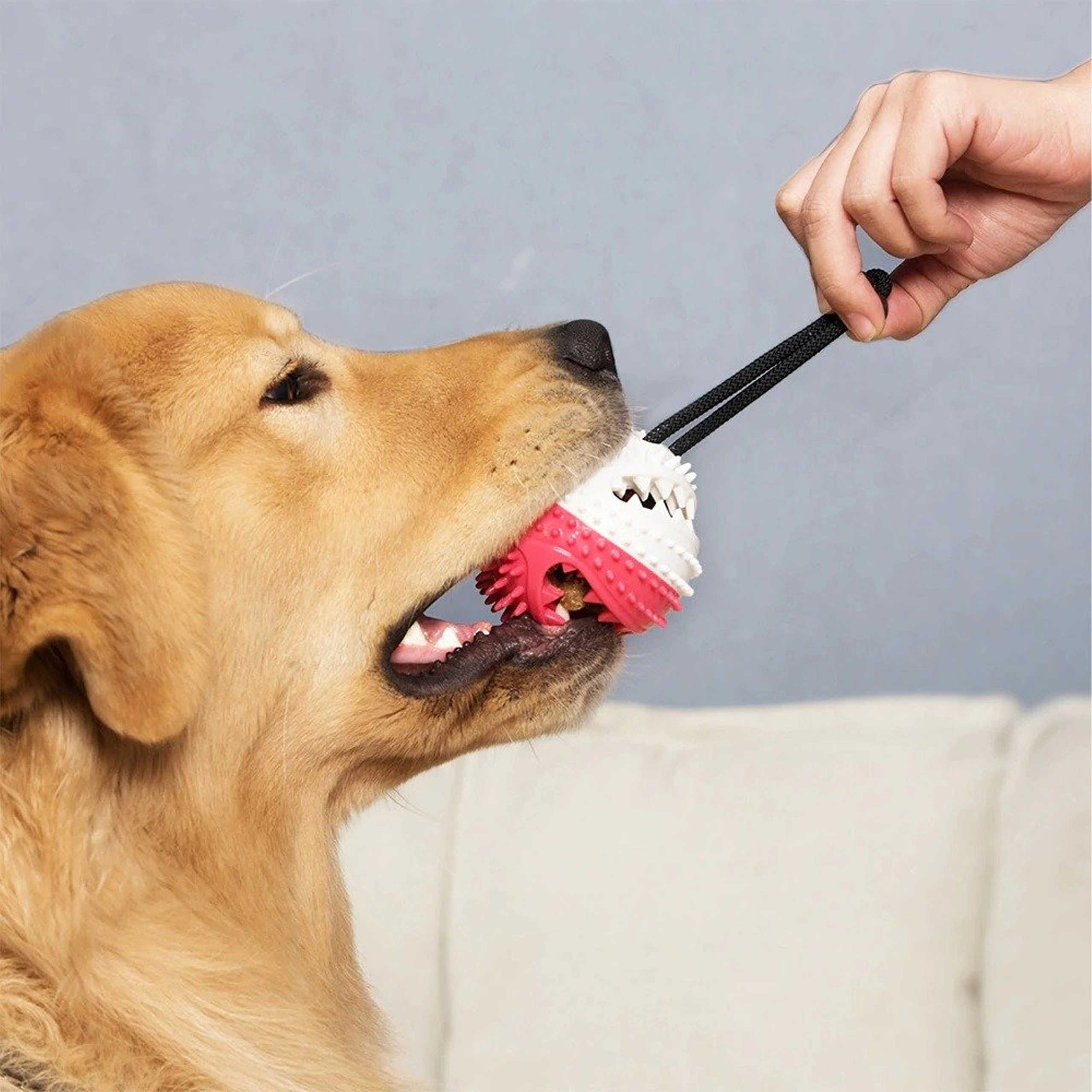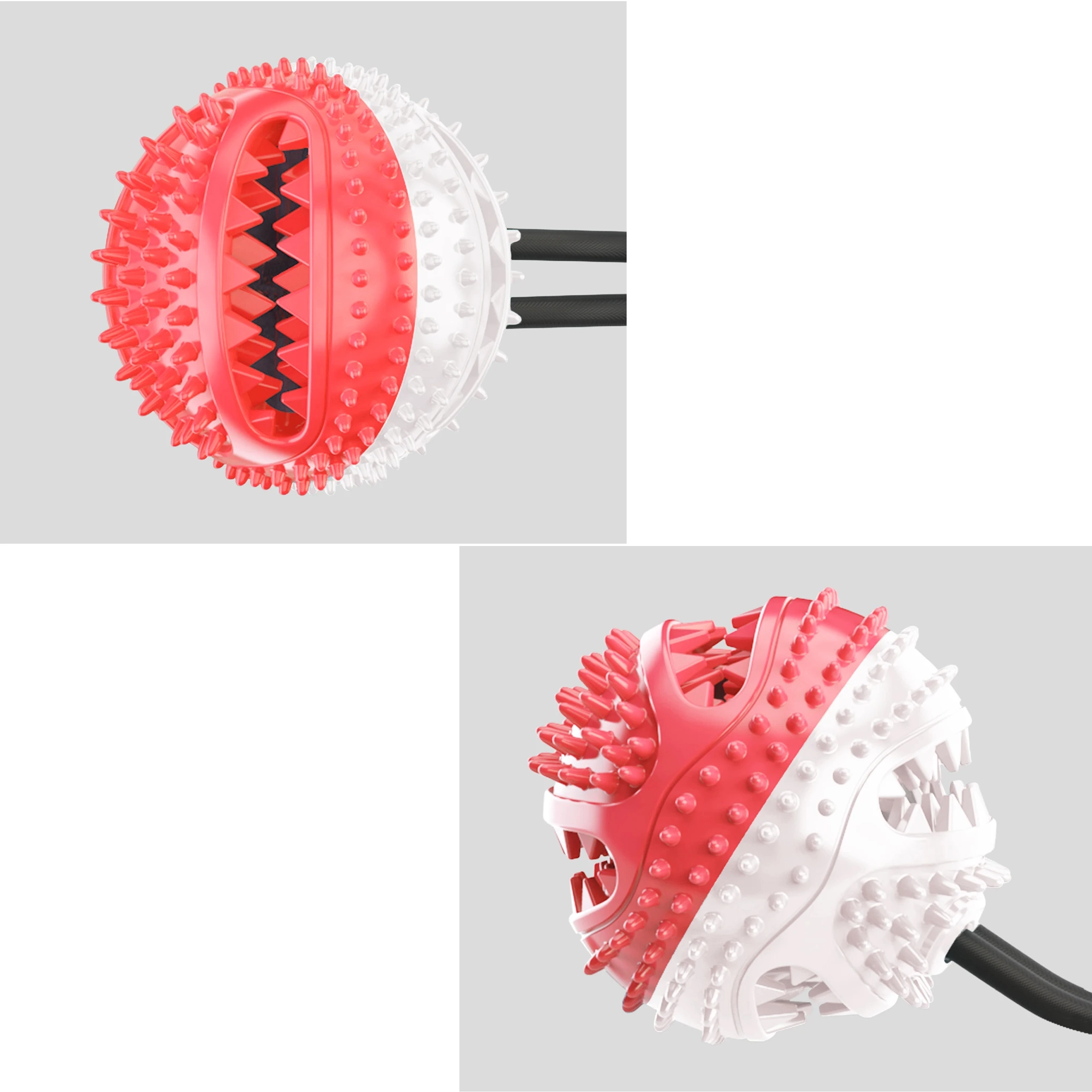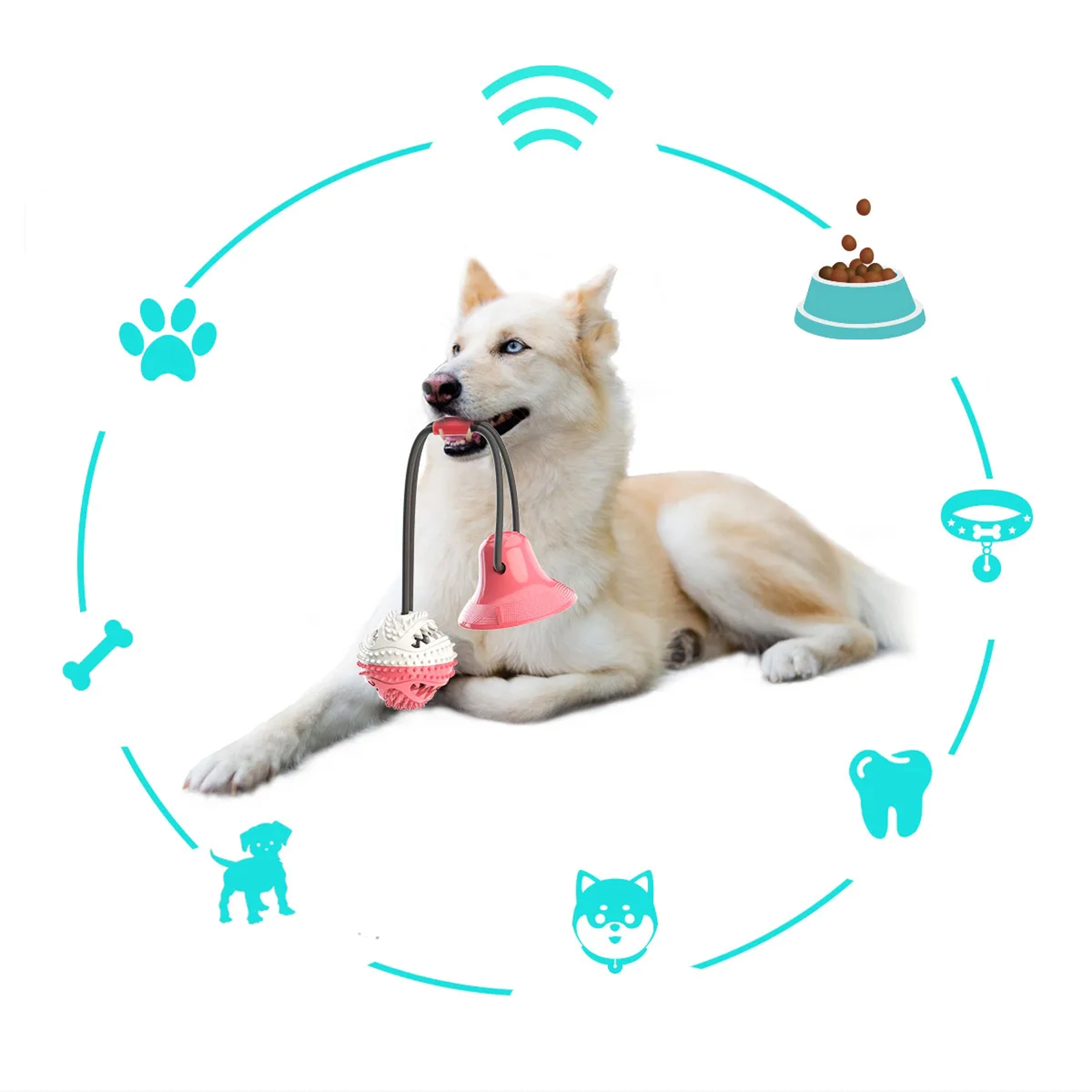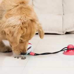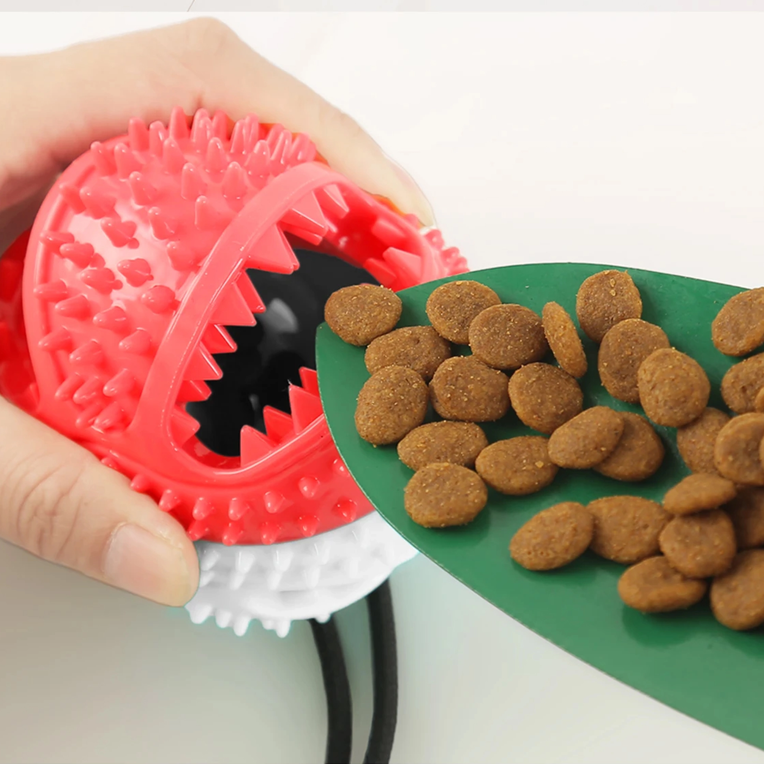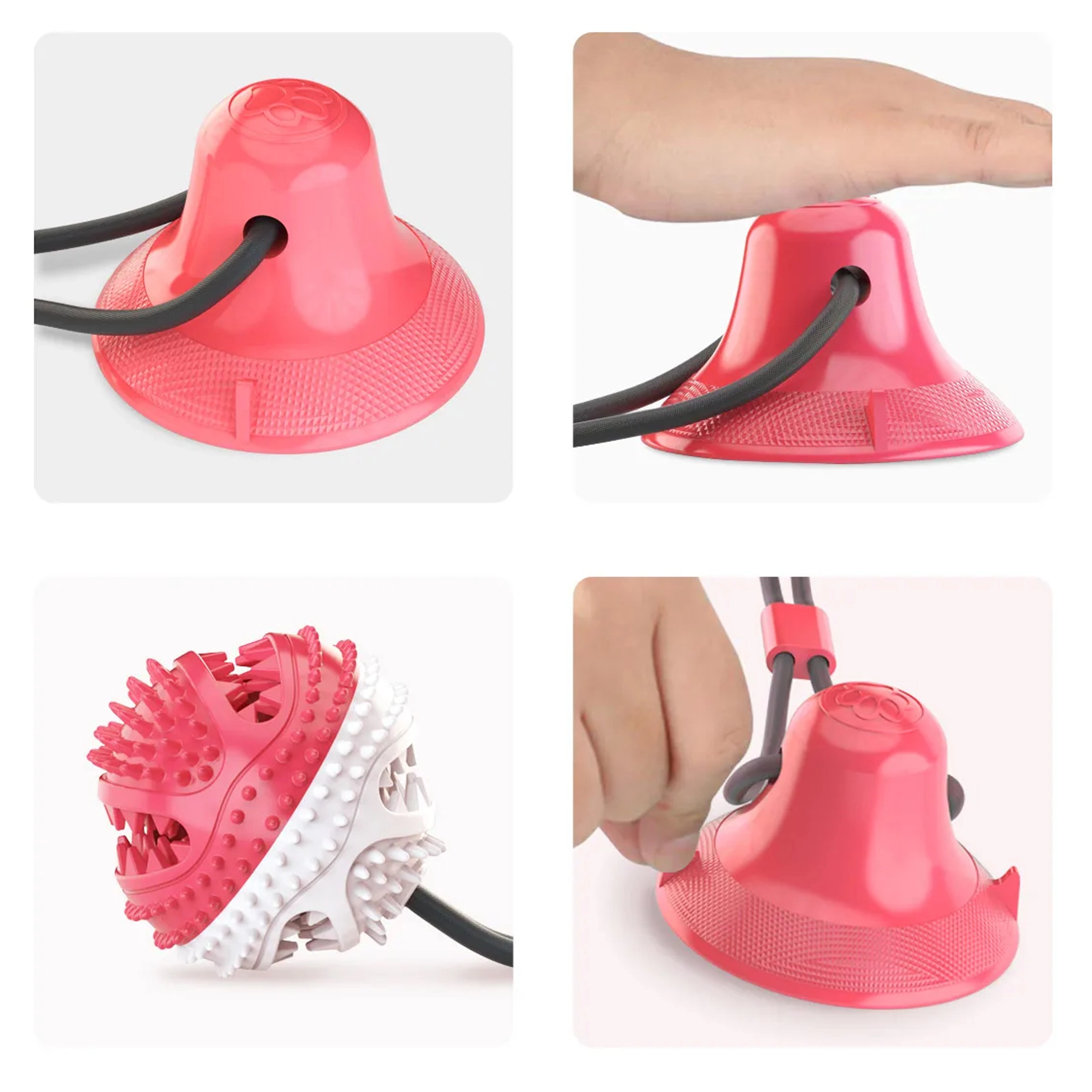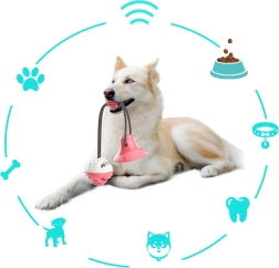 Jouet interactif intelligent pour chiens avec ventouse robuste, corde élastique et balle texturée pour friandises. Favorise le jeu et l’entraînement tout en prenant soin des dents et des gencives grâce aux picots en caoutchouc. Nettoie les dents, masse les gencives, ralentit la gloutonnerie et offre un long divertissement en solo à la maison comme en déplacement.