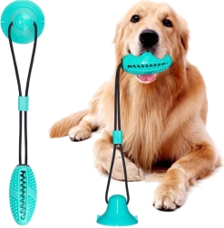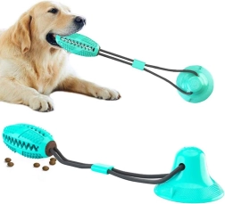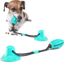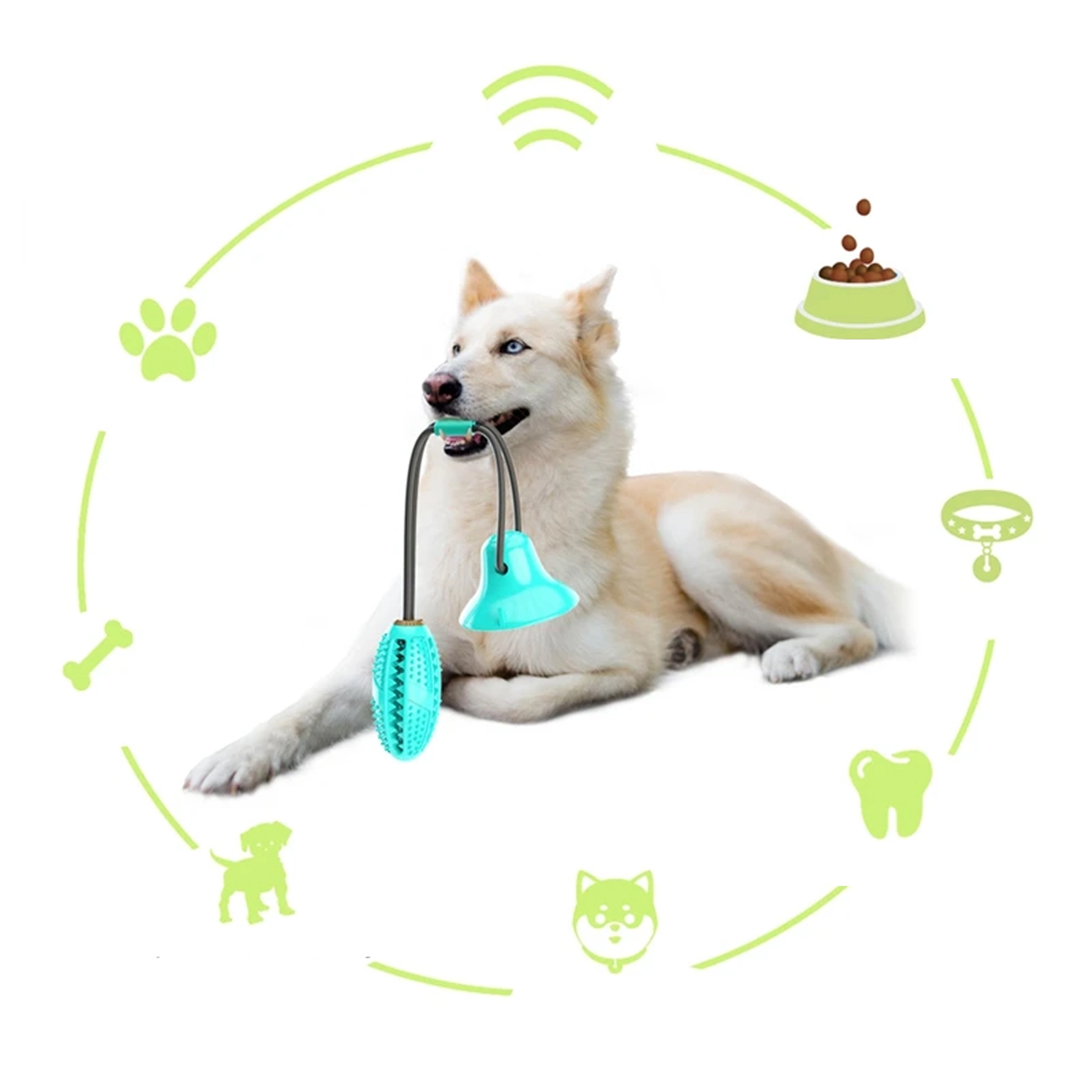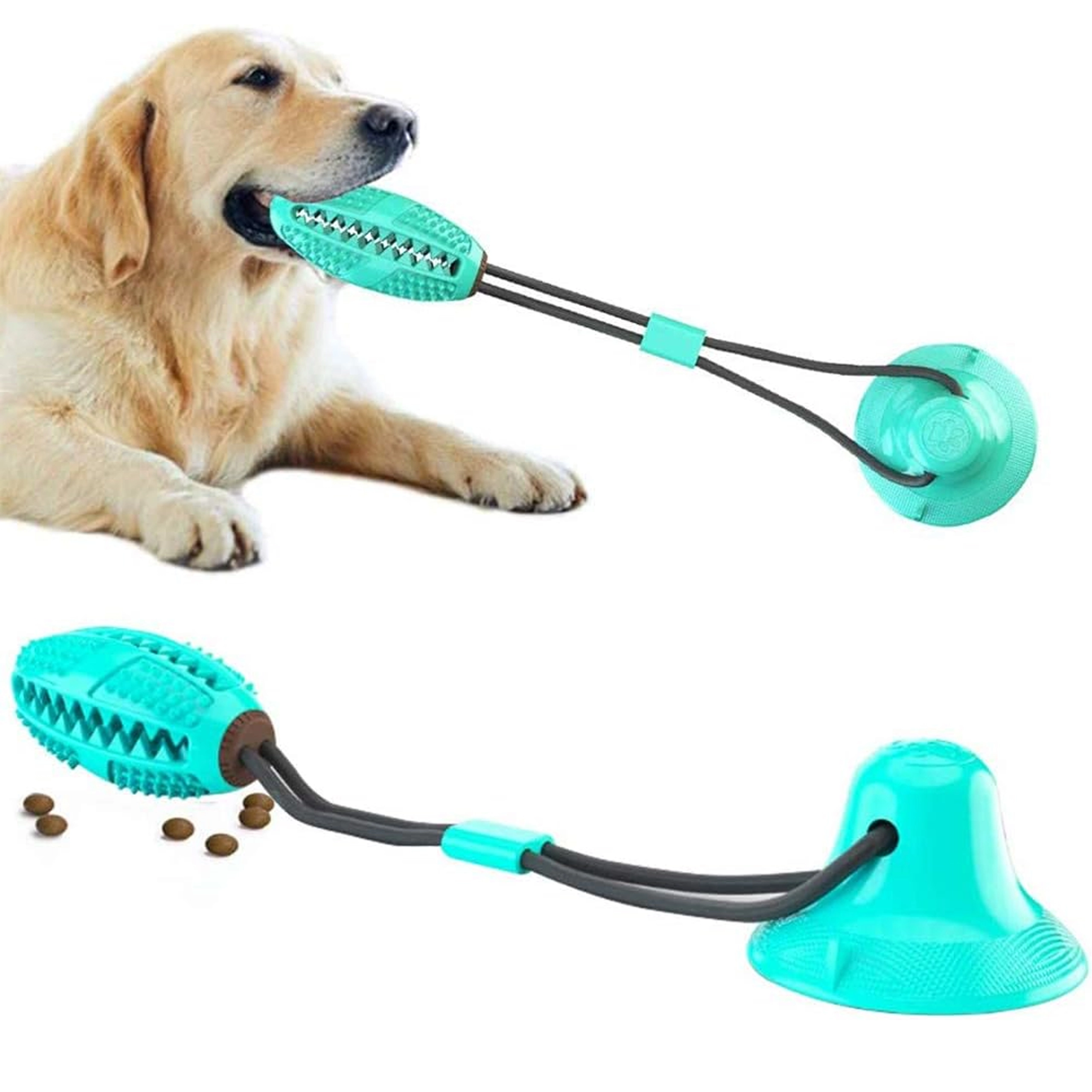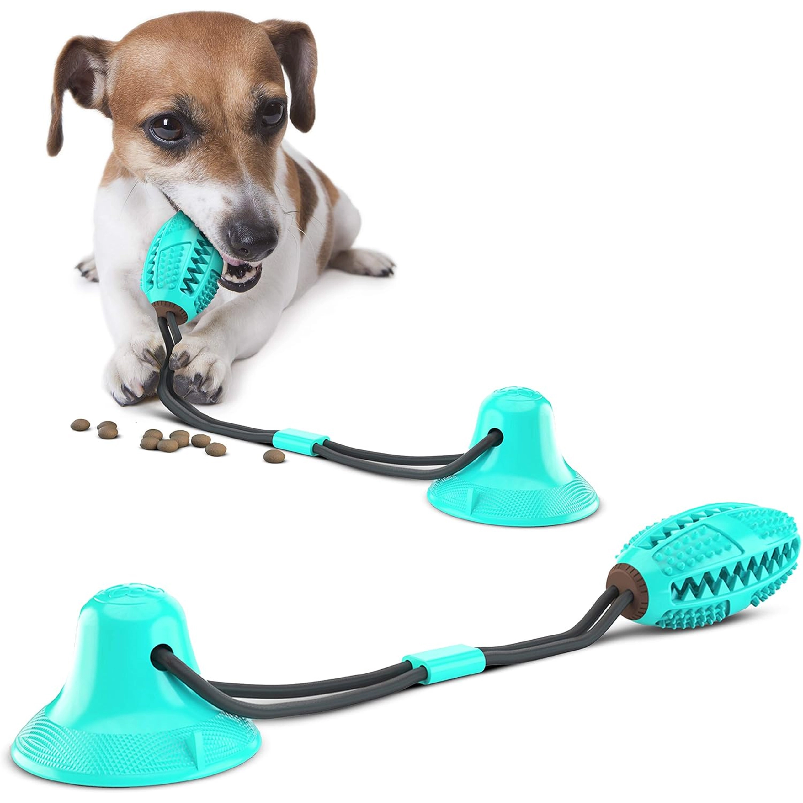 Jouet pour chien interactif avec ventouse et distributeur de friandises, anneau dentaire – turquoise