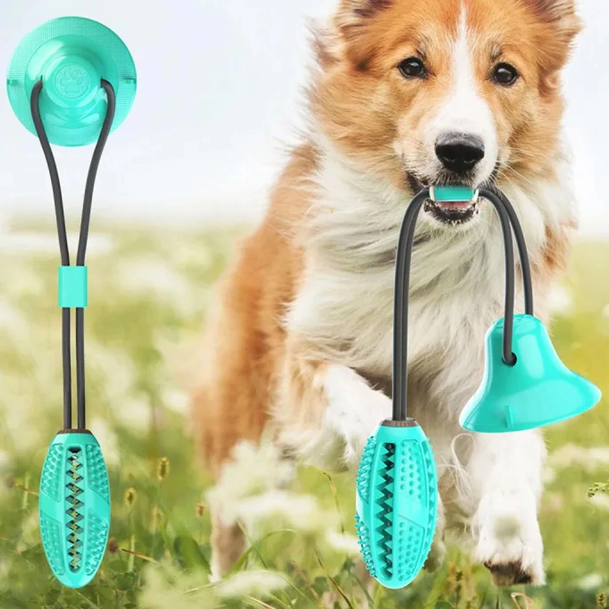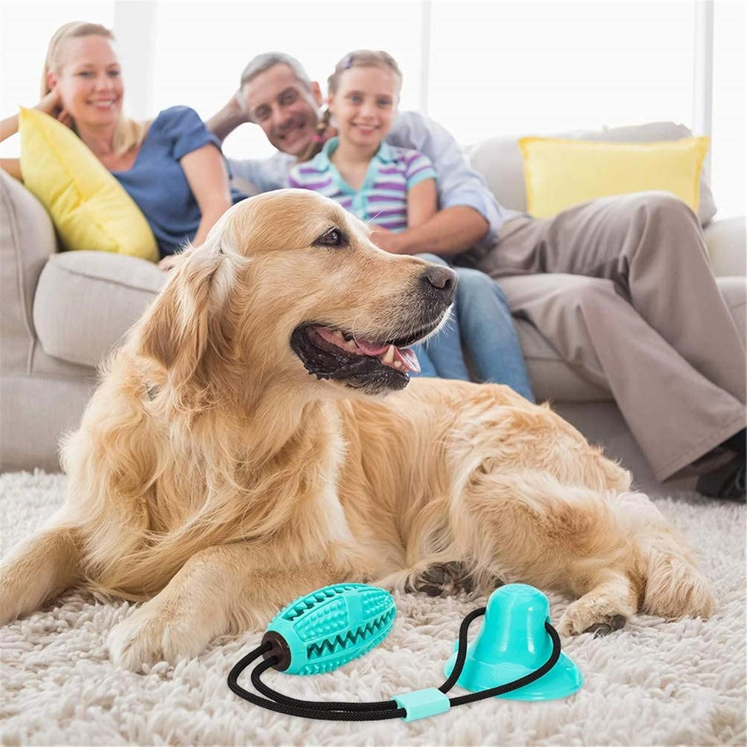 Jouet dentaire interactif pour chien avec ventouse robuste et corde résistante, idéal pour des séances de jeu autonomes ou partagées. Les picots et les brosses texturés , et pendant la mastication. Grâce aux ouvertures pour friandises, le jouet , favorise la et satisfait en toute sécurité le .