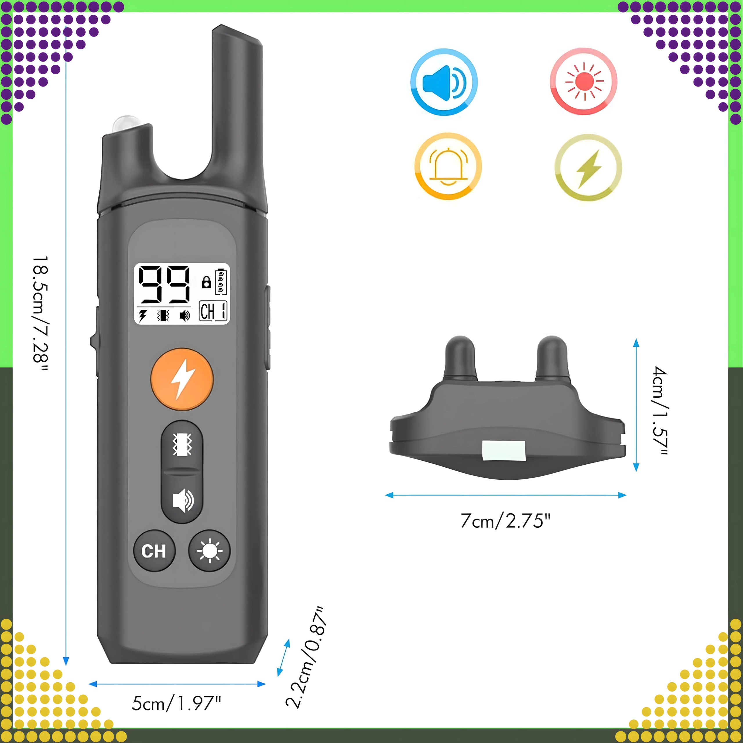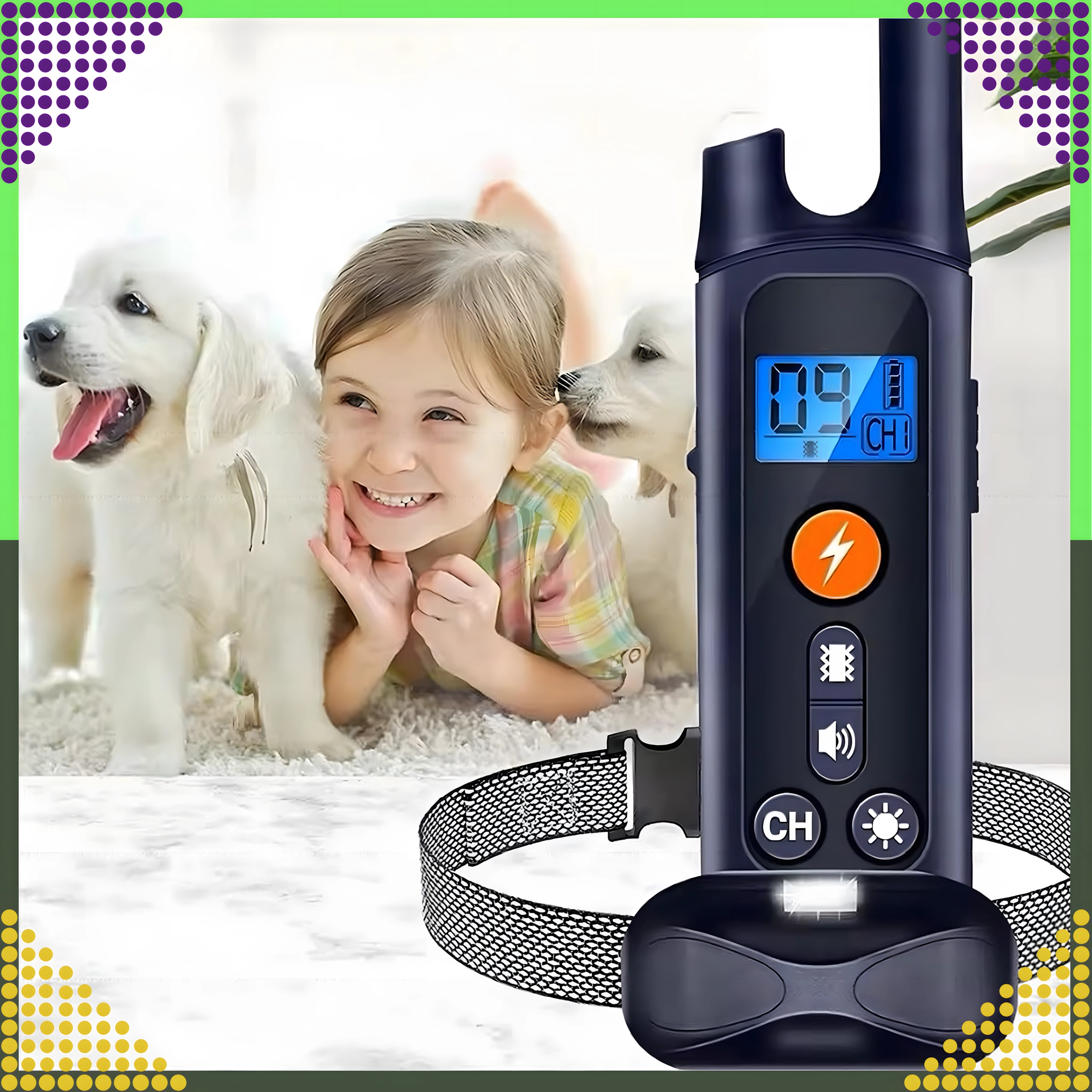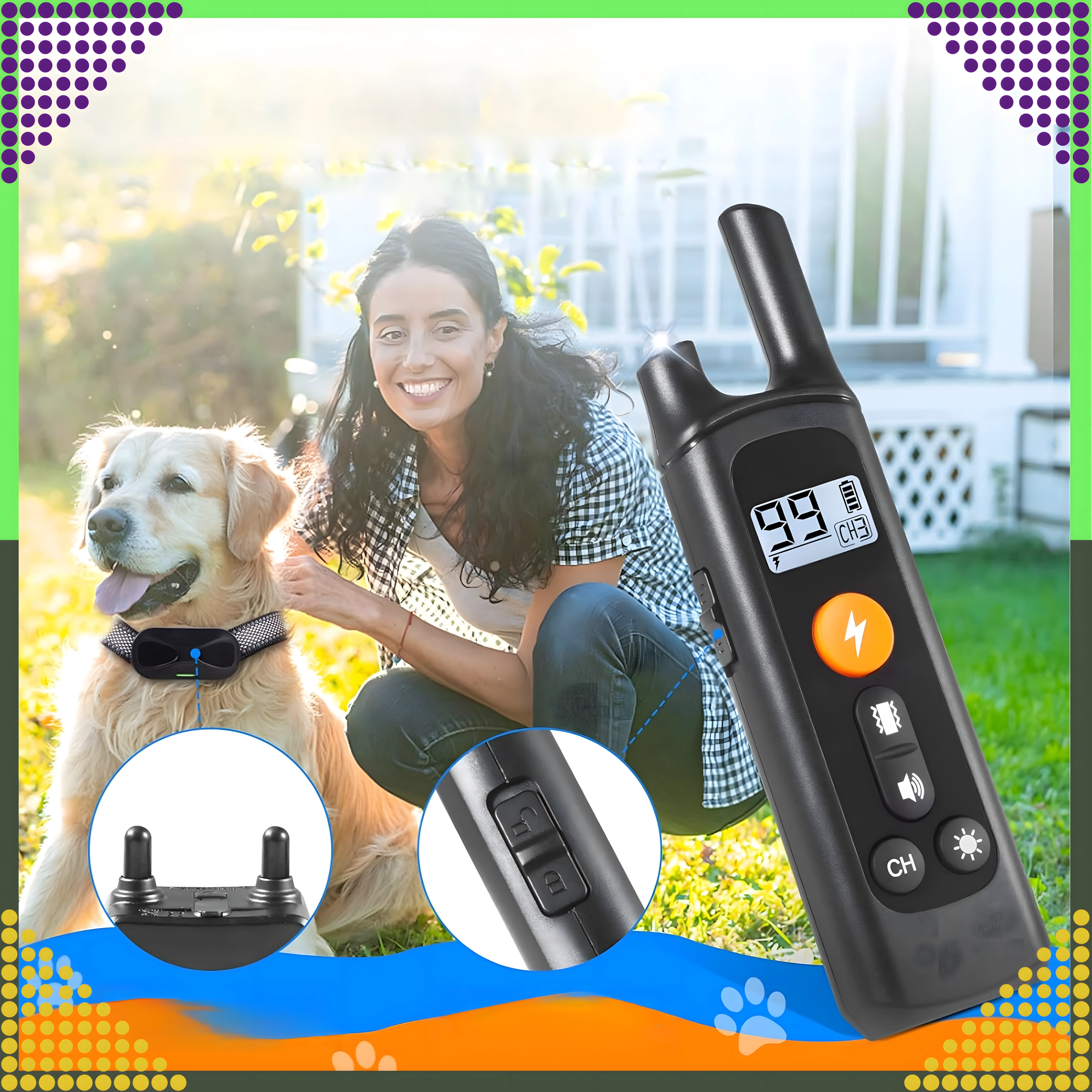 Puissant collier de dressage pour chiens avec une portée jusqu’à 800 m offrant un entraînement sûr et efficace à l’obéissance. Il comprend une télécommande avec lampe LED intégrée pour une utilisation de jour comme de nuit, quatre modes d’entraînement (impulsion, vibration, lumière, son), un design résistant à l’eau et une batterie rechargeable.