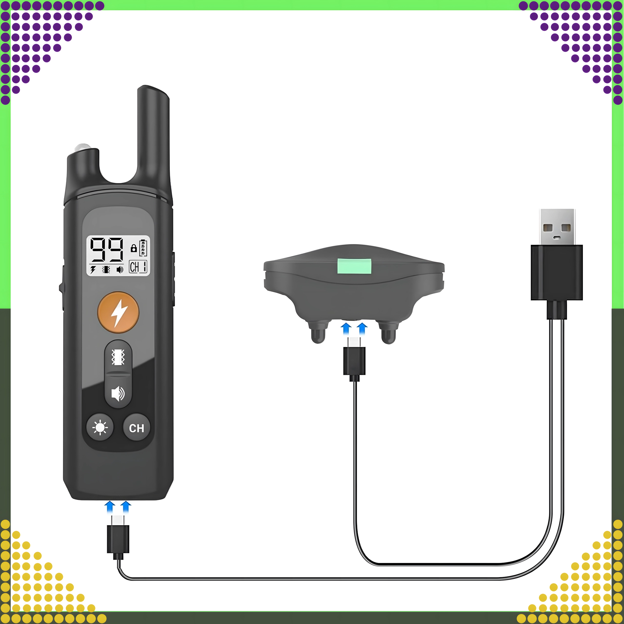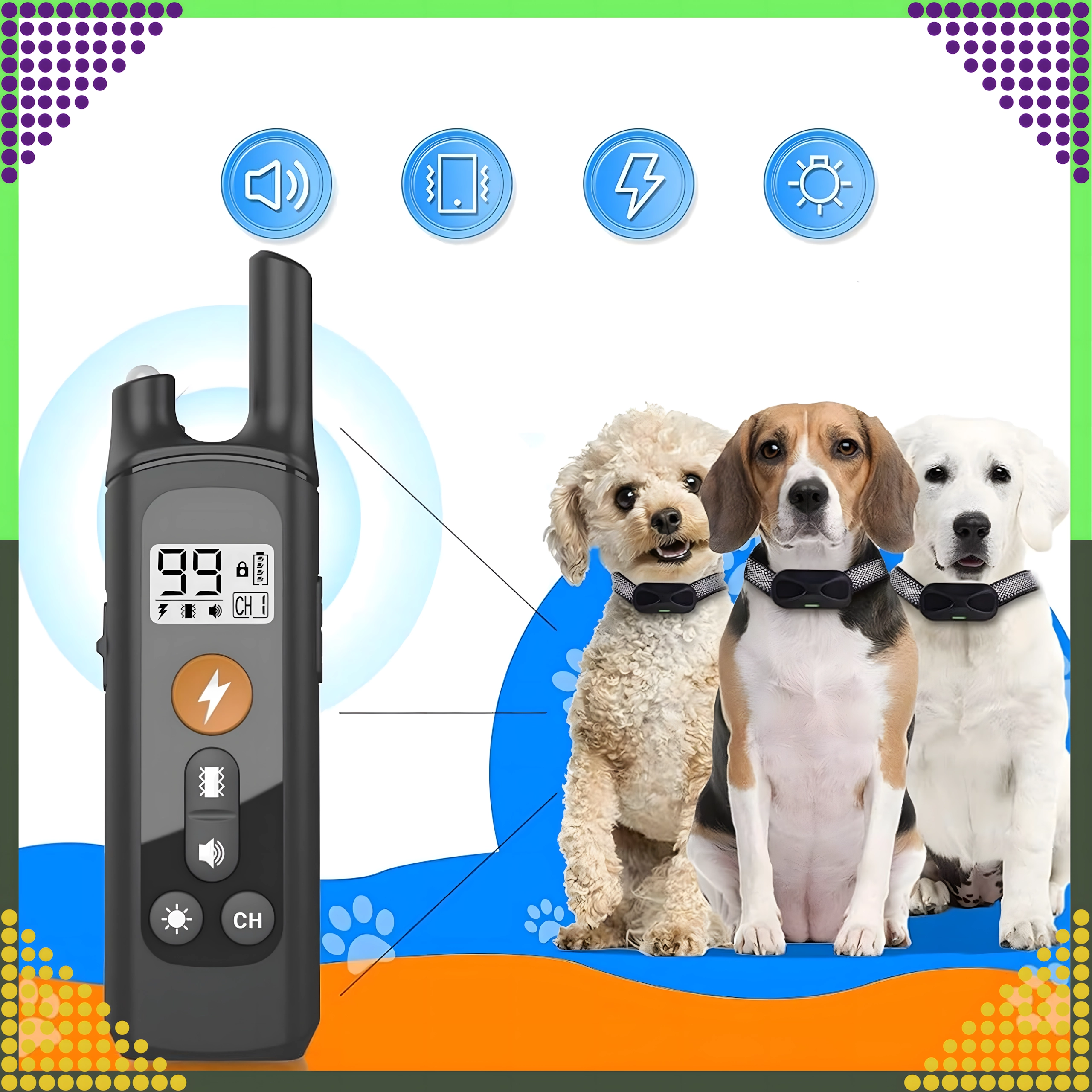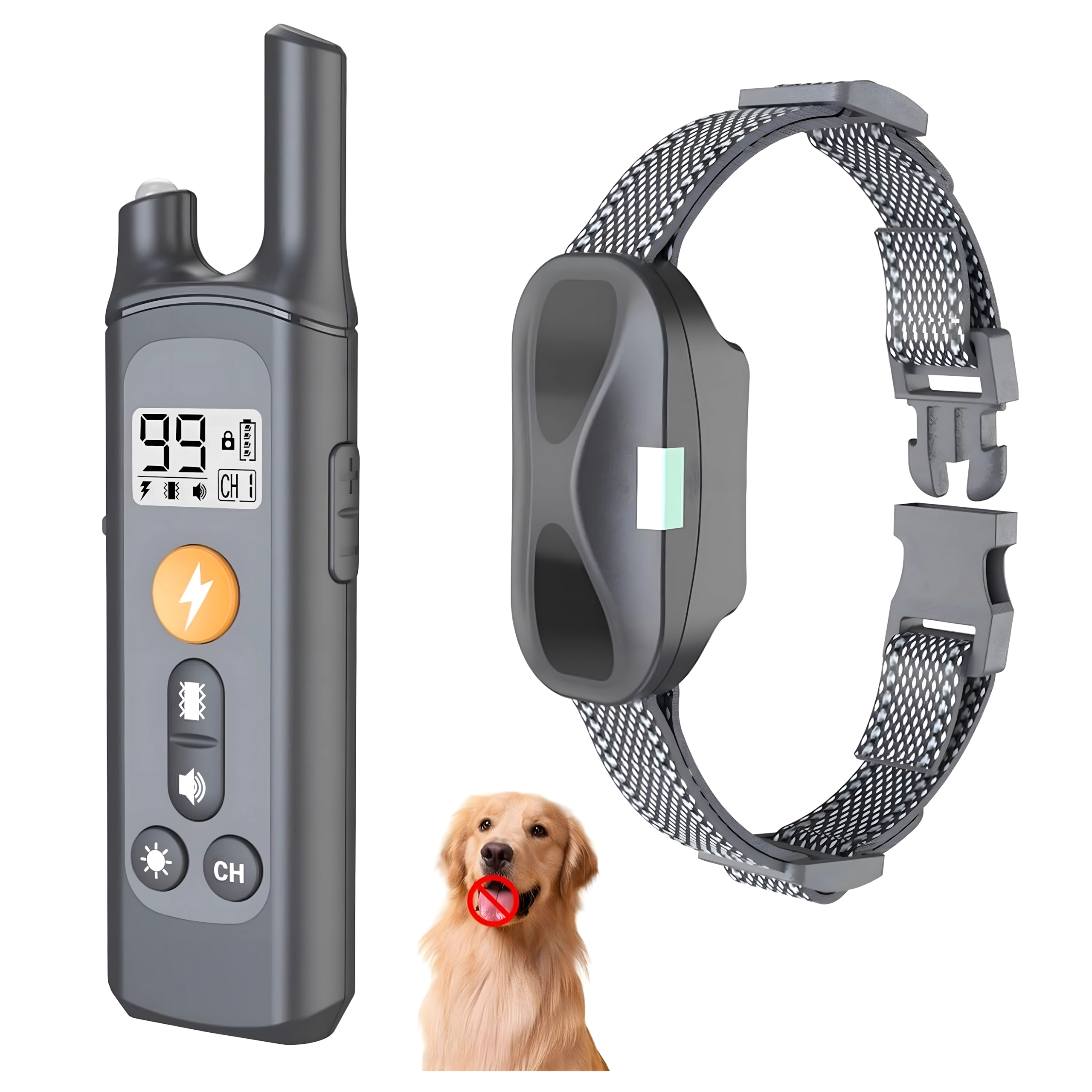 Puissant collier de dressage pour chiens avec une portée jusqu’à 800 m offrant un entraînement sûr et efficace à l’obéissance. Il comprend une télécommande avec lampe LED intégrée pour une utilisation de jour comme de nuit, quatre modes d’entraînement (impulsion, vibration, lumière, son), un design résistant à l’eau et une batterie rechargeable.