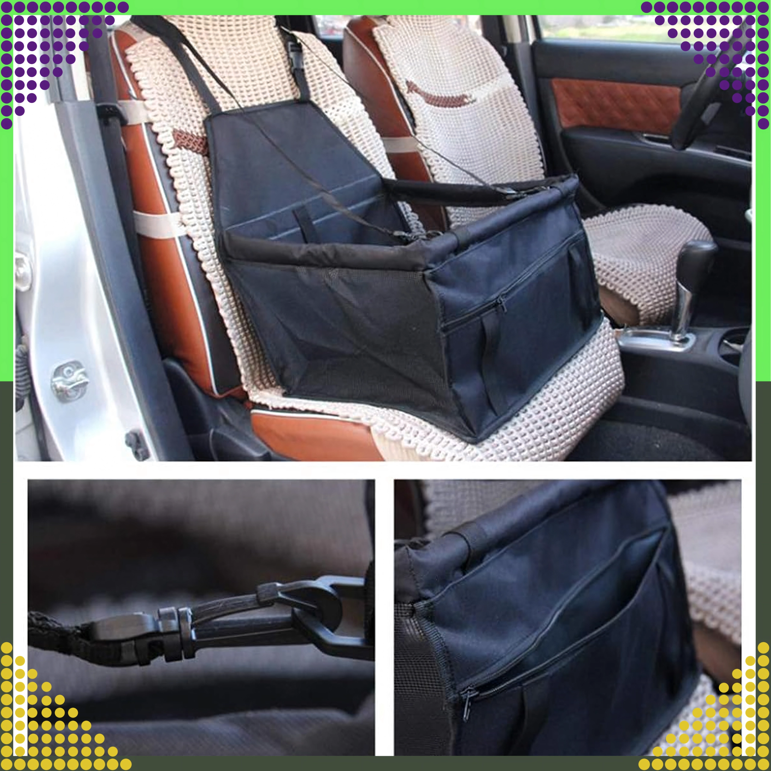 Ce rehausseur de voyage pour animaux est conçu pour les chiens et chats de petite à moyenne taille. L’installation sur le siège avant ou arrière s’appuie sur l’appuie-tête et le dossier, ce qui stabilise le siège même lors de freinages brusques. La sangle de sécurité intégrée avec mousqueton permet d’attacher le harnais de votre animal et empêche ses déplacements libres dans la voiture.