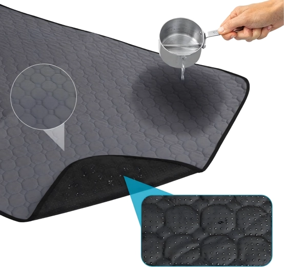 Le tapis réutilisable pour chiens et chats allie confort, hygiène et protection des sols et des meubles. Sa construction multicouche absorbe rapidement l’humidité et évite qu’elle ne traverse jusqu’au sol, tandis que la matière supérieure douce est agréable pour se reposer et pour un usage quotidien.