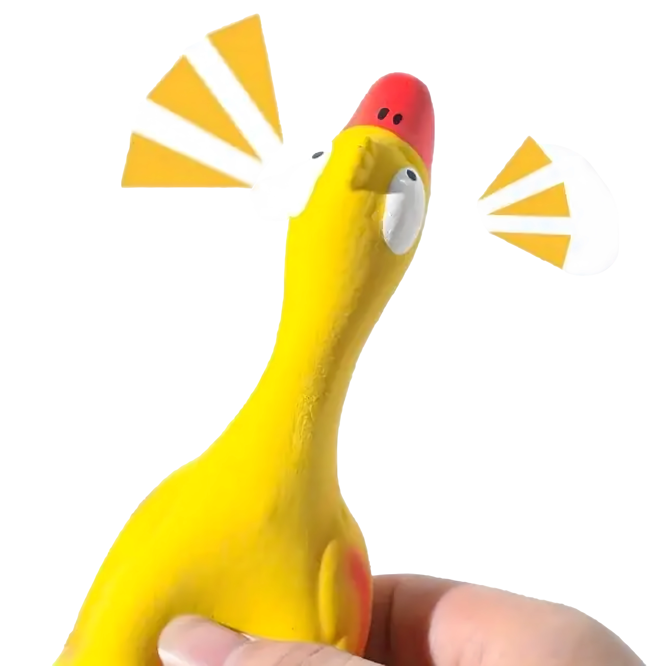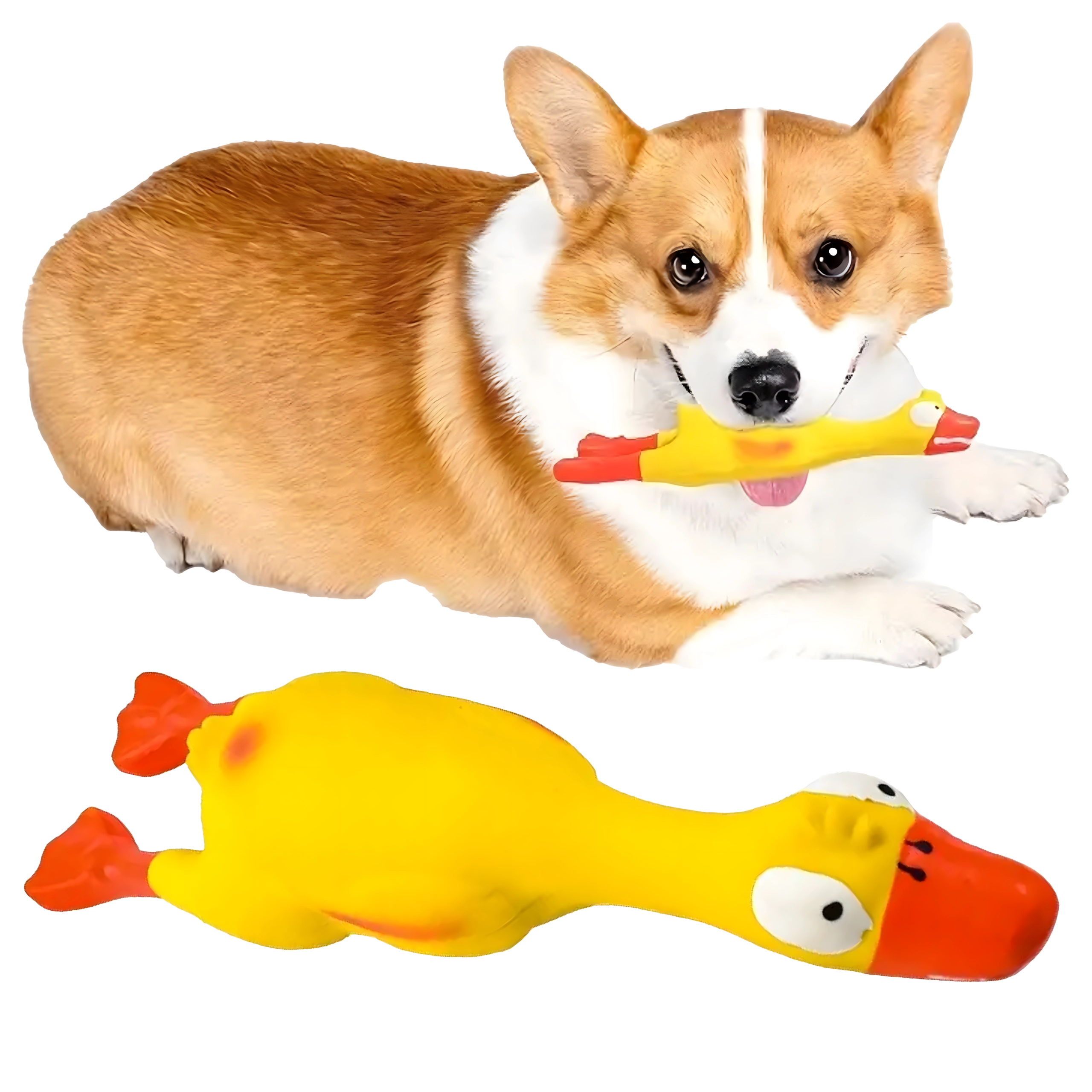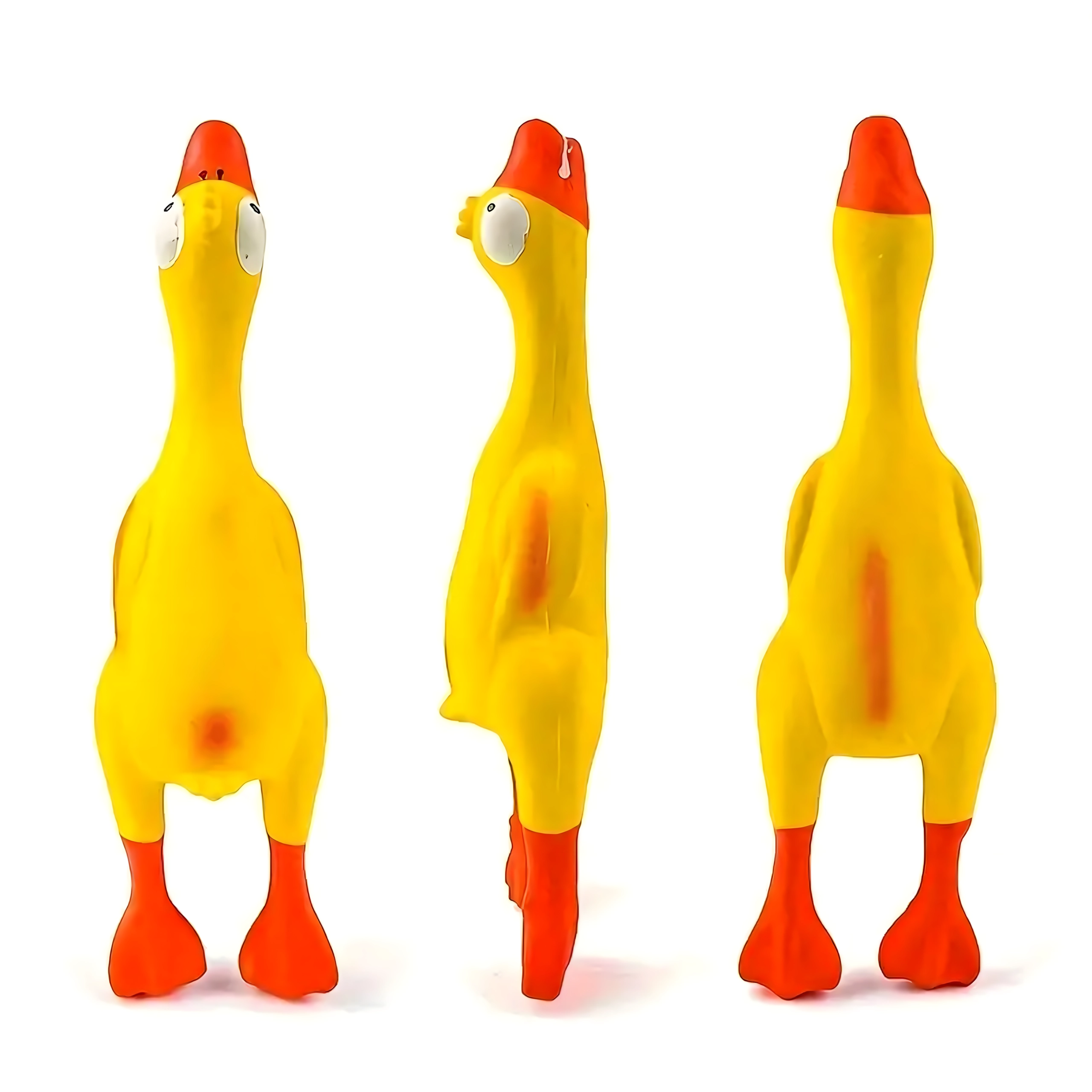 Jouet couineur amusant en forme de poulet de 22 cm pour chiens de toutes tailles. Caoutchouc résistant et flexible qui invite à mâcher, tirer et rapporter; lorsqu’on le presse, il couine et motive à l’activité. Idéal pour dépenser de l’énergie et lutter contre l’ennui, convient aussi aux chats.