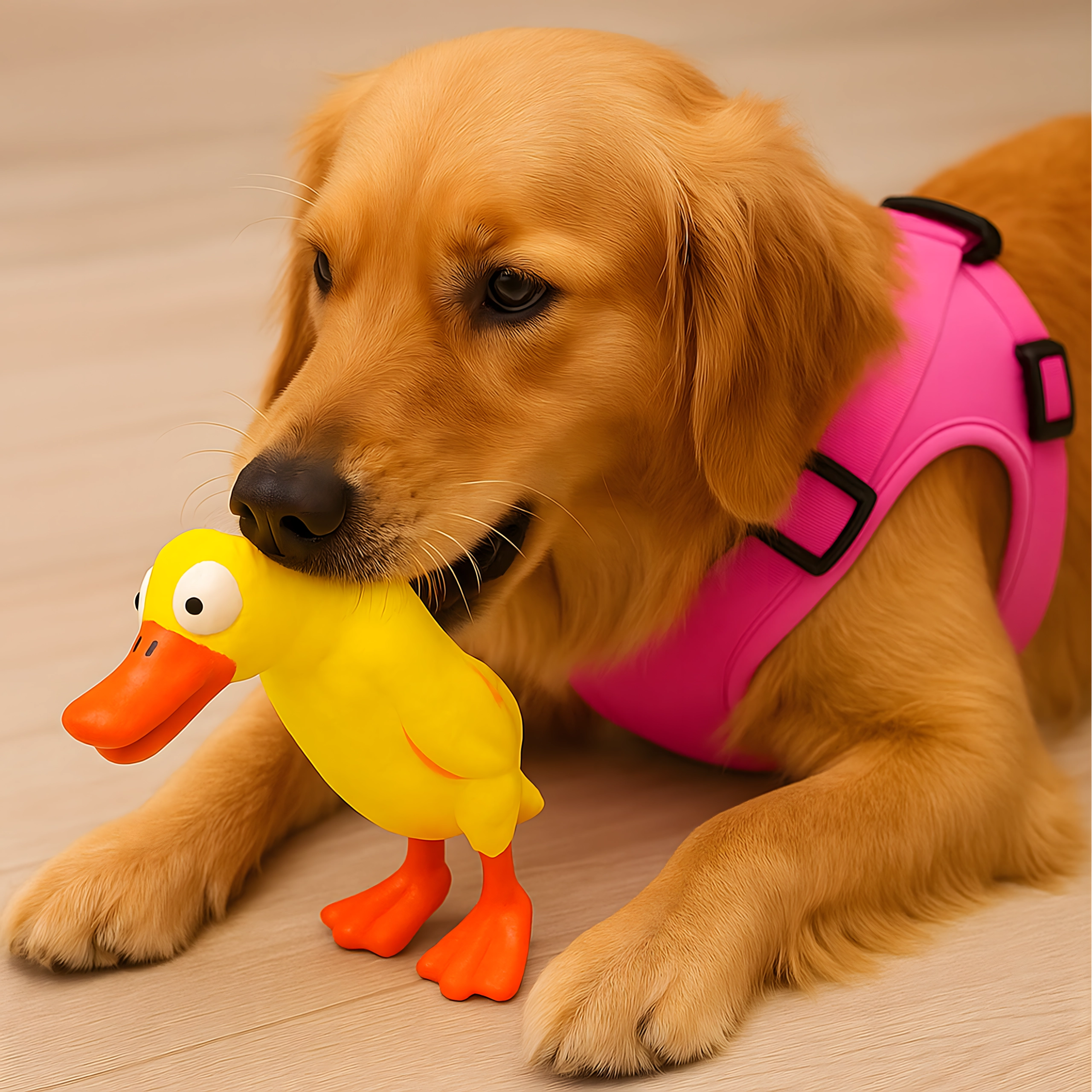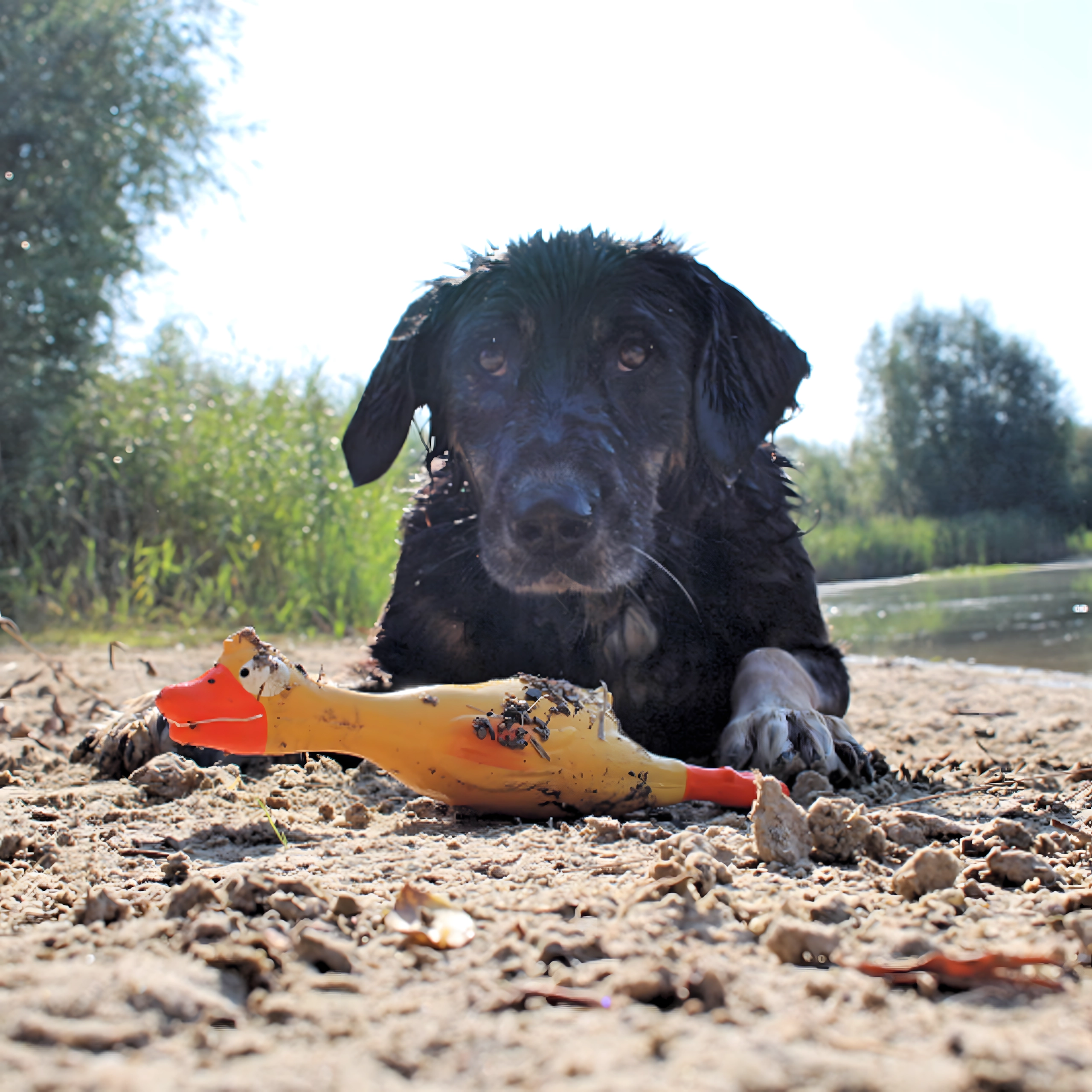Le poulet couineur en caoutchouc de 22 cm est un jouet polyvalent pour s’amuser au quotidien, à la maison comme dehors. Son jaune éclatant avec bec et pattes orange reste bien visible dans l’herbe comme sur le sol, et le couineur interne stimule à coup sûr l’envie de jouer de tout compagnon.