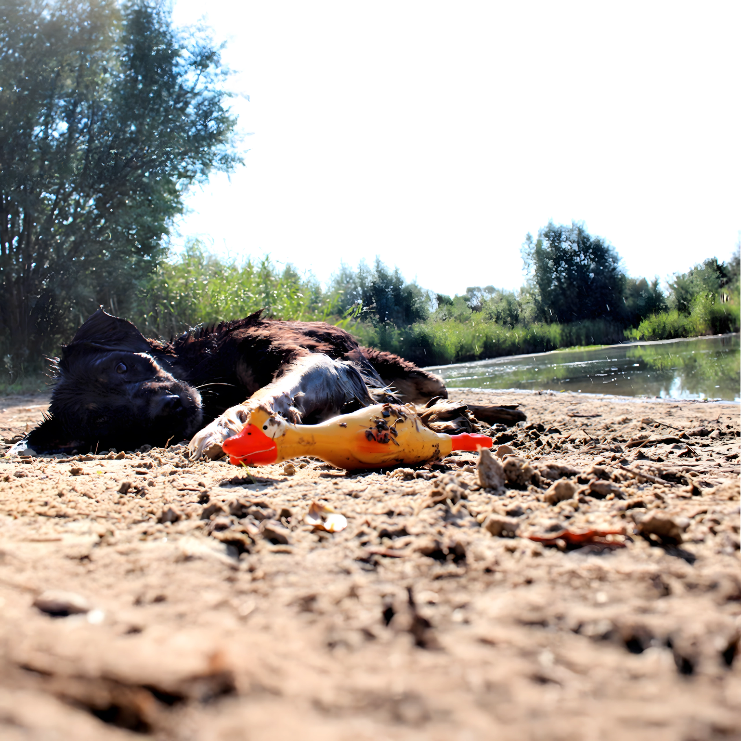 Le couineur intégré émet un son lorsqu’on appuie, ce qui incite les chiens à chasser, rapporter et jouer activement, aidant à prévenir l’ennui.
