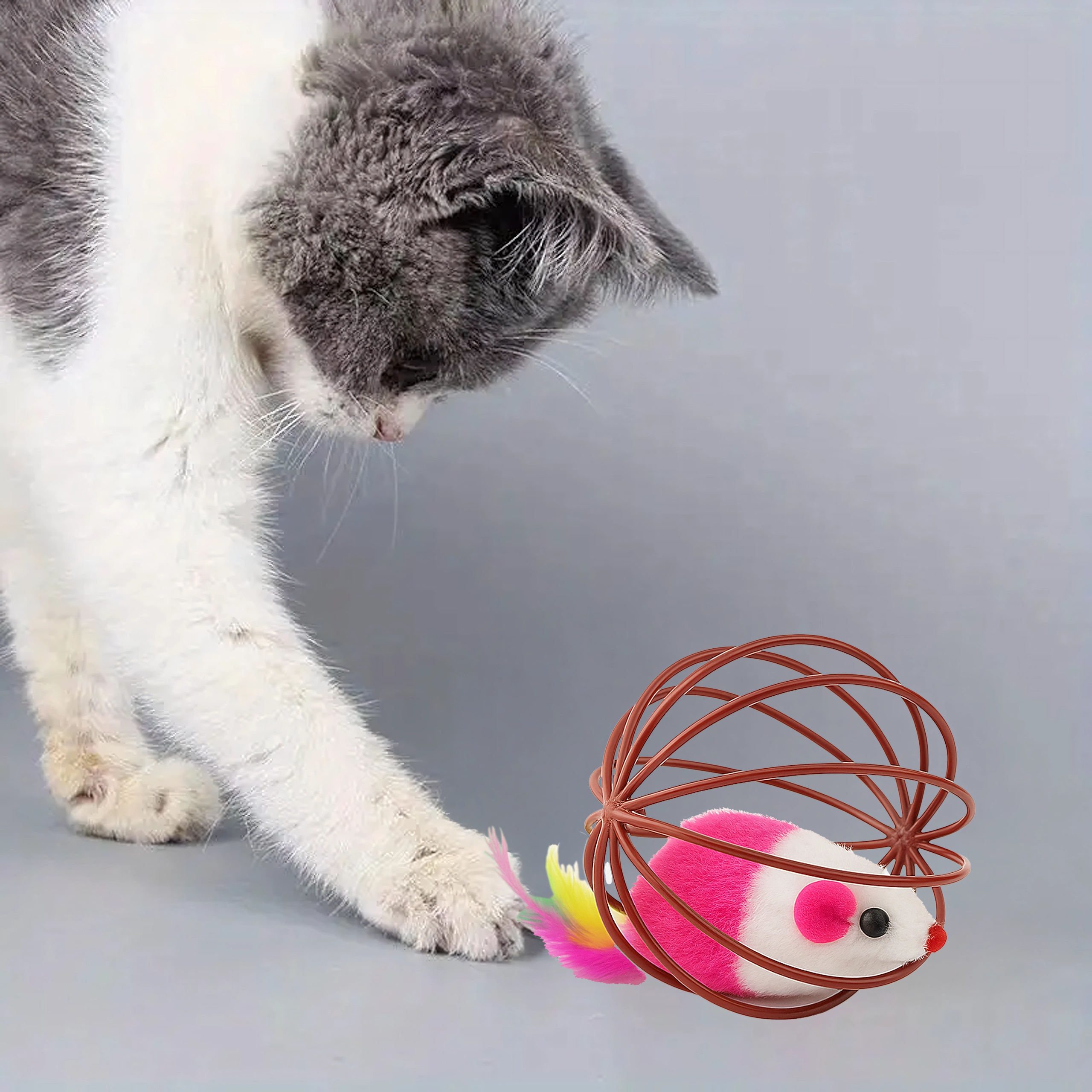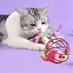 Grâce à sa construction filaire résistante, le jouet roule facilement tout en gardant la souris en sécurité à l’intérieur. La structure ouverte permet au chat de bien saisir et pousser le jouet, tandis que la peluche douce et les plumes offrent des textures attrayantes. Un excellent choix pour le jeu autonome ou interactif avec le propriétaire.