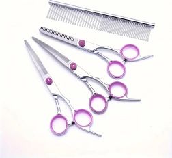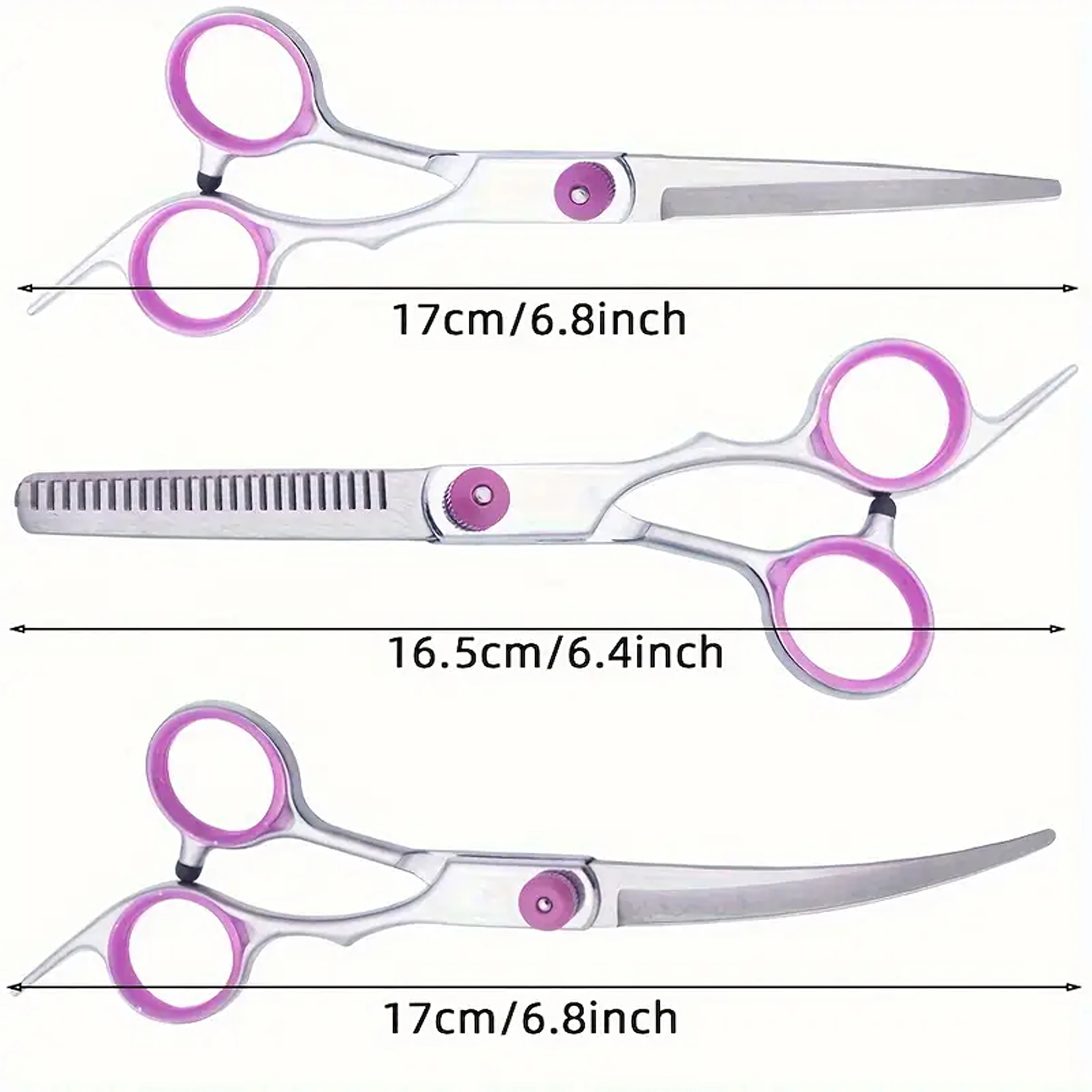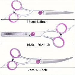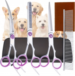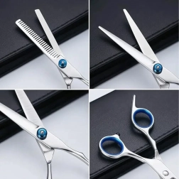 Ce set de toilettage polyvalent est conçu pour le modelage précis, l’amincissement et les finitions du pelage des chiens et des chats. L’acier inoxydable garantit une longue durée de vie, une coupe nette et un entretien facile. Grâce aux anneaux ergonomiques et aux repose-doigts, le travail reste confortable même lors d’utilisations prolongées.