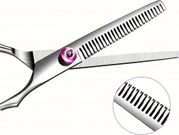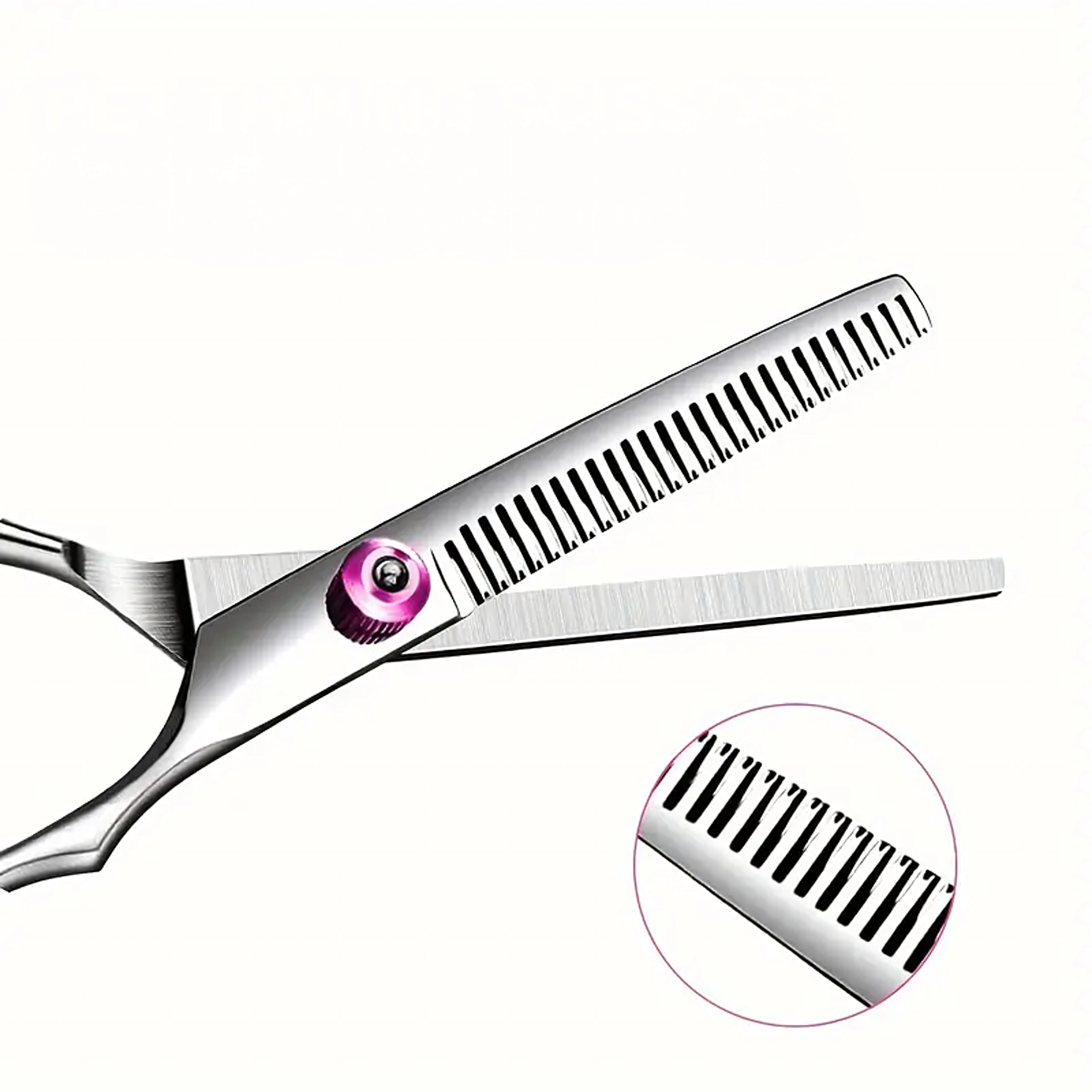Les ciseaux effileurs à dents fines réduisent le volume en douceur et adoucissent les transitions, idéals pour un rendu naturel sans lignes marquées.