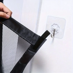 Fixez la barrière à l’aide des supports/crochets adhésifs fournis en quelques minutes – sans intervention dans les murs ni les encadrements.