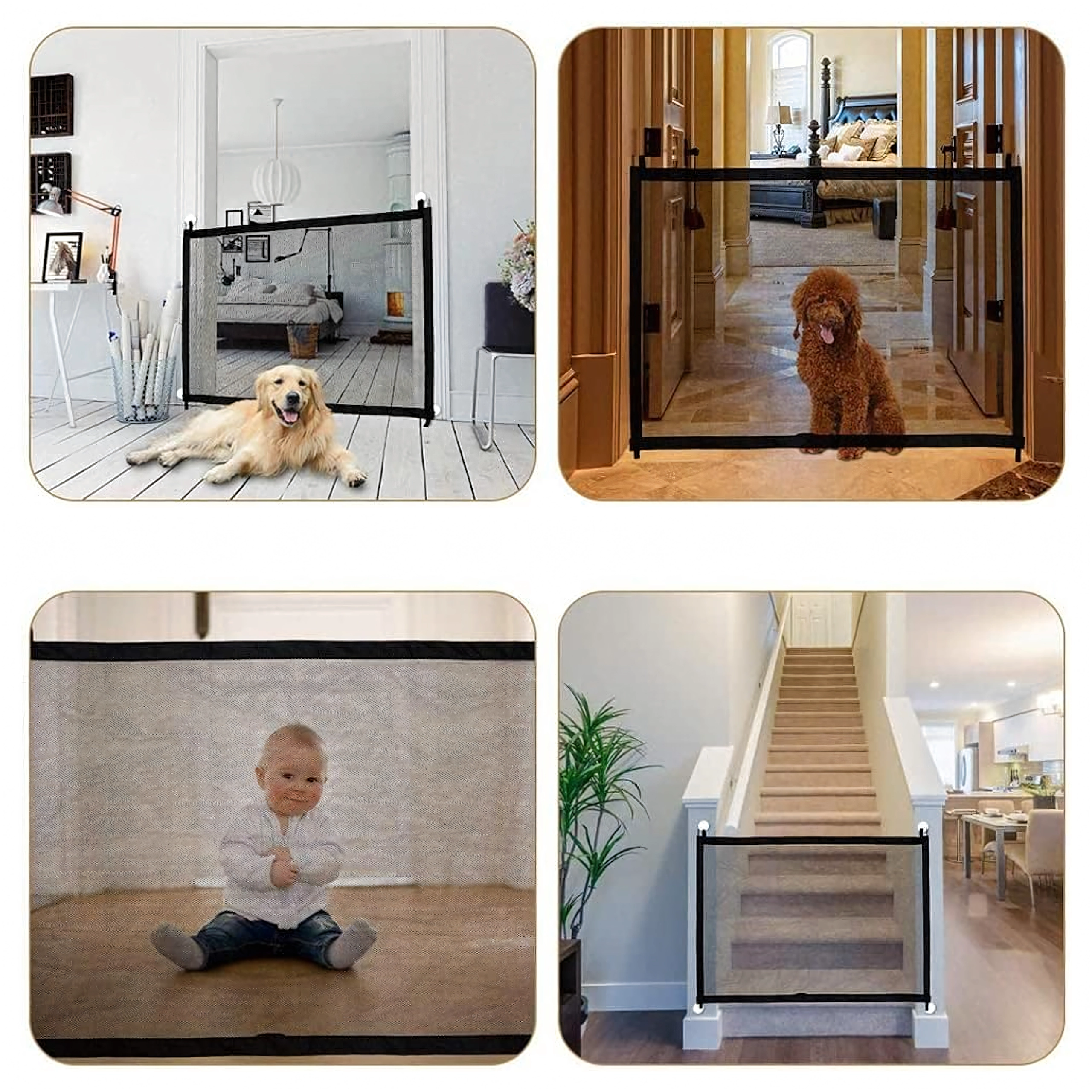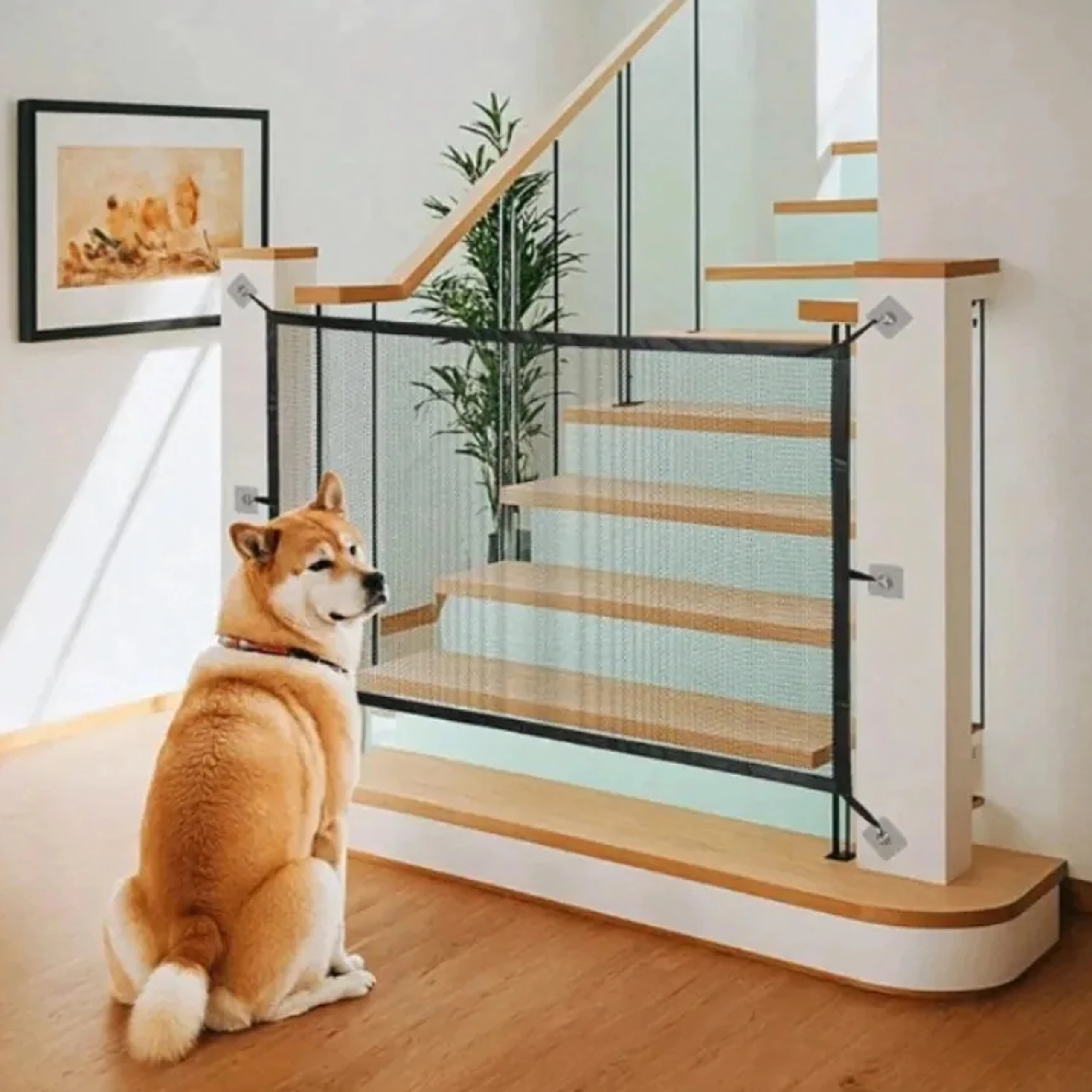 Le montage s’effectue sans perçage à l’aide de supports/crochets adhésifs, sans endommager les murs ni les encadrements. La barrière est légère, se plie facilement et se transporte aisément là où vous en avez besoin. Elle est parfaite pour les logements locatifs, les résidences secondaires et les intérieurs modernes.