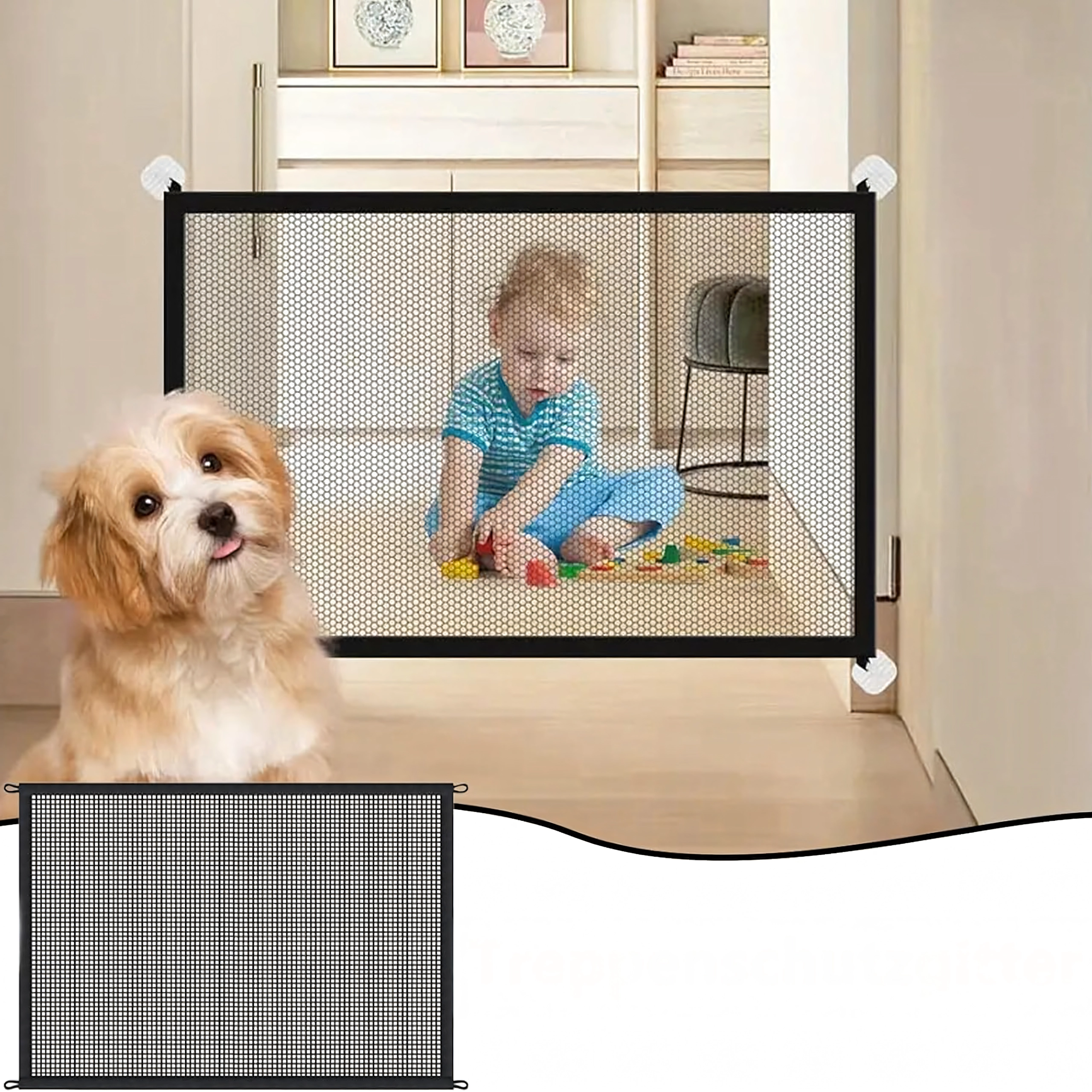 Cette barrière en maille universelle est la solution idéale lorsque vous devez limiter temporairement les déplacements d’un chien ou d’un chat. Grâce à sa maille transparente et respirante, vous gardez vos animaux sous contrôle, tandis que le bord renforcé et la fixation au mur assurent la stabilité de la barrière. Elle convient aux ouvertures de portes, aux couloirs et à la partie inférieure des escaliers.