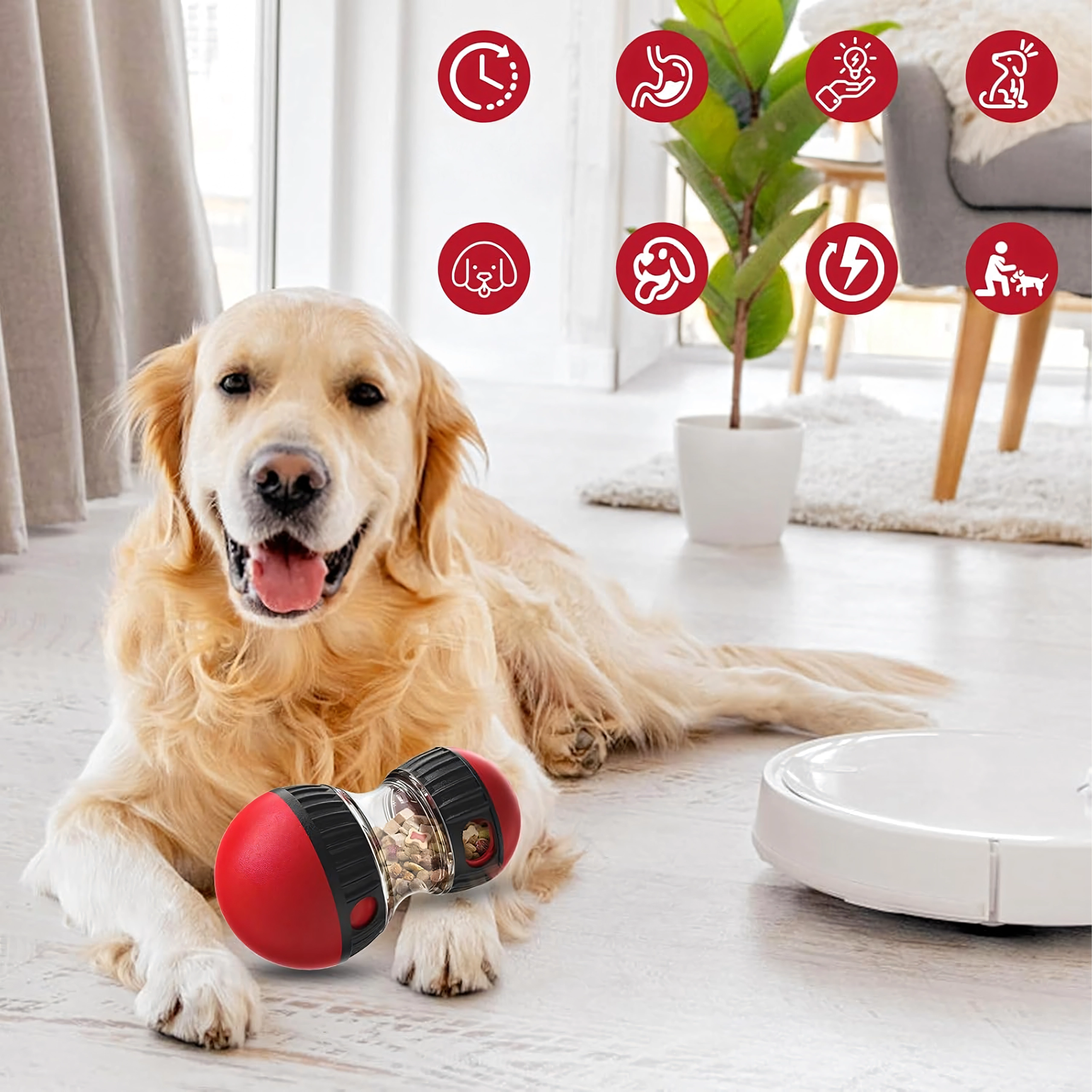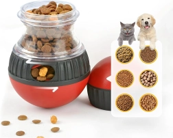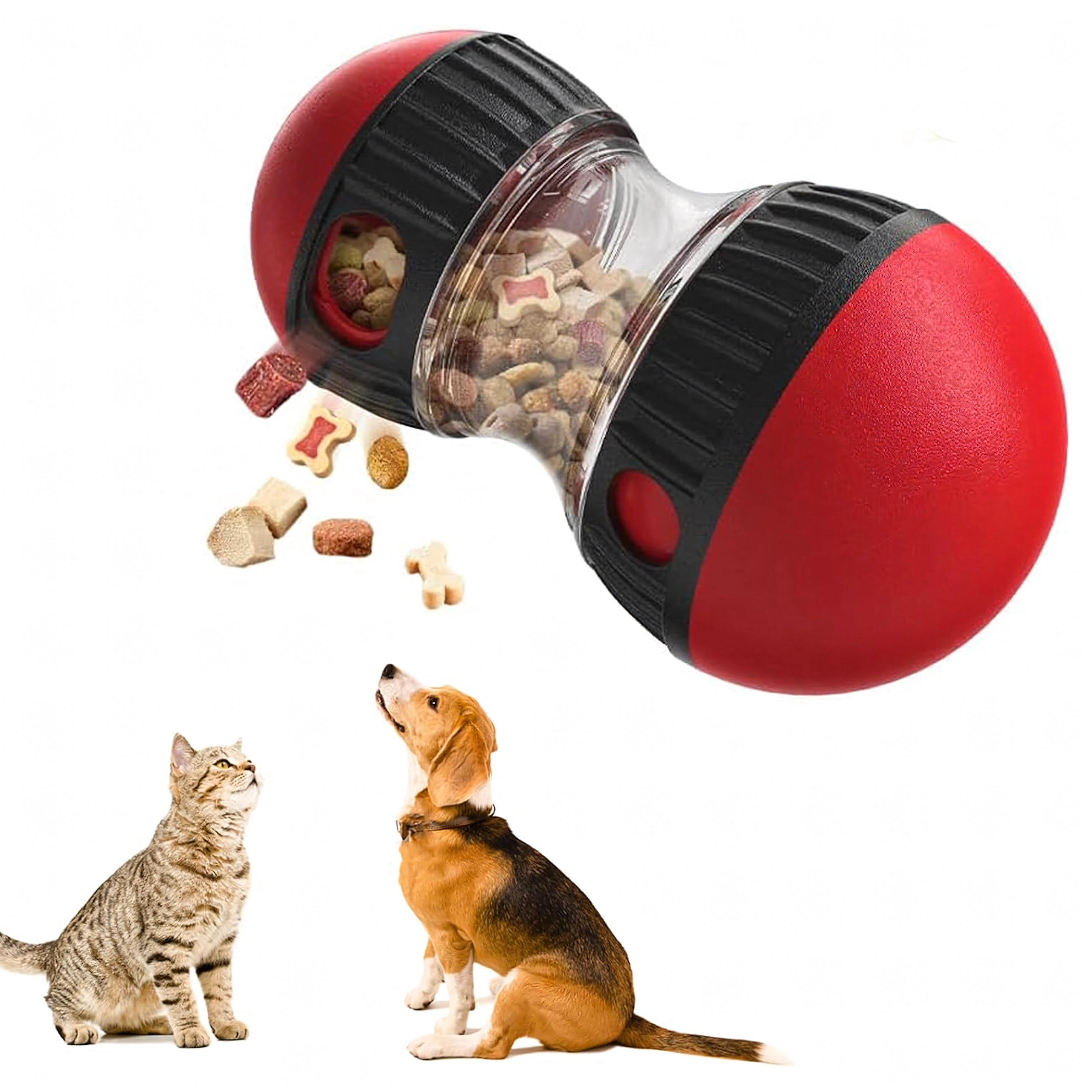 Transformez chaque repas en jeu intelligent. Le distributeur interactif libère les croquettes ou friandises progressivement, ce qui ralentit la prise alimentaire et aide à prévenir les ballonnements ainsi que le stress inutile chez les chiens. La chambre transparente permet de contrôler facilement le contenu et les ouvertures réglables modulent la difficulté de distribution.