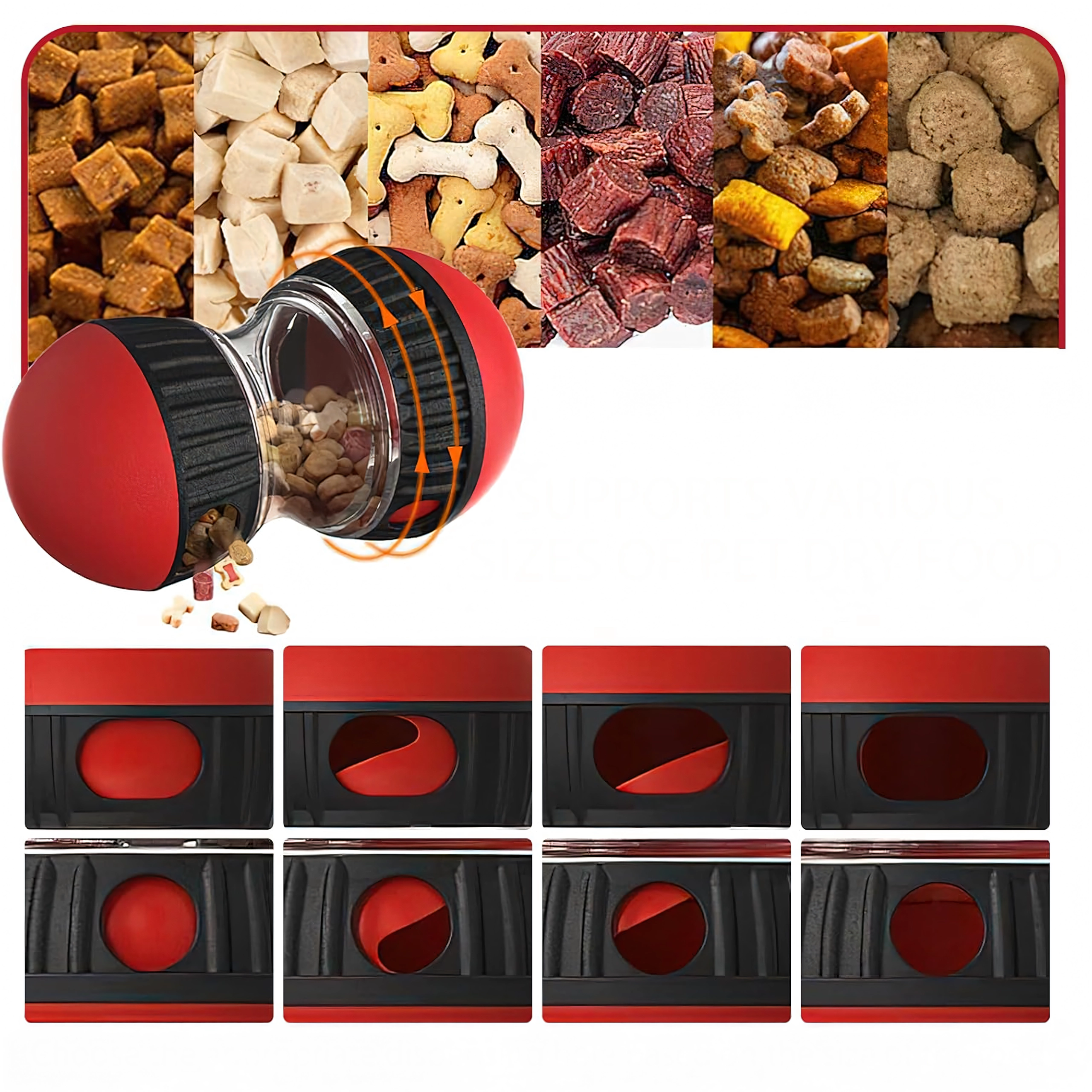 • Difficulté réglable : ouvertures ajustables pour différentes tailles de croquettes et friandises