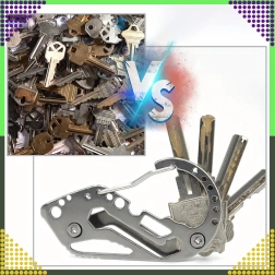 Un axe fileté malin et des entretoises maintiennent vos clés fermement et de façon ordonnée dans un profil compact – fini le désordre dans la poche.