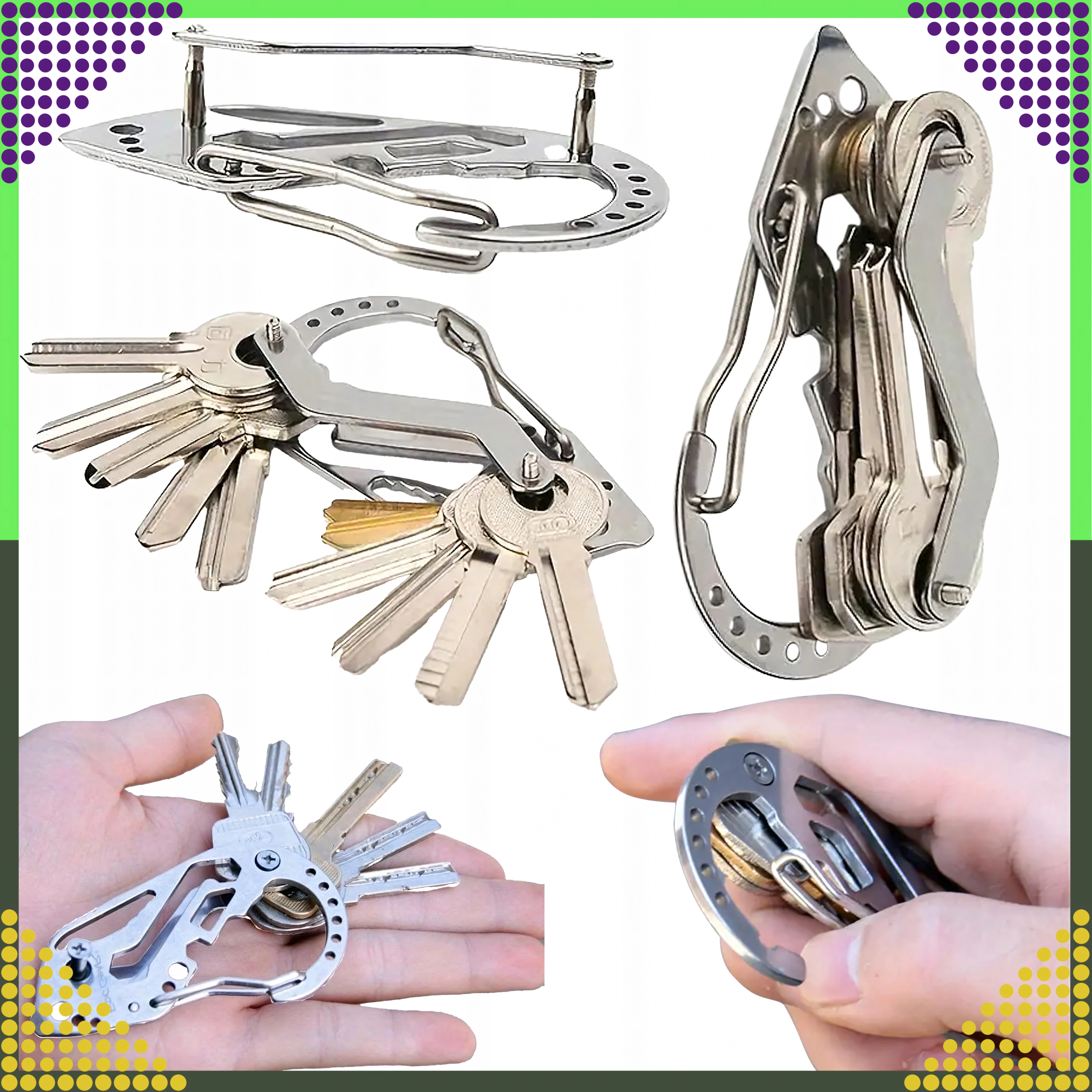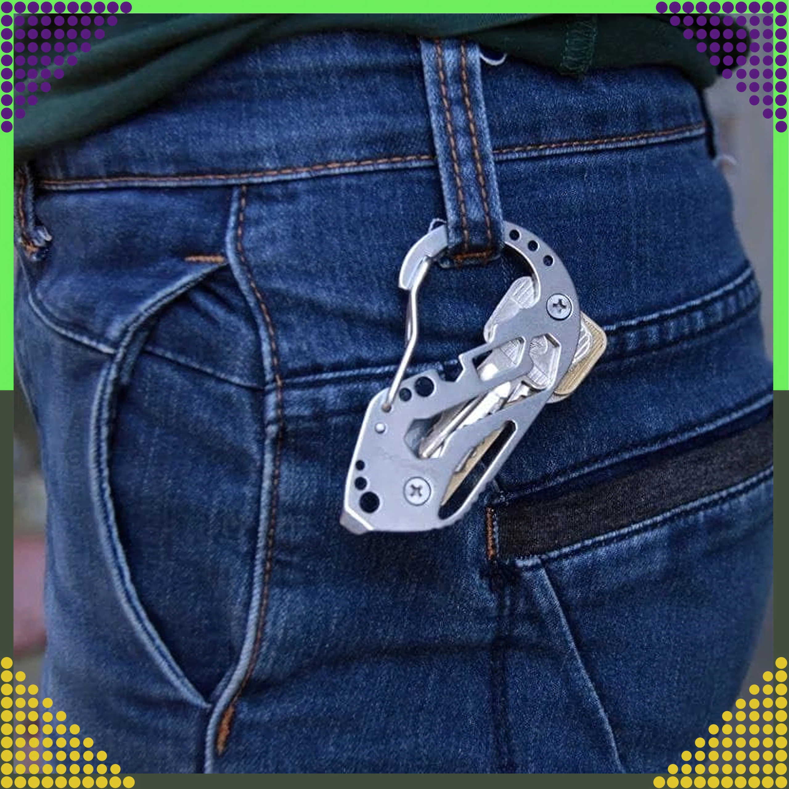 Gardez vos clés bien organisées et toujours à portée de main tout en profitant d’un outil pratique tout‑en‑un. Ce mini multitool avec mousqueton en acier inoxydable accueille jusqu’à 8 clés et intègre des outils comme un tournevis, un décapsuleur et des clés de plusieurs tailles. Construction robuste, fixation rapide à la ceinture ou au sac, et usage polyvalent au quotidien comme en extérieur.