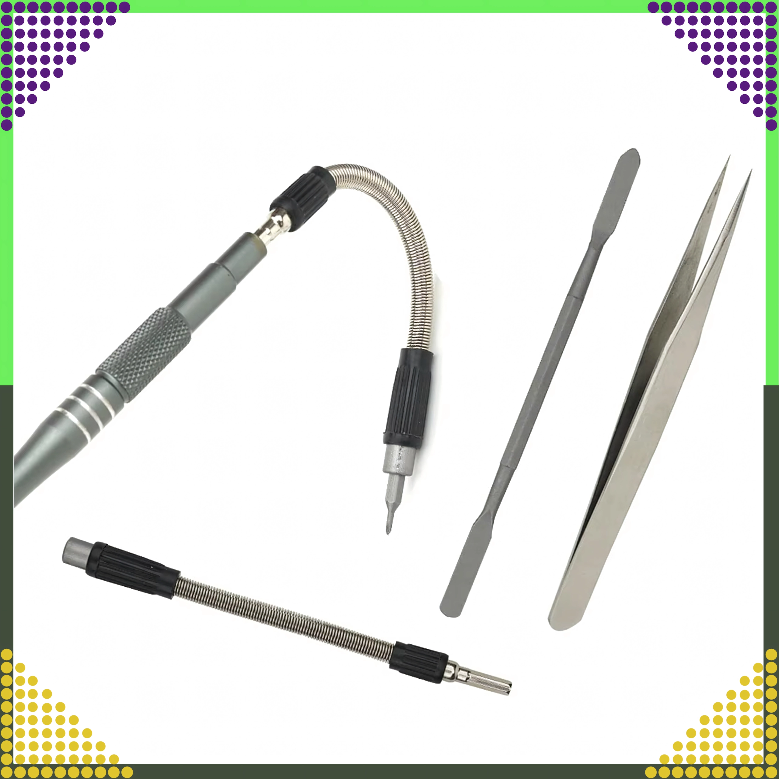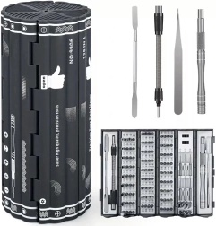 La large sélection d’embouts et d’accessoires couvre la plupart des tâches de service électronique (téléphones, ordinateurs portables, consoles de jeu), les assemblages délicats (montres, lunettes, appareils photo) ainsi que le bricolage courant à la maison. Un étui pratique est inclus pour un rangement clair et un transport facile.