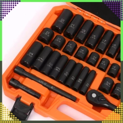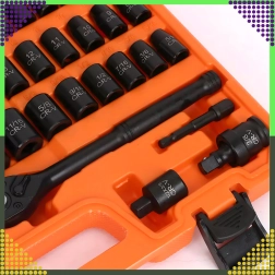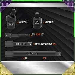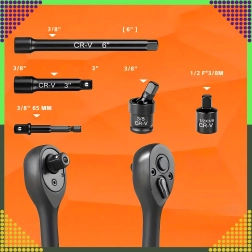 - Cliquet 3/8'', rallonges, joint universel, adaptateurs (selon ensemble)