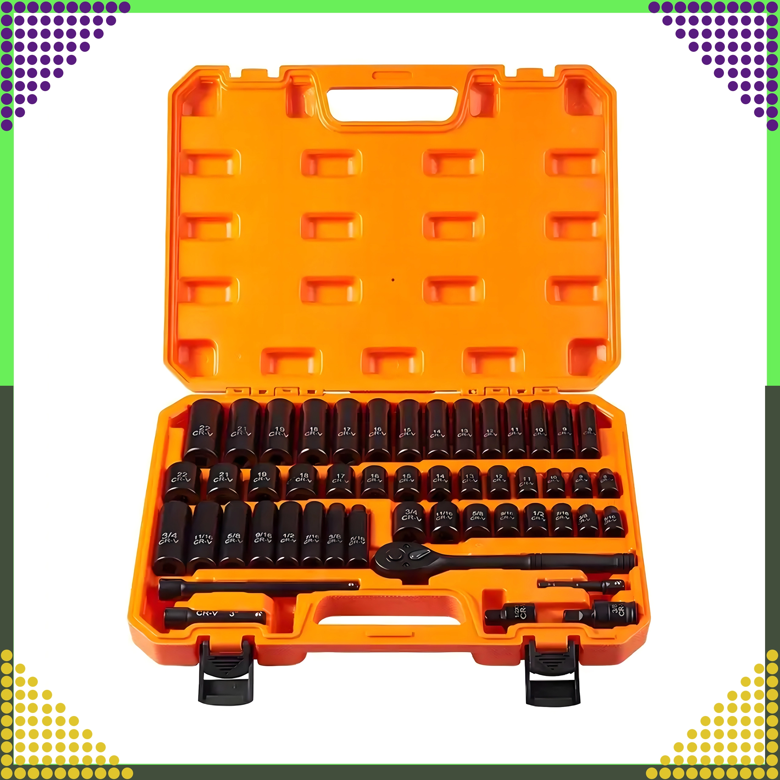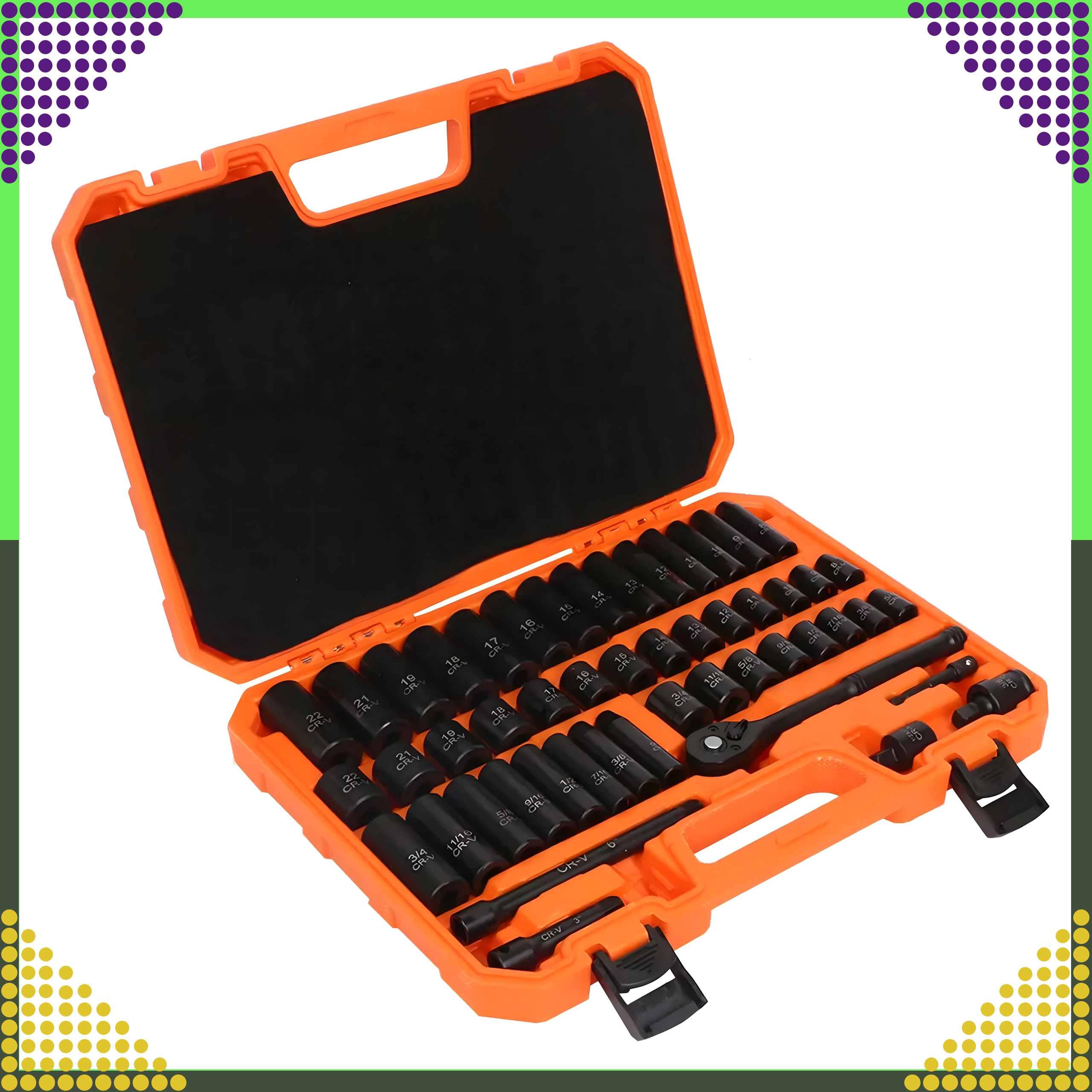 Set professionnel de douilles et accessoires à chocs avec entraînement 3/8'' comprenant jusqu’à 50 pièces en dimensions métriques et SAE. Propose des douilles 6 pans pour une prise sûre, une cliquet 3/8'', des rallonges et un cardan universel. Fabriqué en acier Cr-V résistant et livré dans une mallette de transport robuste pour une organisation parfaite.