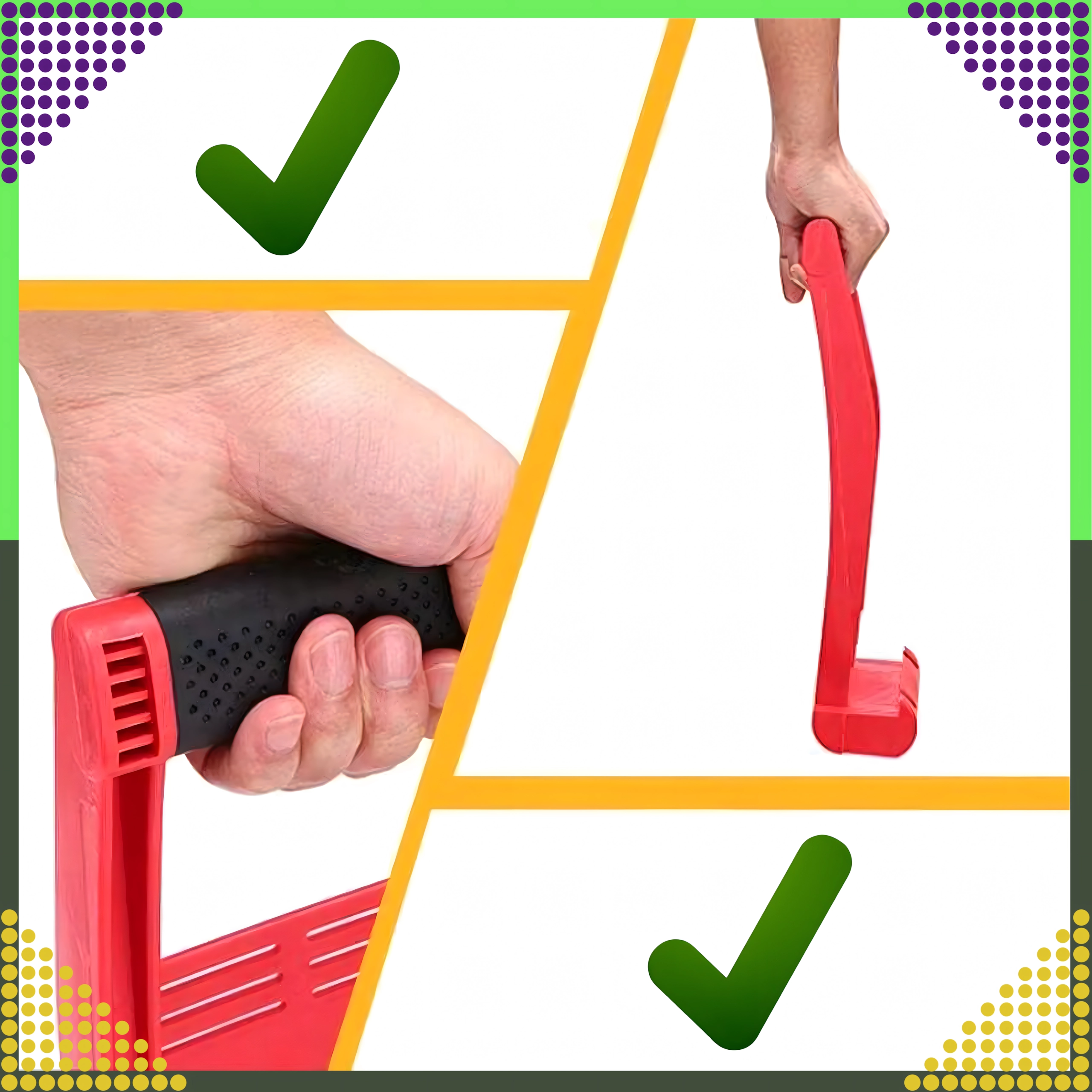 Poignée antidérapante, base stable pour effet de levier