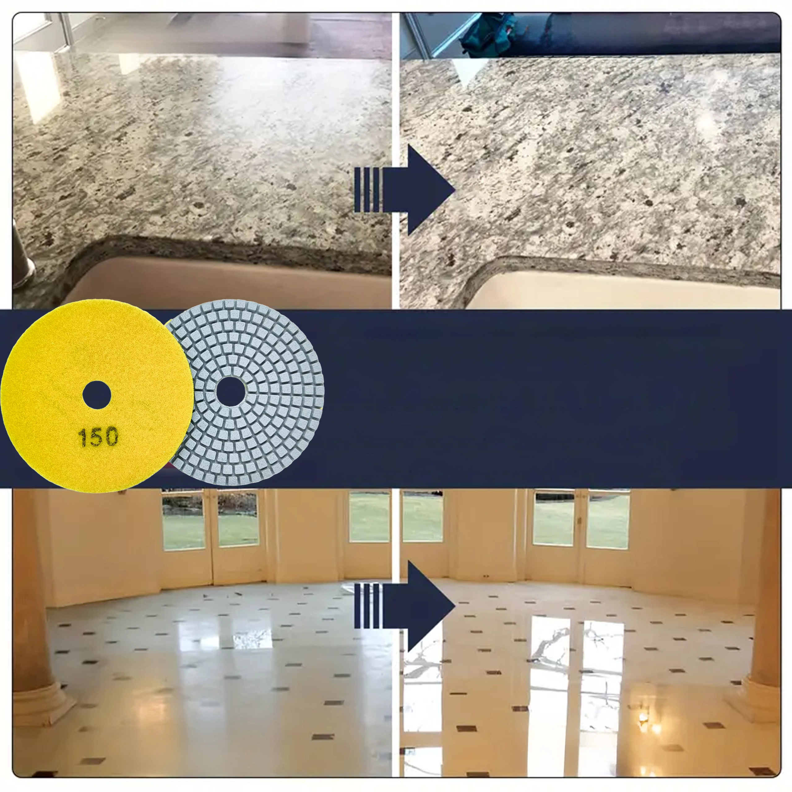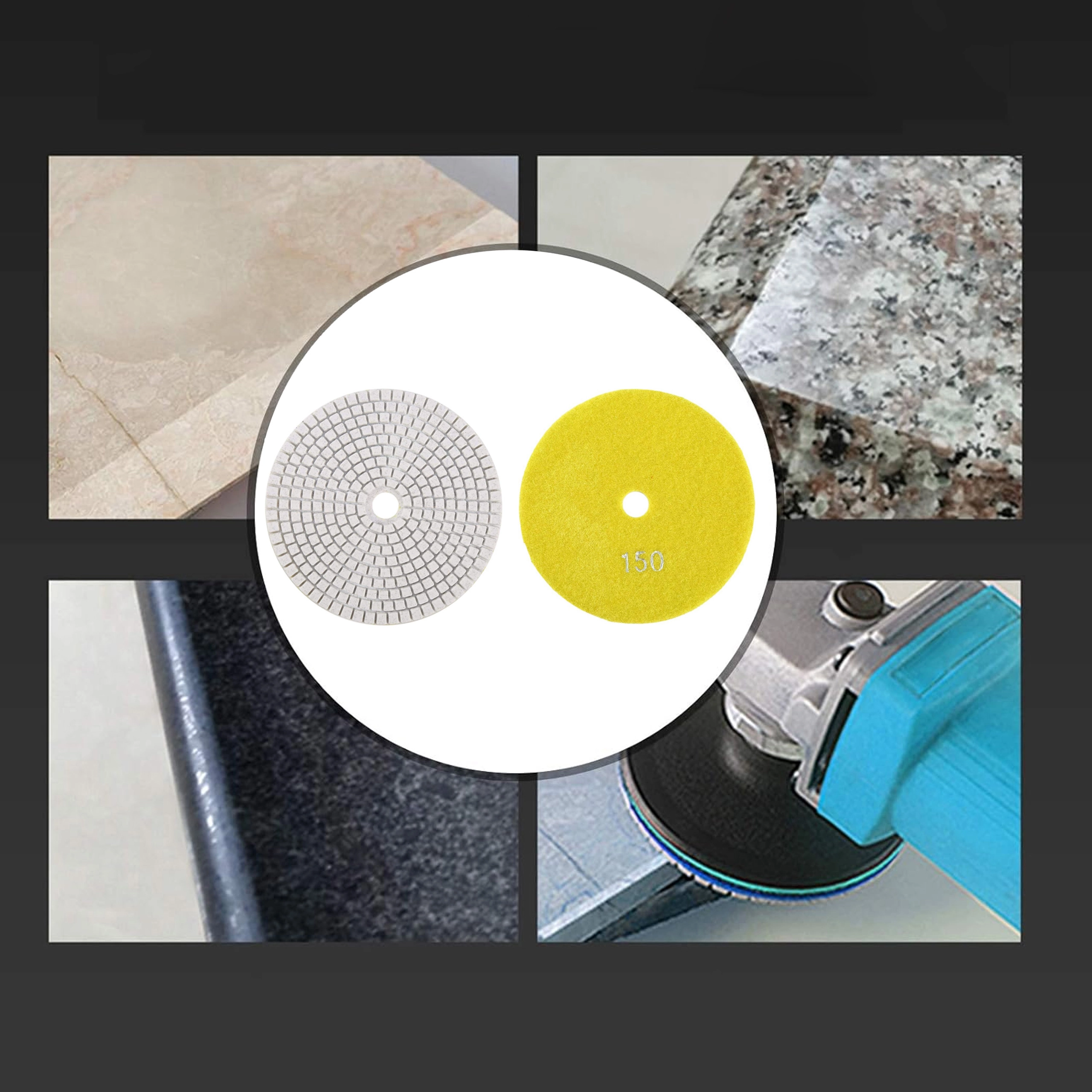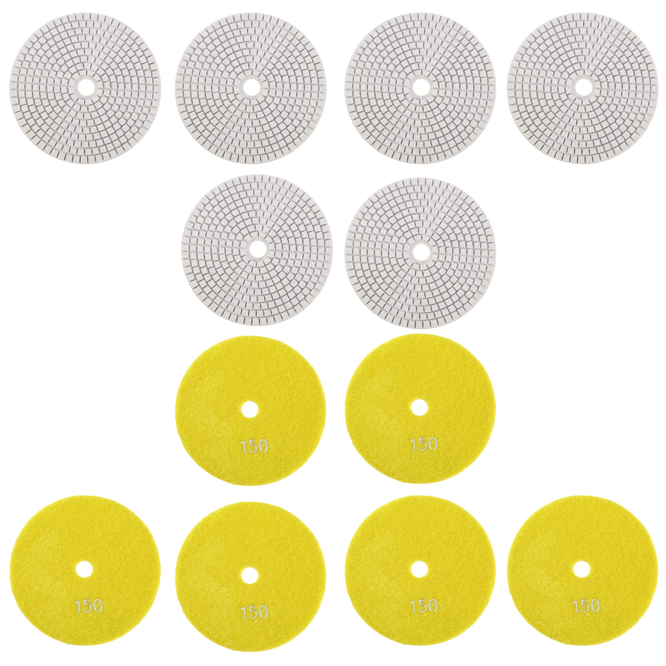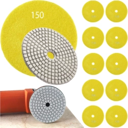 Set professionnel de 10 disques de polissage diamantés de 80 mm de diamètre pour un meulage et un polissage rapides du grès cérame, des carreaux en céramique, de la pierre, du marbre et du granit. Les disques conviennent au travail à sec et à l’eau et, grâce à la fixation Velcro, permettent un changement rapide et un travail fluide avec une grande durabilité et efficacité.