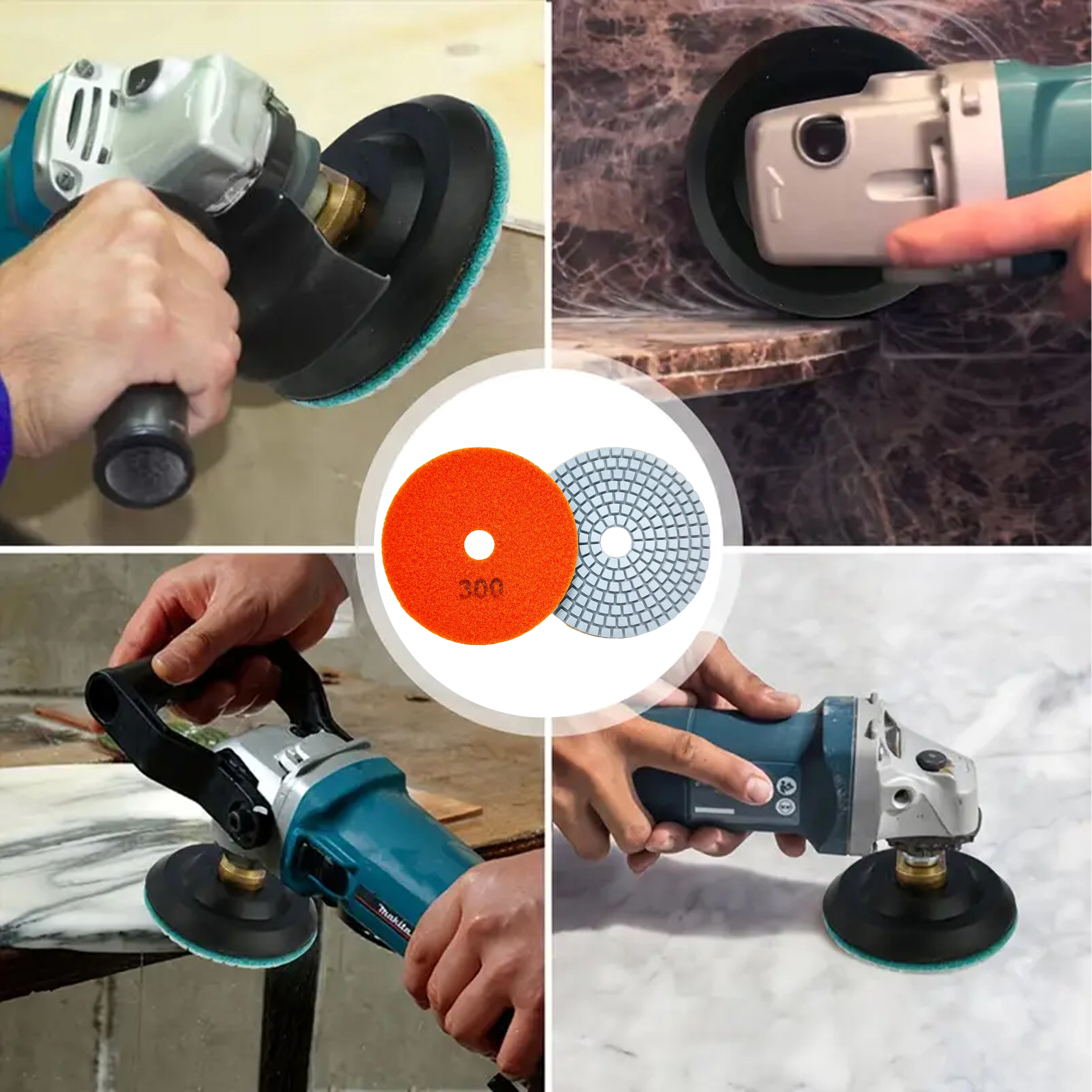 Les disques diamantés de grain 300 sont idéaux pour l’étape intermédiaire de meulage et le pré-polissage des matériaux durs. La structure segmentée flexible et l’ouverture centrale assurent une évacuation fluide de l’eau et de la boue, un fonctionnement stable et un résultat plus propre. Le dos orange en Velcro accélère le remplacement sans outils.