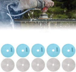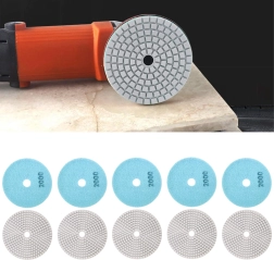 Ensemble professionnel de 10 disques à polir diamant de 80 mm de diamètre pour un ponçage et un polissage précis du grès cérame, de la céramique, de la pierre, du marbre et du granit. Les disques permettent un travail à sec et à l’eau et, grâce à la fixation velcro, leur remplacement est rapide et pratique. Grain 2000 pour des finitions fines à haut brillant.