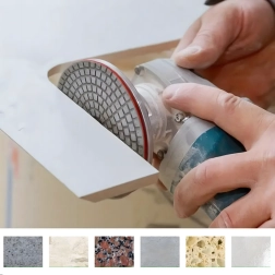 Les disques permettent le ponçage à sec comme à l’eau, ce qui améliore le contrôle du résultat et réduit la poussière lors du travail sur des matériaux durs.