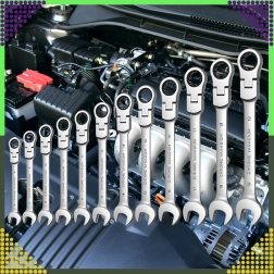 Ce jeu professionnel combine une extrémité plate ouverte et un anneau à cliquet, vous permettant de travailler plus vite et plus efficacement sans repositionner la clé en permanence. L’acier chrome‑vanadium garantit une haute résistance ainsi qu’une protection contre l’usure et la corrosion – idéal pour l’atelier auto, le service vélo et les réparations à domicile.