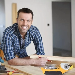 - Coupes droites précises grâce à la lame rotative et au guide de protection