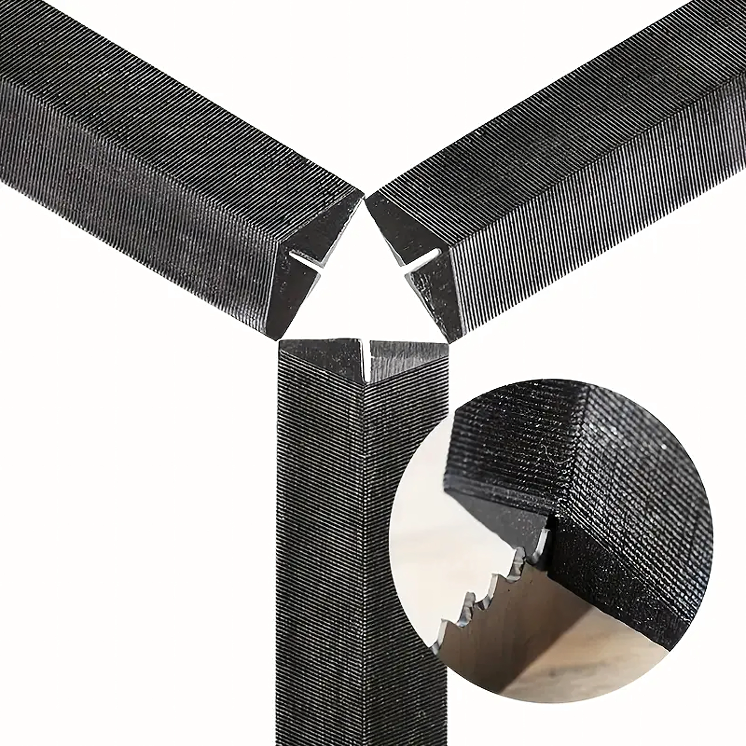 Grâce au noyau en acier trempé T12, la lime offre une excellente stabilité, une résistance à l’usure et une longue durée de vie même en usage régulier. Le profil triangulaire atteint facilement les coins ainsi que les dents de scies et les engrenages.