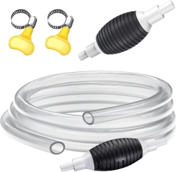 La pompe manuelle avec poire d’amorçage et tuyau transparent est une solution fiable pour transvaser des liquides entre récipients, depuis des réservoirs ou des aquariums. Le tuyau transparent permet un contrôle visuel du débit, tandis que le clapet anti-retour intégré évite tout retour indésirable du liquide.