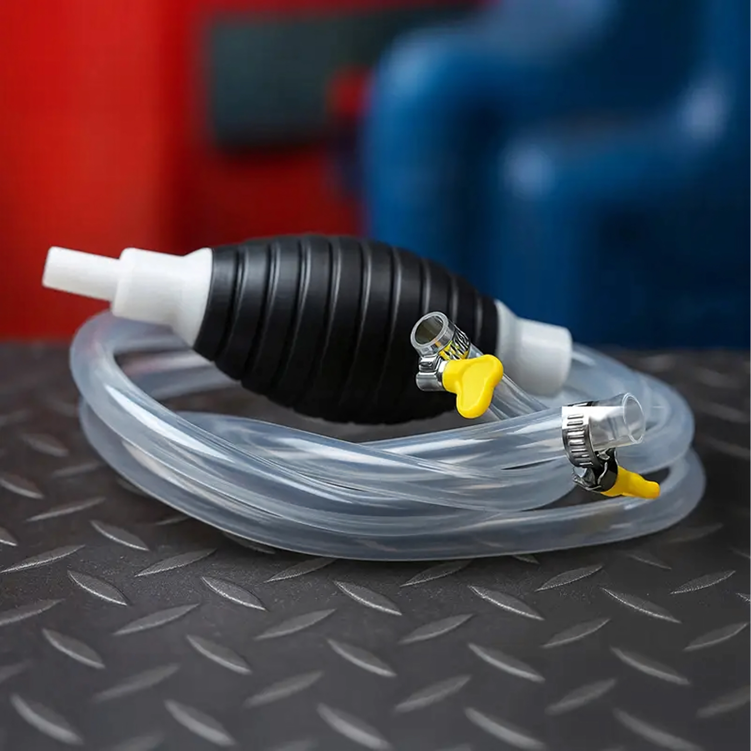 Il suffit de presser la poire plusieurs fois et le flux démarre de lui-même. Grâce à sa conception simple, la pompe est rapidement prête à l’emploi, facile à nettoyer et parfaite pour les carburants comme pour l’eau. Adaptée aux voyages, à l’automobile, à l’atelier et à un usage domestique.