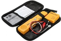 Localisateur et testeur de câbles professionnel pour la recherche rapide de conducteurs, la diagnostic des coupures et le contrôle des lignes téléphoniques RJ11. Grâce au générateur de tonalité et à la sonde sensible, trouvez facilement le bon câble dans un faisceau, testez la continuité et détectez les défauts, sans endommager l’isolation. Livré avec un étui pratique pour un transport sécurisé.
