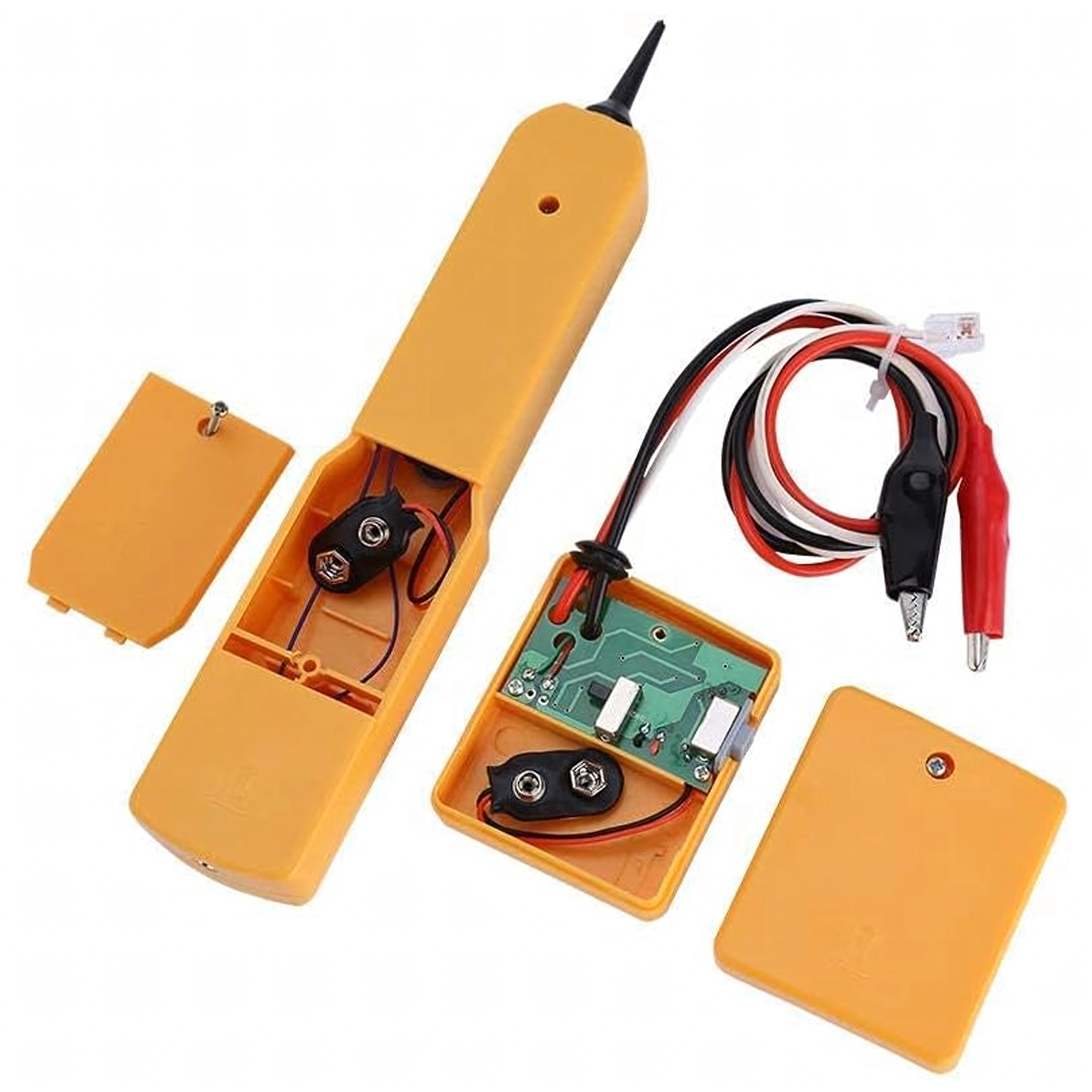 Travaillez plus efficacement : le sélecteur de modes permet de choisir entre TONE pour le suivi des conducteurs et CONT pour le test de continuité. L’indication LED facilite la lecture de l’état, tandis que la couleur jaune vive améliore la visibilité sur le terrain. Les pinces crocodile et le connecteur RJ11 fournis assurent un raccordement rapide à différents types de liaisons.