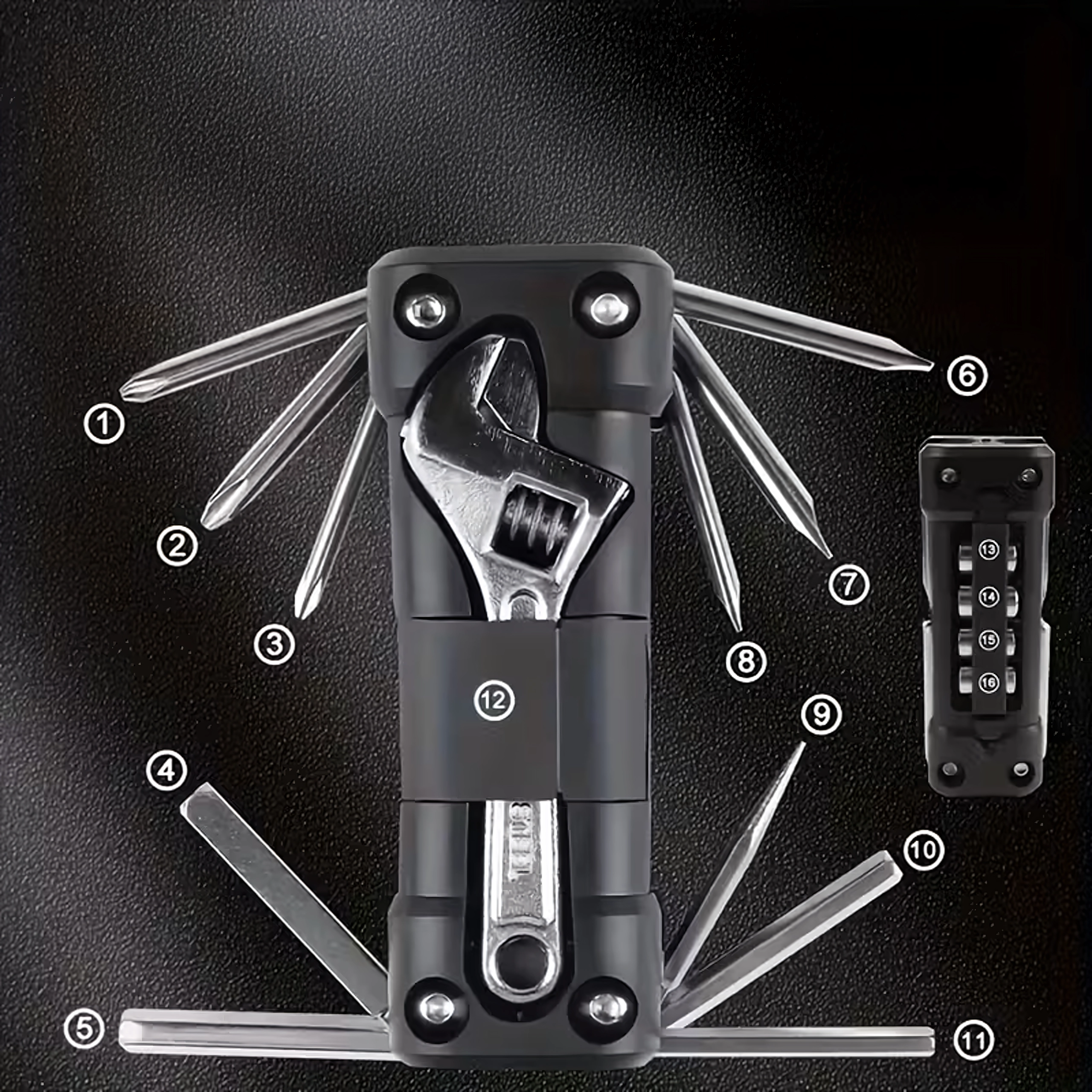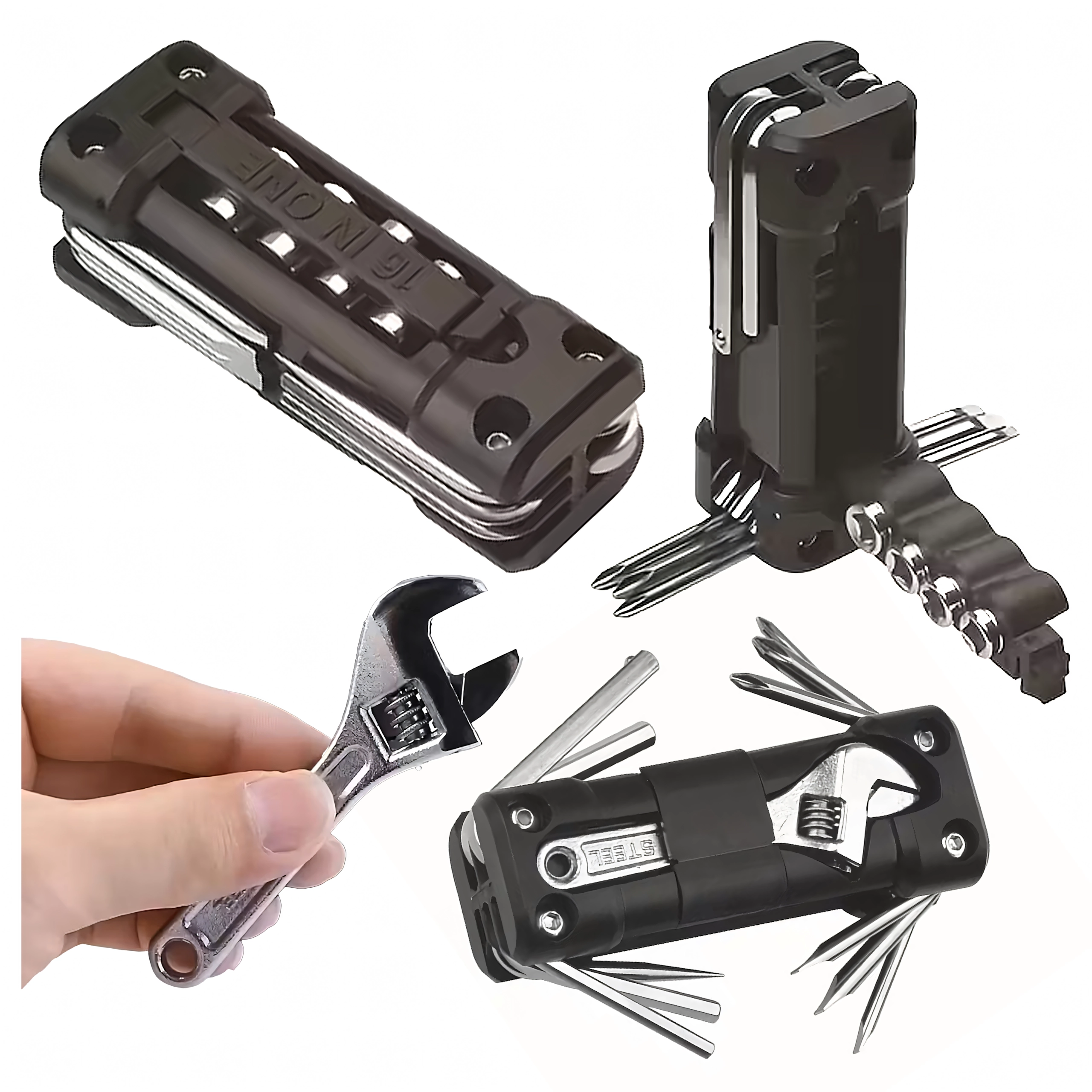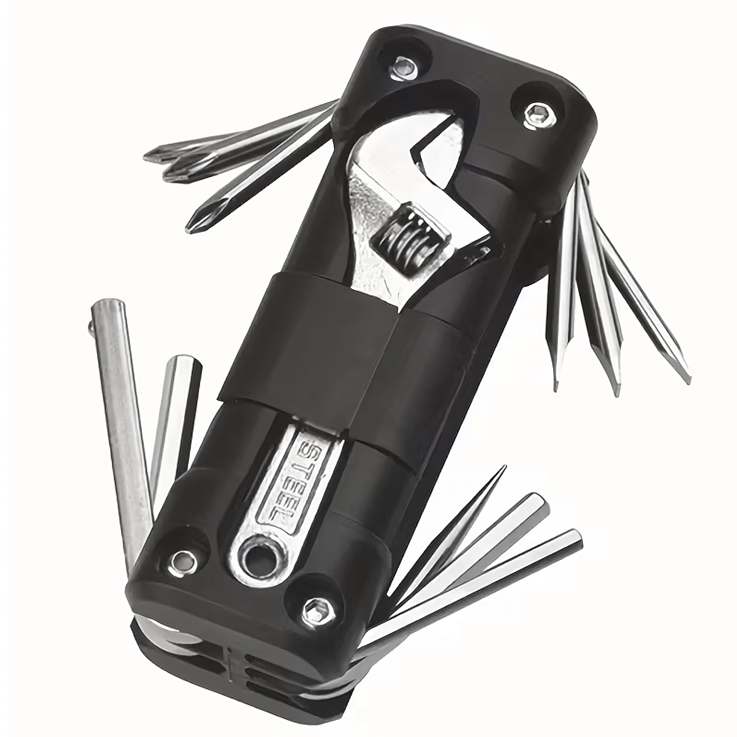 Le multitool universel 13‑en‑1 offre tout le nécessaire pour serrer des vis et effectuer des réglages rapides en déplacement comme à la maison. Des outils métalliques robustes et un corps ergonomique assurent une prise en main sûre et une longue durée de vie. Grâce à sa structure pliable, il se glisse facilement dans une poche, une sacoche sous‑selle ou un compartiment de voiture.