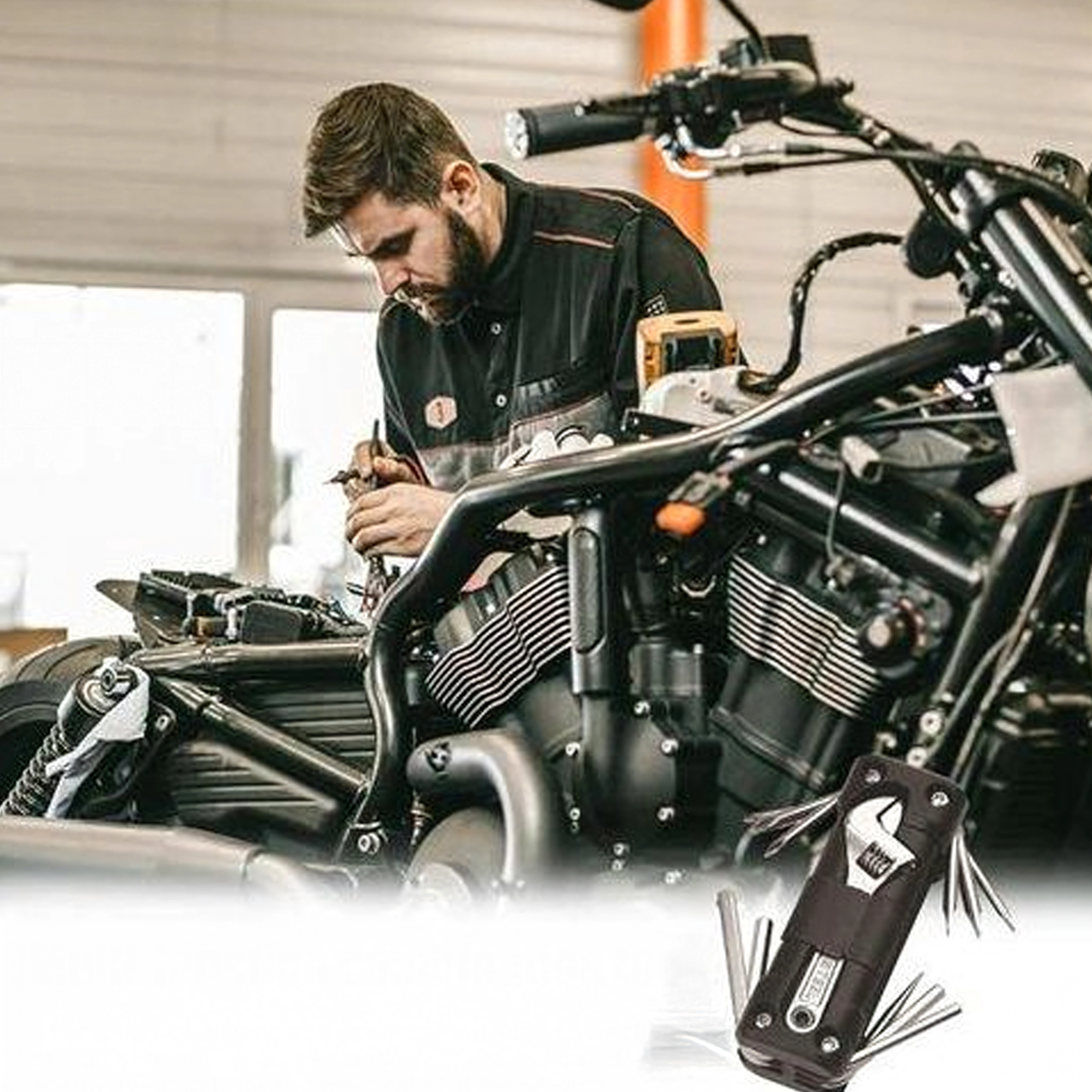 Il comprend une sélection des clés Allen, tournevis et clés les plus utilisés, y compris une clé réglable et des embouts pour des interventions rapides sur le vélo, la moto ou à l’atelier. Un allié fiable pour l’entretien quotidien comme pour les imprévus.