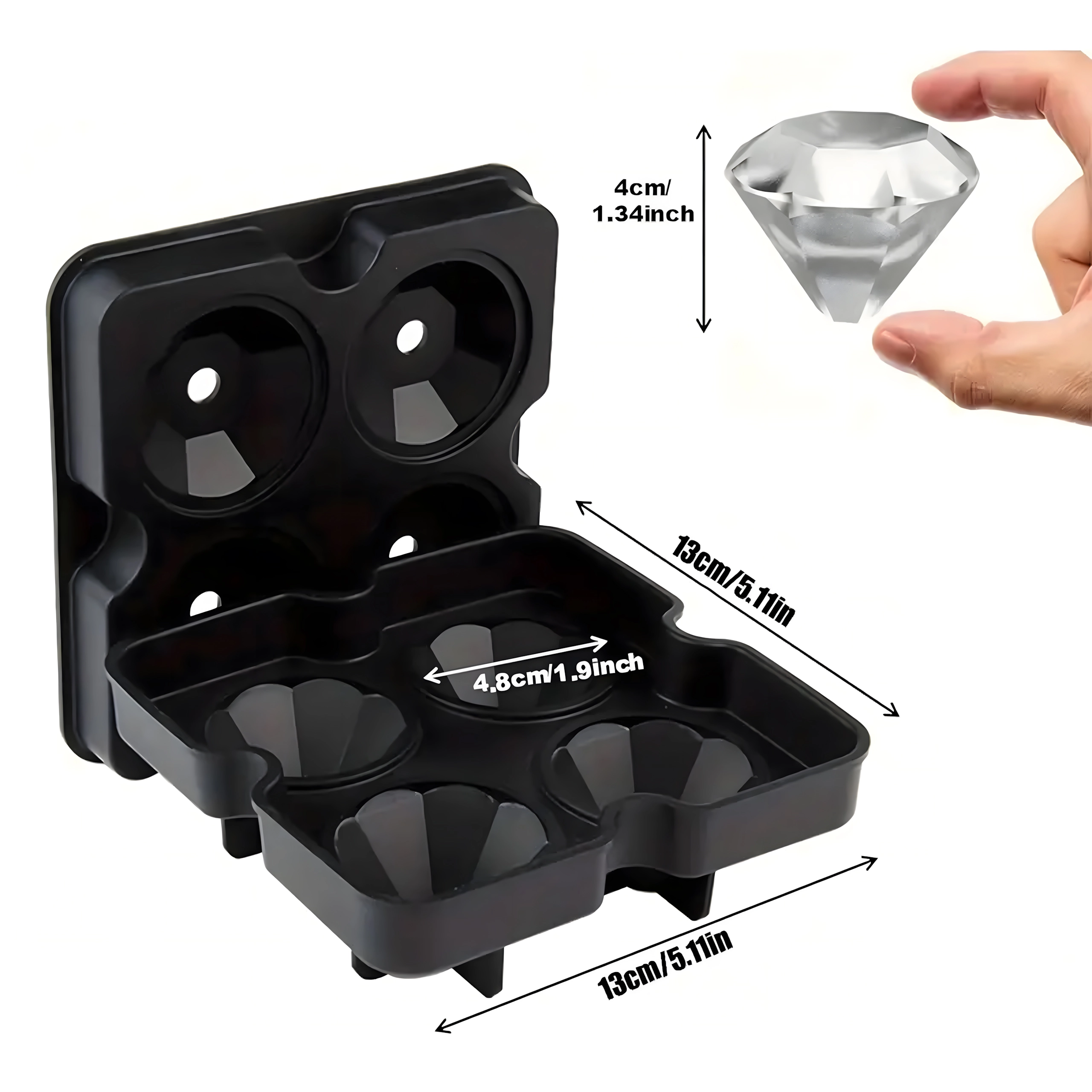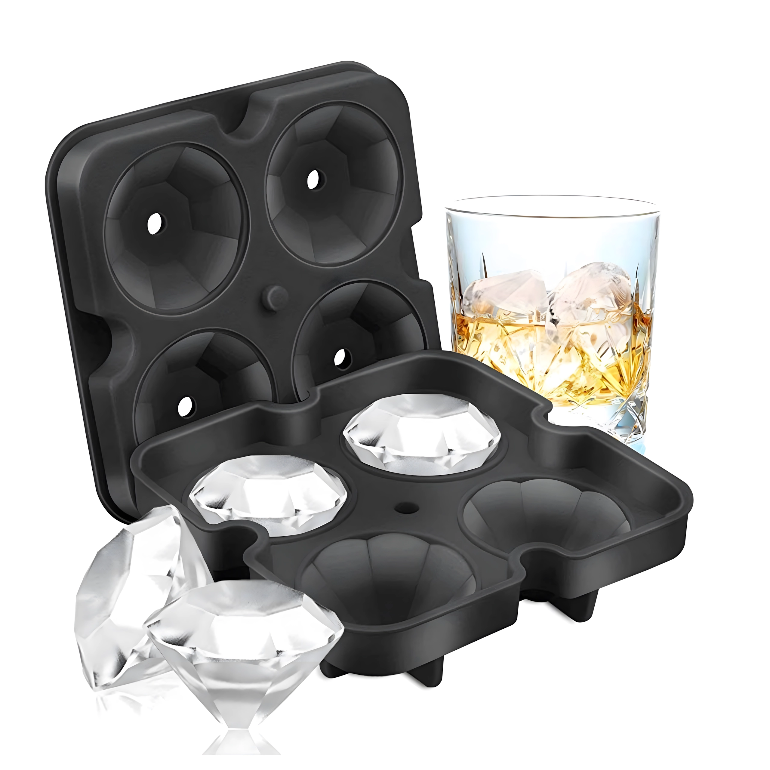 Moule en silicone pour glaçons – diamants XL, 4 cubes