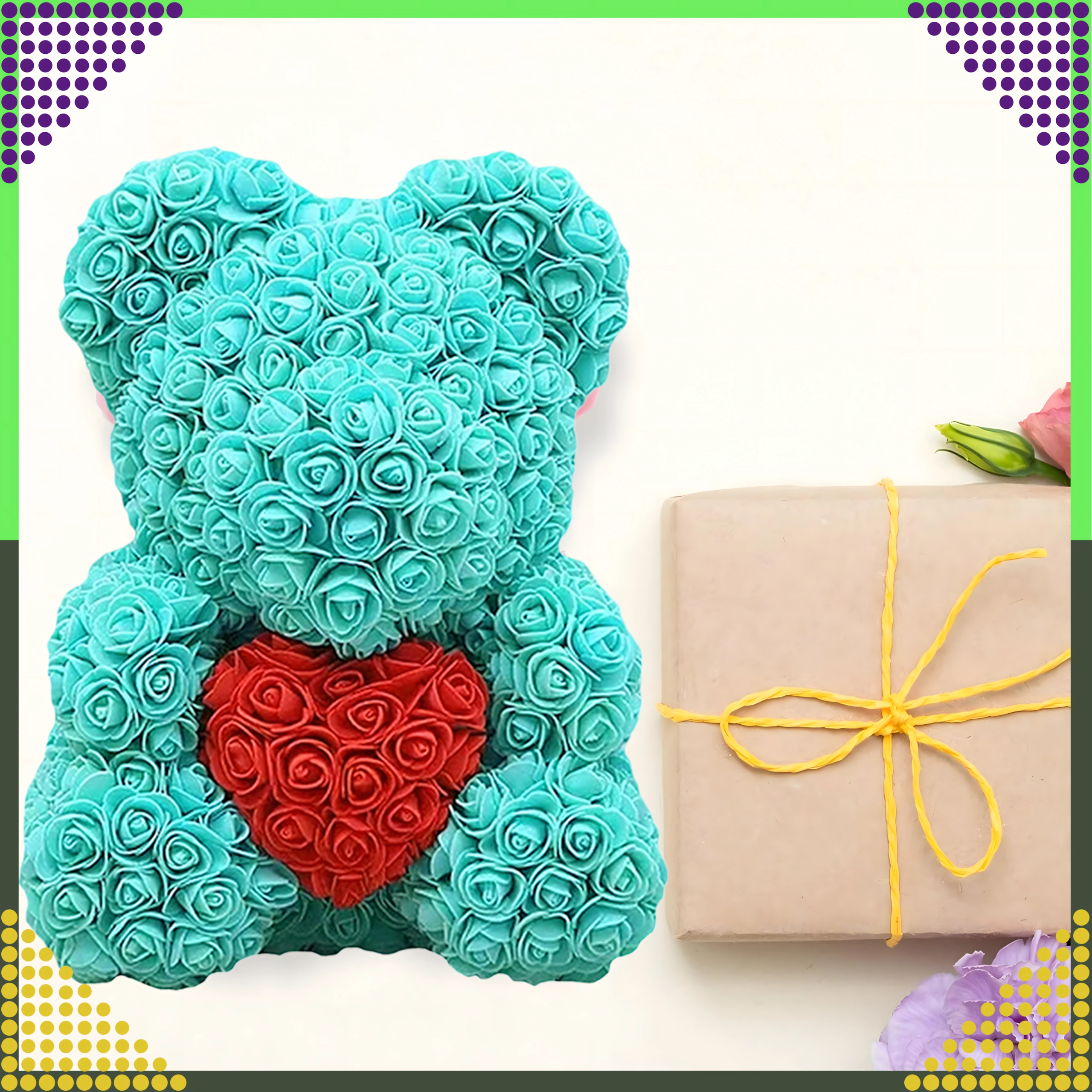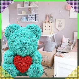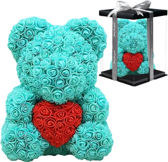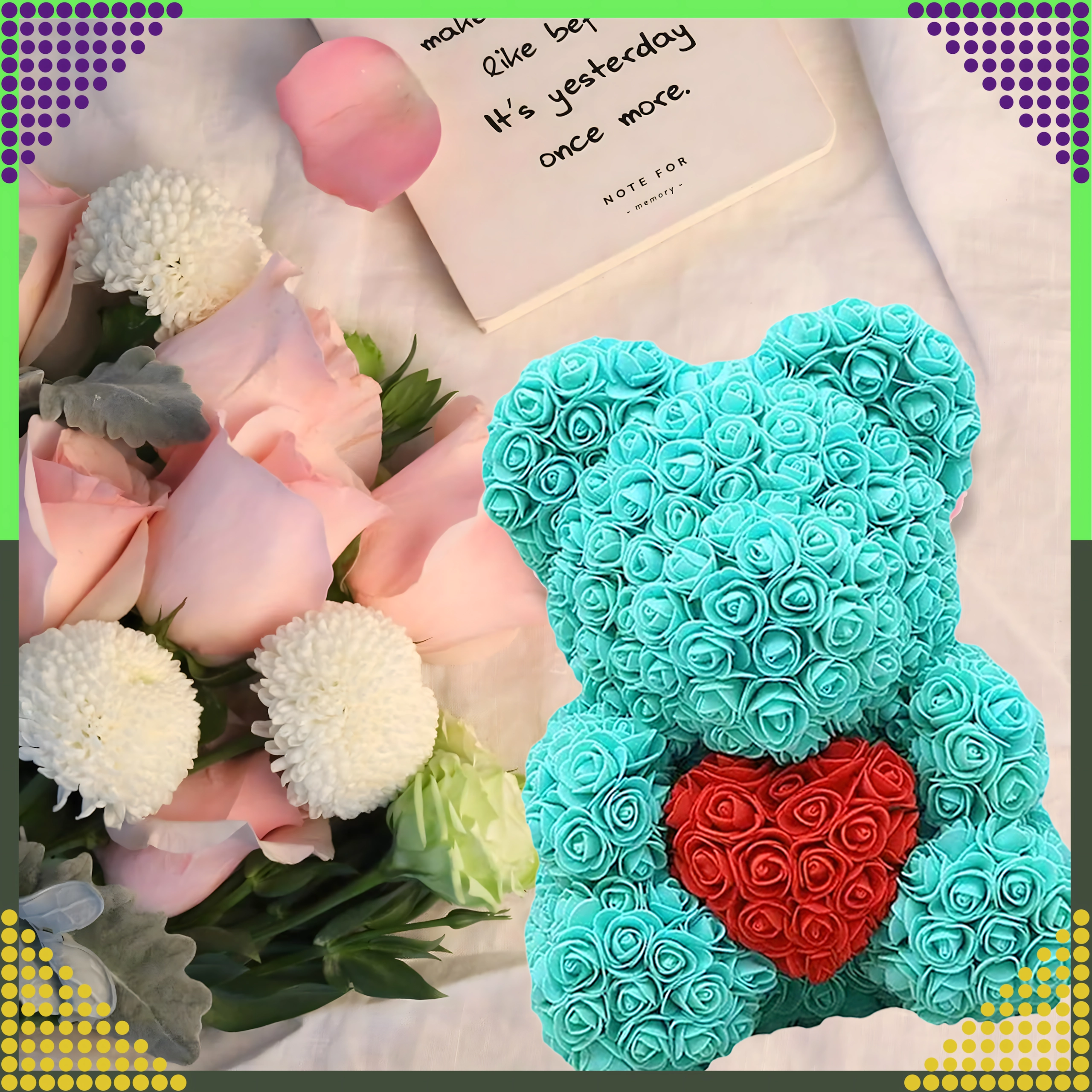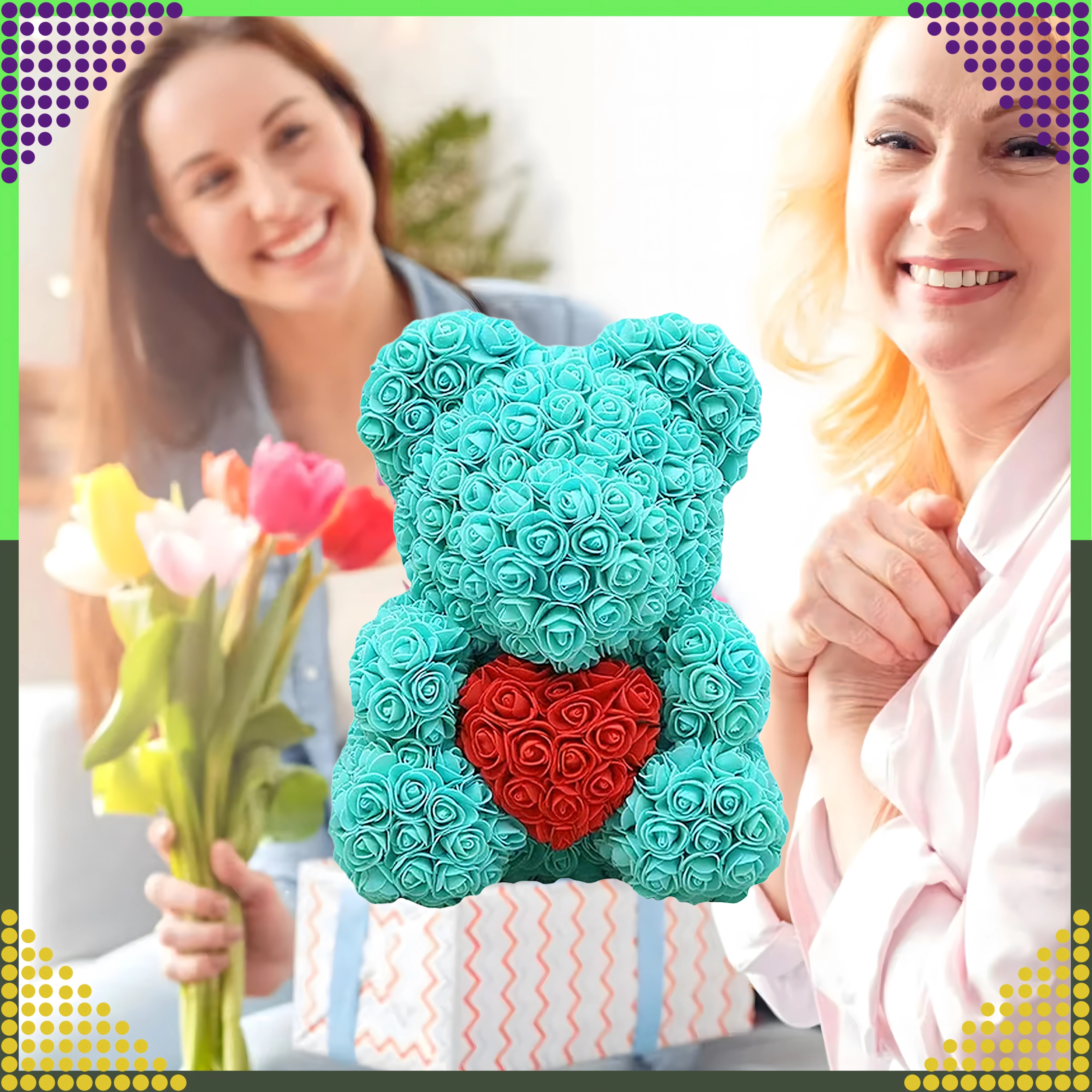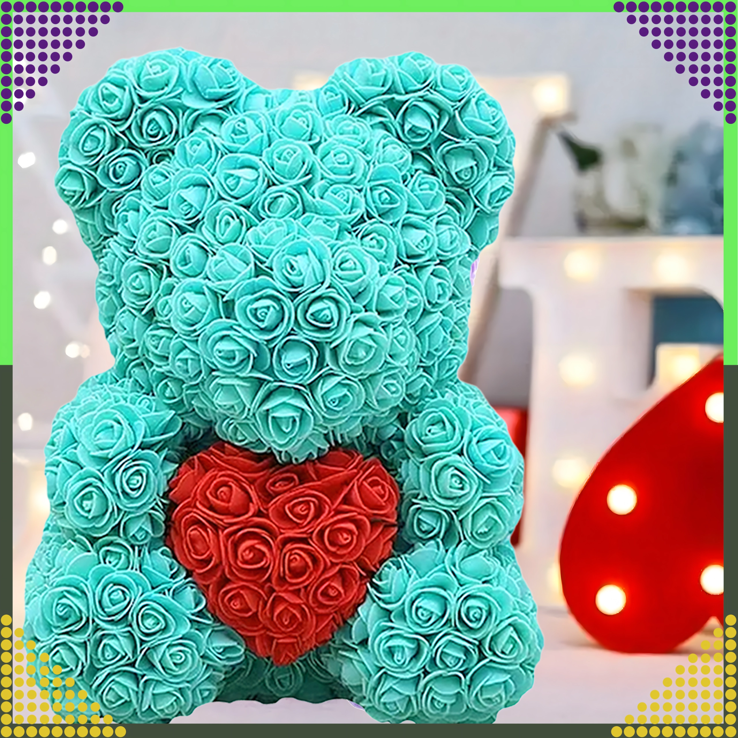 Offrez des émotions dans un écrin de beauté. L’ourson en roses est assemblé à la main avec de nombreuses fleurs en mousse qui conservent leur forme et leur couleur. Il constitue ainsi une décoration élégante et résistante pour la chambre, le salon ou une table de fête.