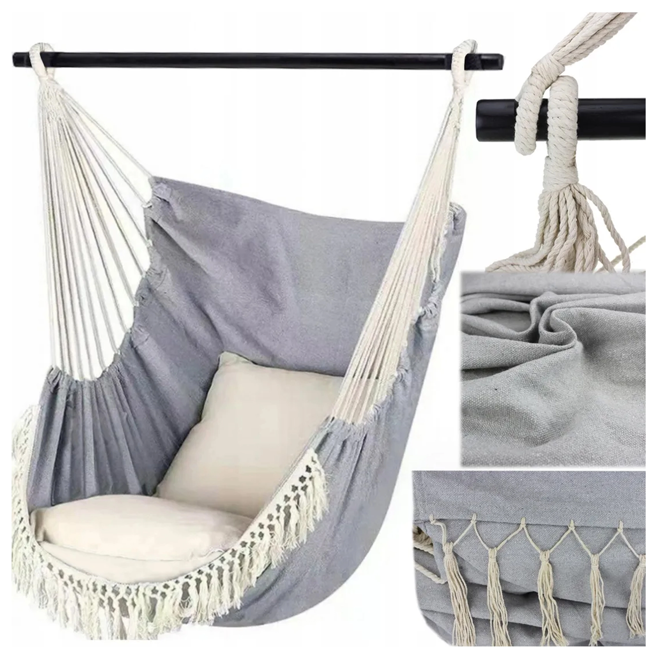 La couleur élégante gris foncé se marie facilement avec un intérieur moderne ou bohème. Se balancer dans le hamac aide à libérer les tensions, à apaiser l’esprit et apporte une agréable détente pour toute la famille.
