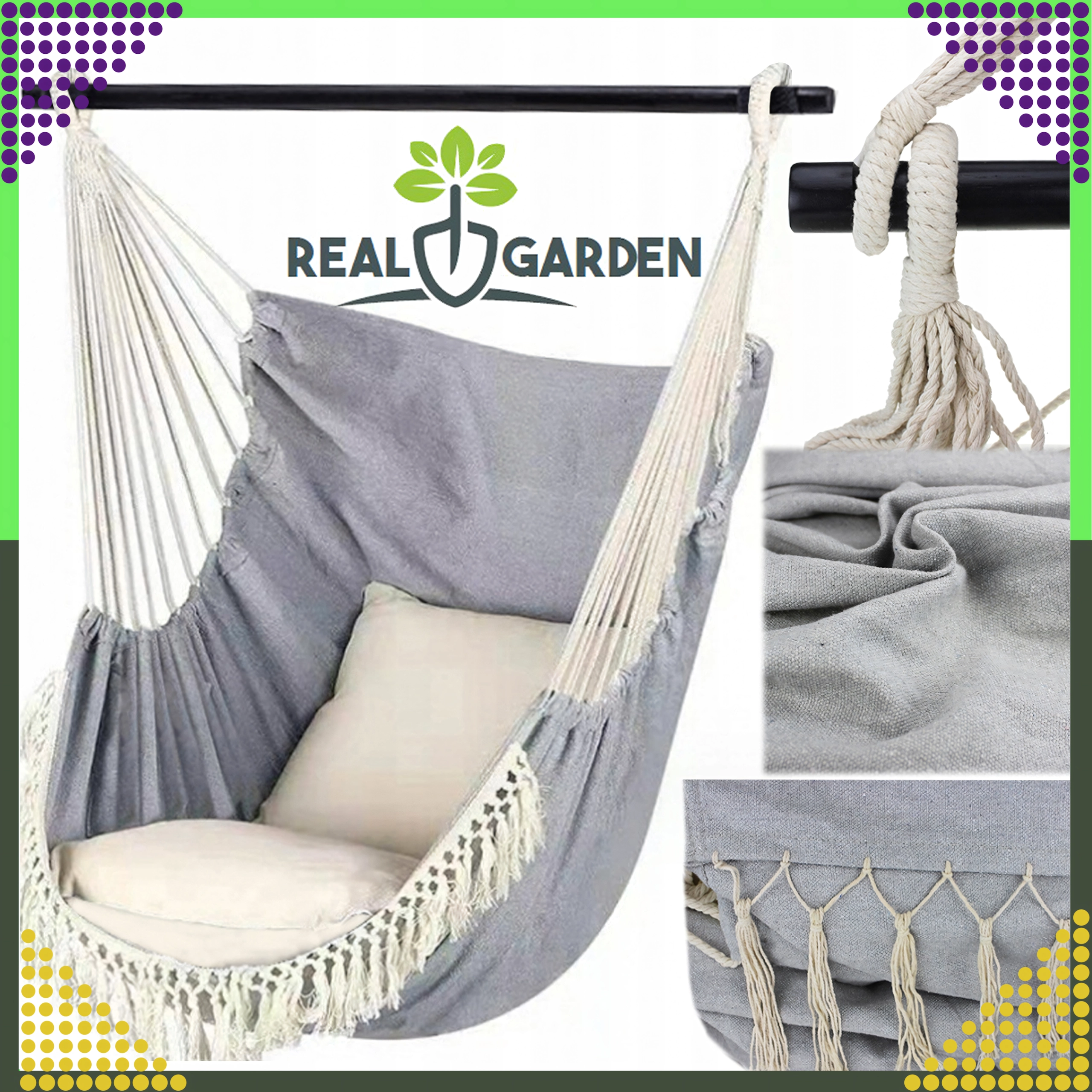Profitez d’un repos apaisant dans un fauteuil suspendu brésilien confortable, qui combine un style bohème moderne, un matériau respirant et résistant et une capacité de charge maximale jusqu’à 150 kg. Idéal à l’intérieur comme à l’extérieur, avec 2 coussins moelleux et un sac de transport pratique.