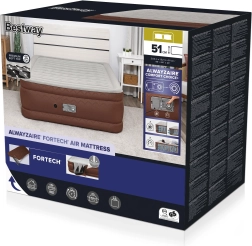 Le matelas gonflable BESTWAY ALWAYZAIRE Fortech au format 203 × 152 × 51 cm offre un confort maximal à la maison comme en voyage. Grâce à la technologie AlwayzAire, il maintient automatiquement la pression idéale toute la nuit, dispose d’une pompe électrique intégrée pour un gonflage en environ 3 minutes, d’une surface en velours agréable et d’une hauteur rehaussée de 51 cm pour se lever aisément. La structure robuste Fortech (PVC + polyester) garantit longévité et stabilité jusqu’à 350 kg.
